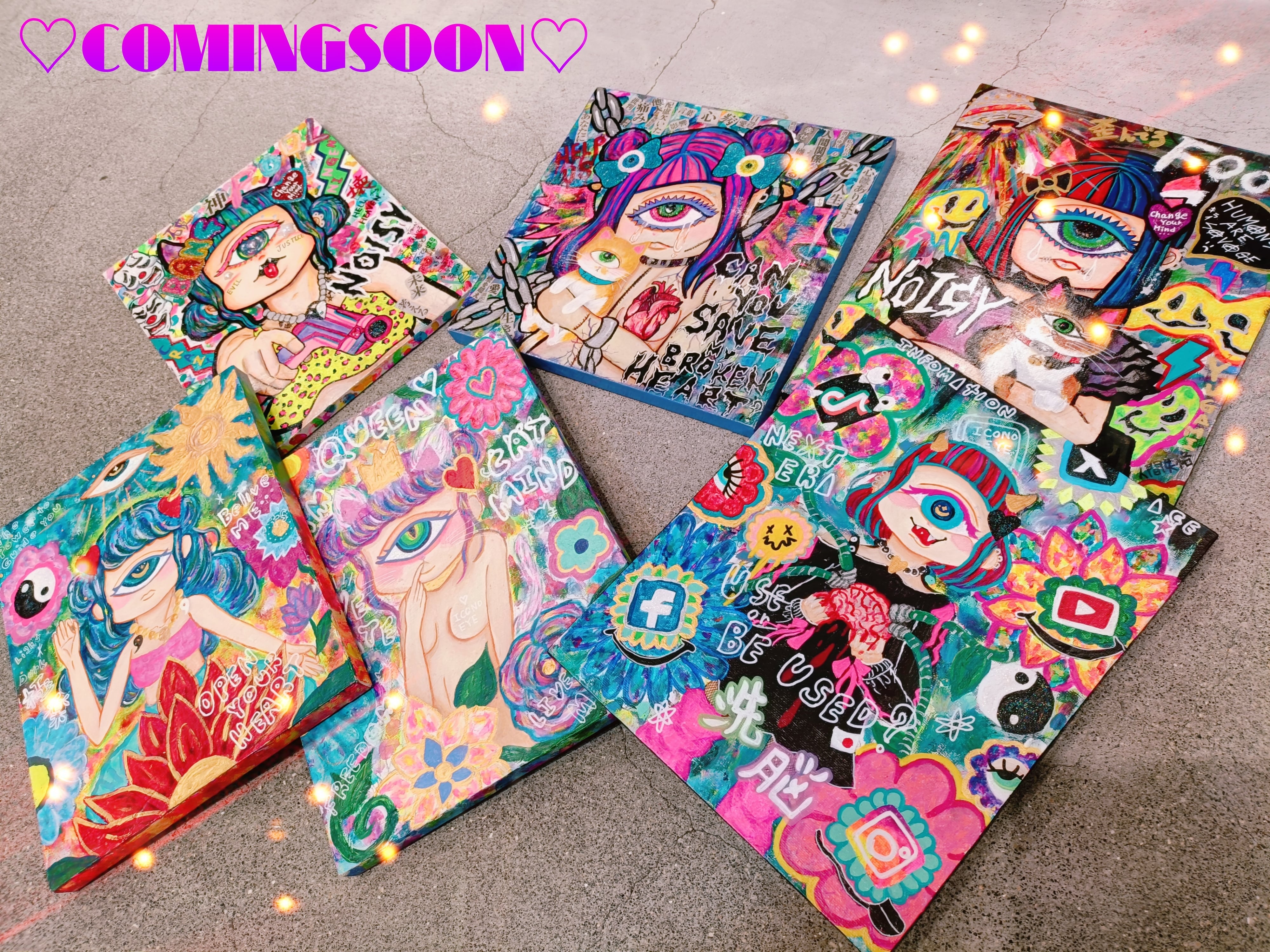 暗いニュースが多く希望が持てない様な世界の中でもあなただけの輝く希望の星を見つけてほしい。そんな思いから製作したメッセージアート。 いつものオラオラした作風とは違ってちょっと可愛め&平和的な作品です♡ タイトル:GET YOUR SHINING STAR サイズ:F6号/410×318mm 技法:アクリル絵の具、レジン、アクリルパーツ、シール 個性的な観点から製作した作品を通じて、観る者が自身の抑圧された感情や価値観を再認識し、新たに解放するきっかけを提供するChika Sinodaならではの独特なメッセージアート。 【アートは感情の解放口あり、自己理解のツールである】 現代アートと個性的なオリジナルキャラクターを通じて、感情や社会的なテーマを探求。 鮮やかな色彩とレジンや粘土、コラージュを使った独自の表現方法で、見る人に強烈なインパクトを与えることを目指している。 また、宇宙など非日常的な要素を取り入れることで、現実と幻想の境界を曖昧にし、新たな視点を提示しています。 #現代アート #現代アーティスト #愛と平和 #インパクトアート #Chikashinoda #メッセージアート #言葉とアート #読むアート #イラスト好きな人と繋がりたい #イラストアート #artistsupport #artforsale #artistsoninstagram #artislife #アーティスト支援 #新進アーティスト #アーティストさんと繋がりたい #ガルフィー #galfy #ヤンキー #ロック