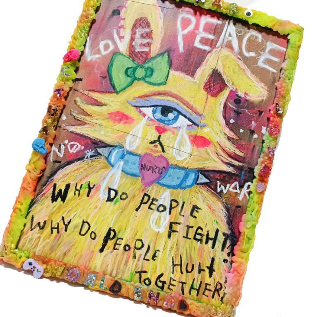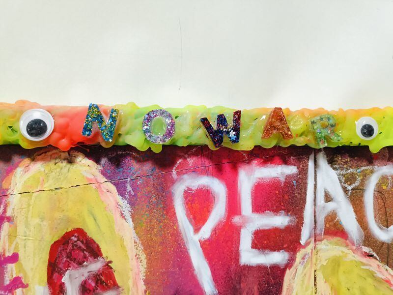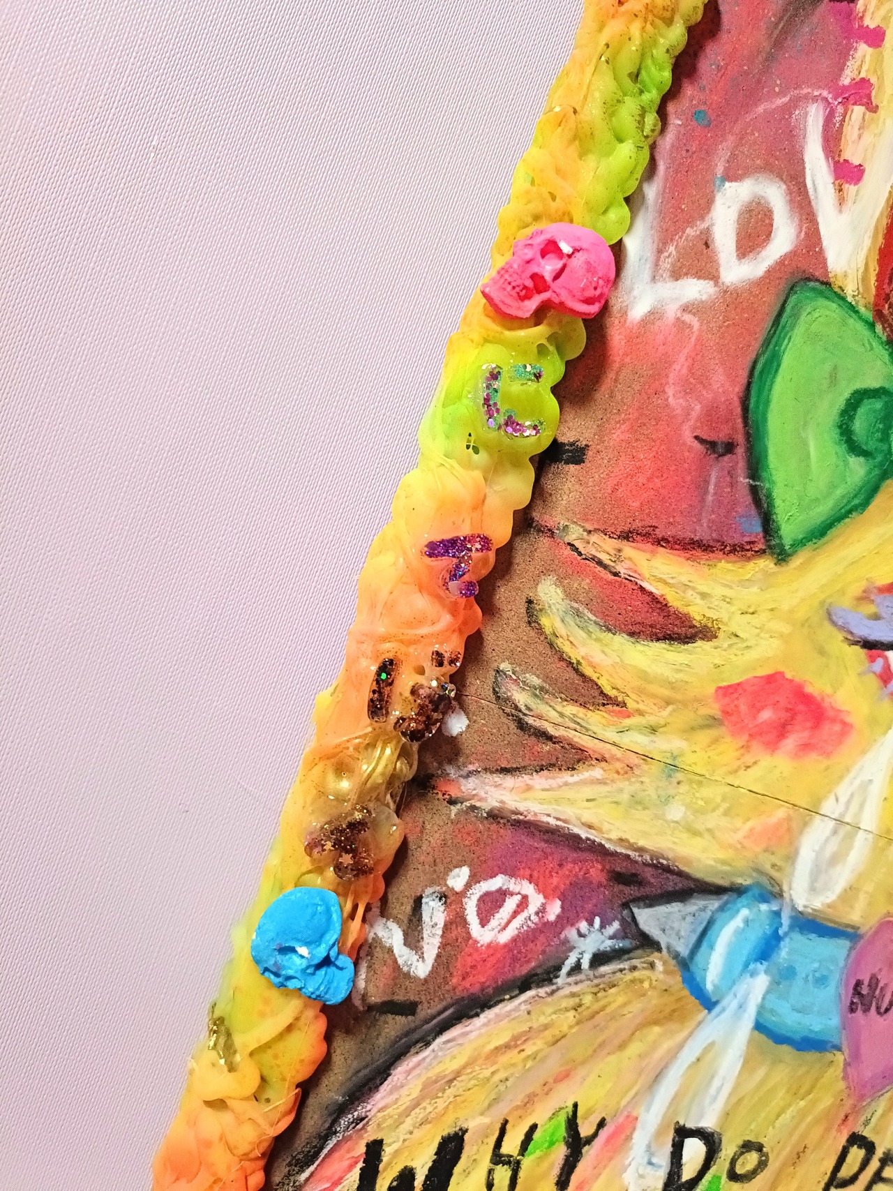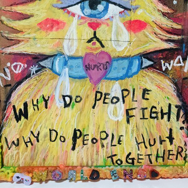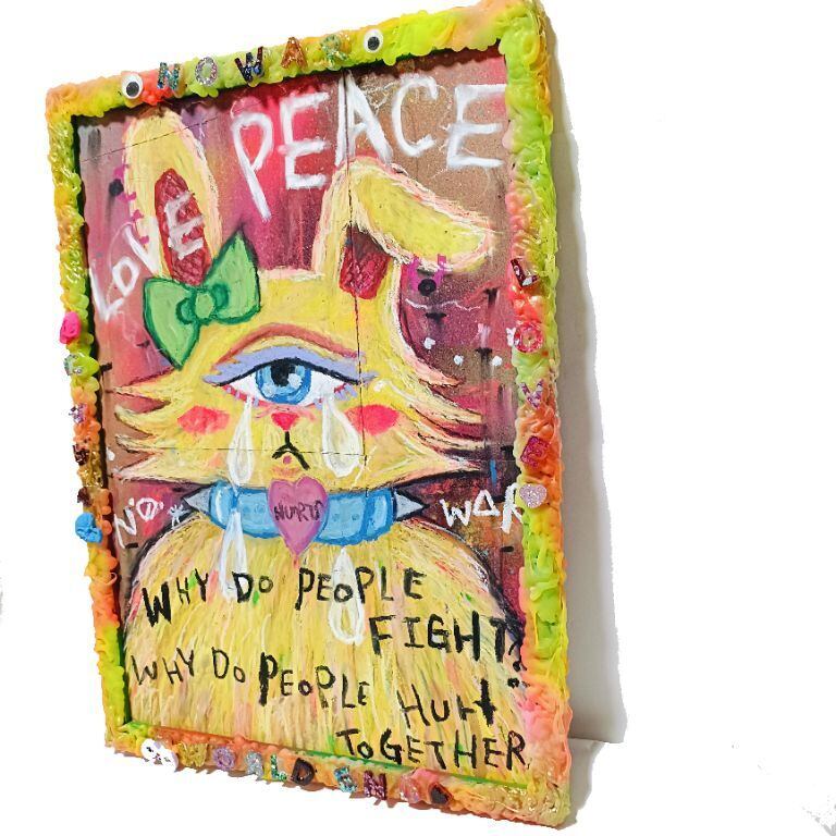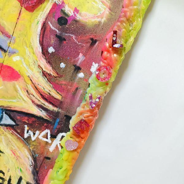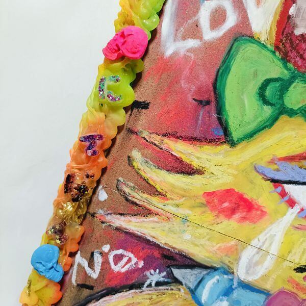 画材:オイルパステル,ポスカ,アクリル絵の具、レジンなど
