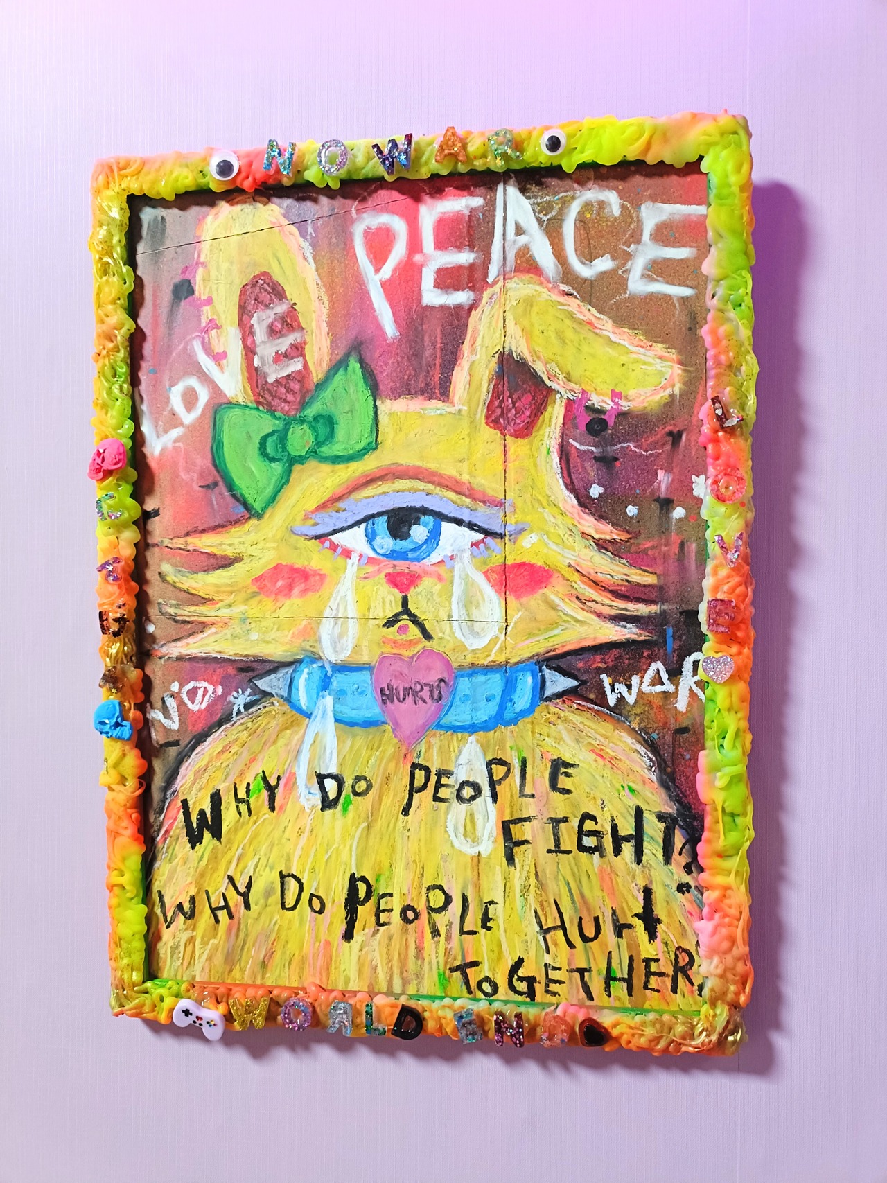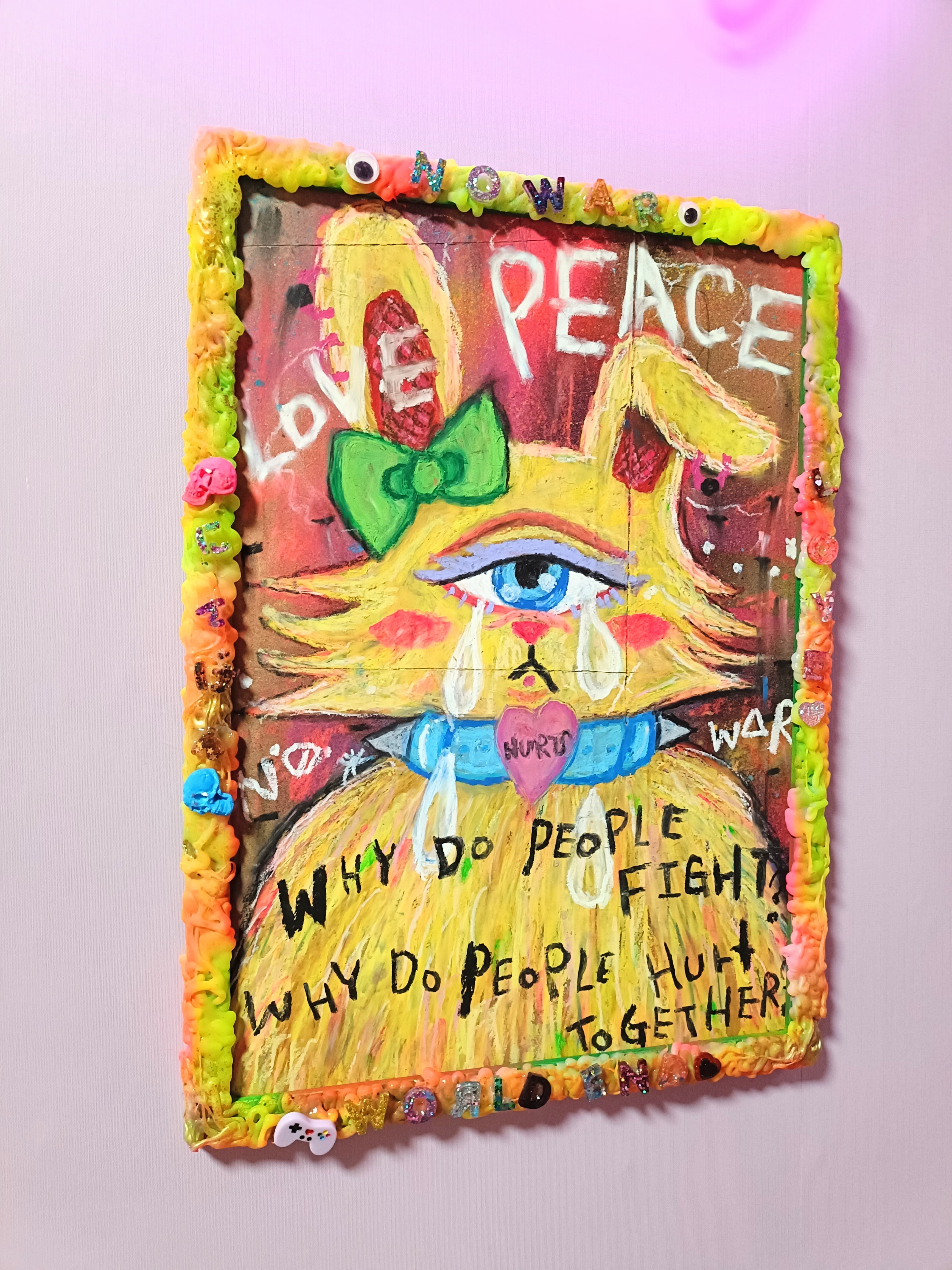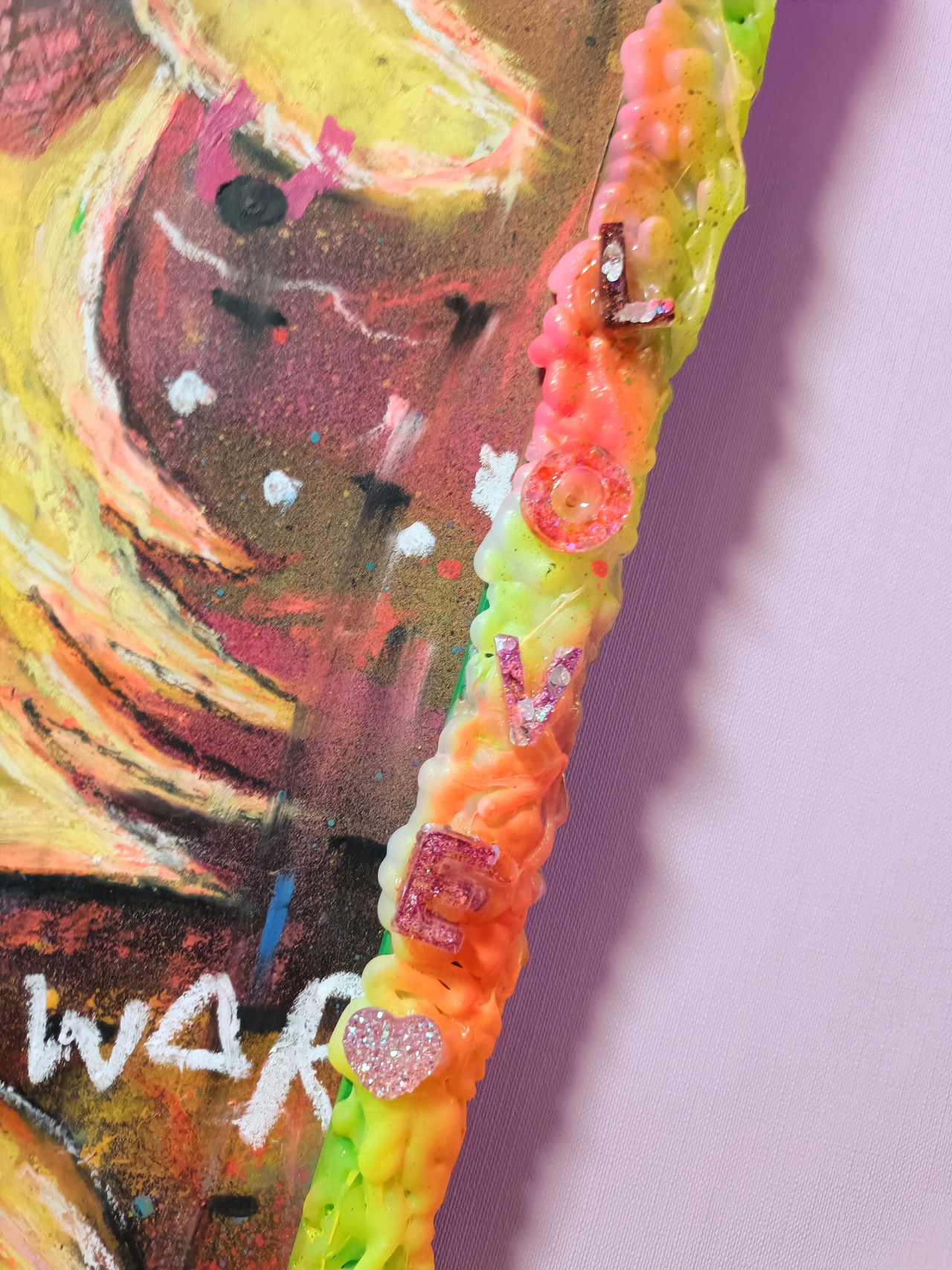 画材:オイルパステル,ポスカ,アクリル絵の具、レジンなど