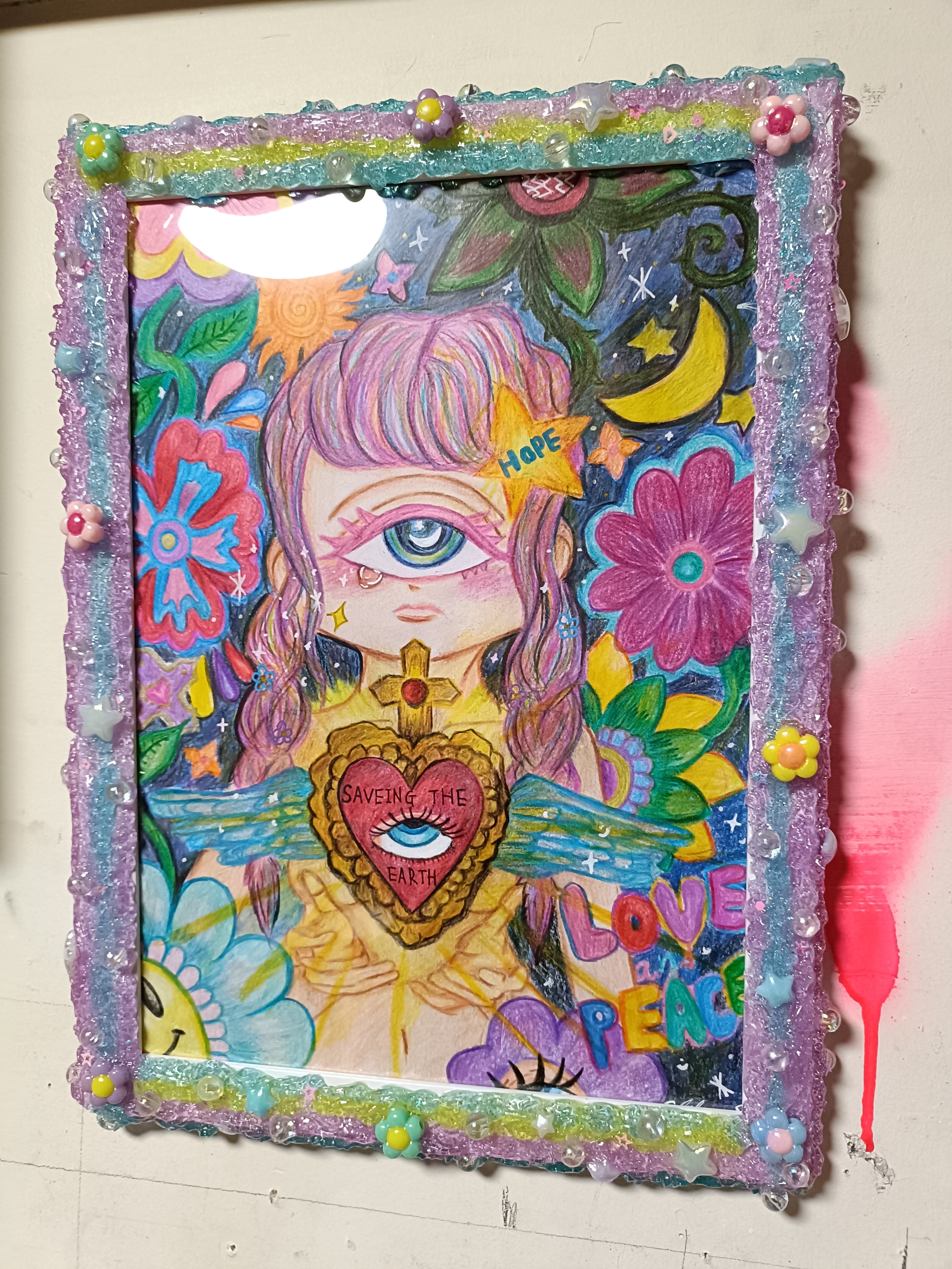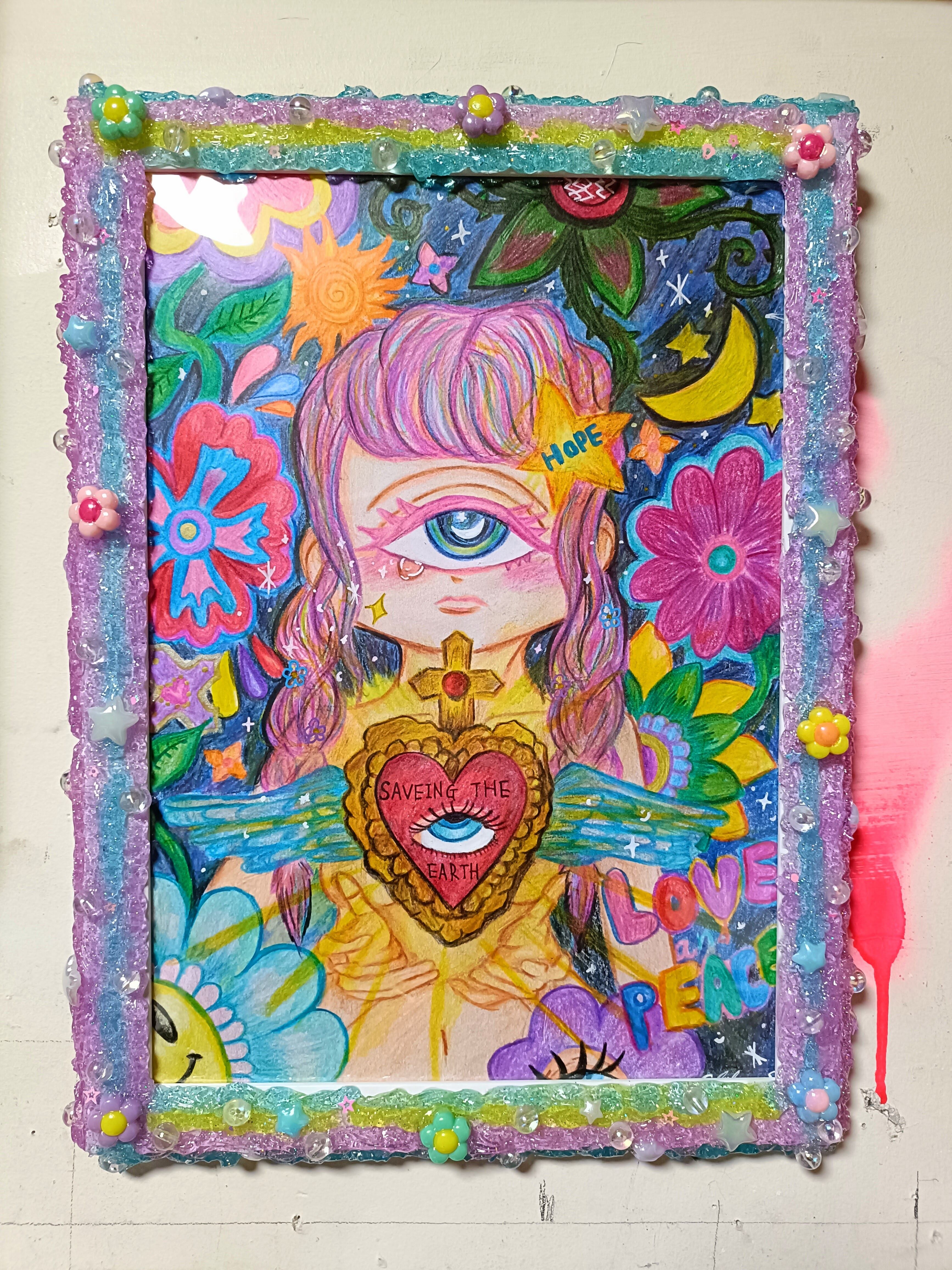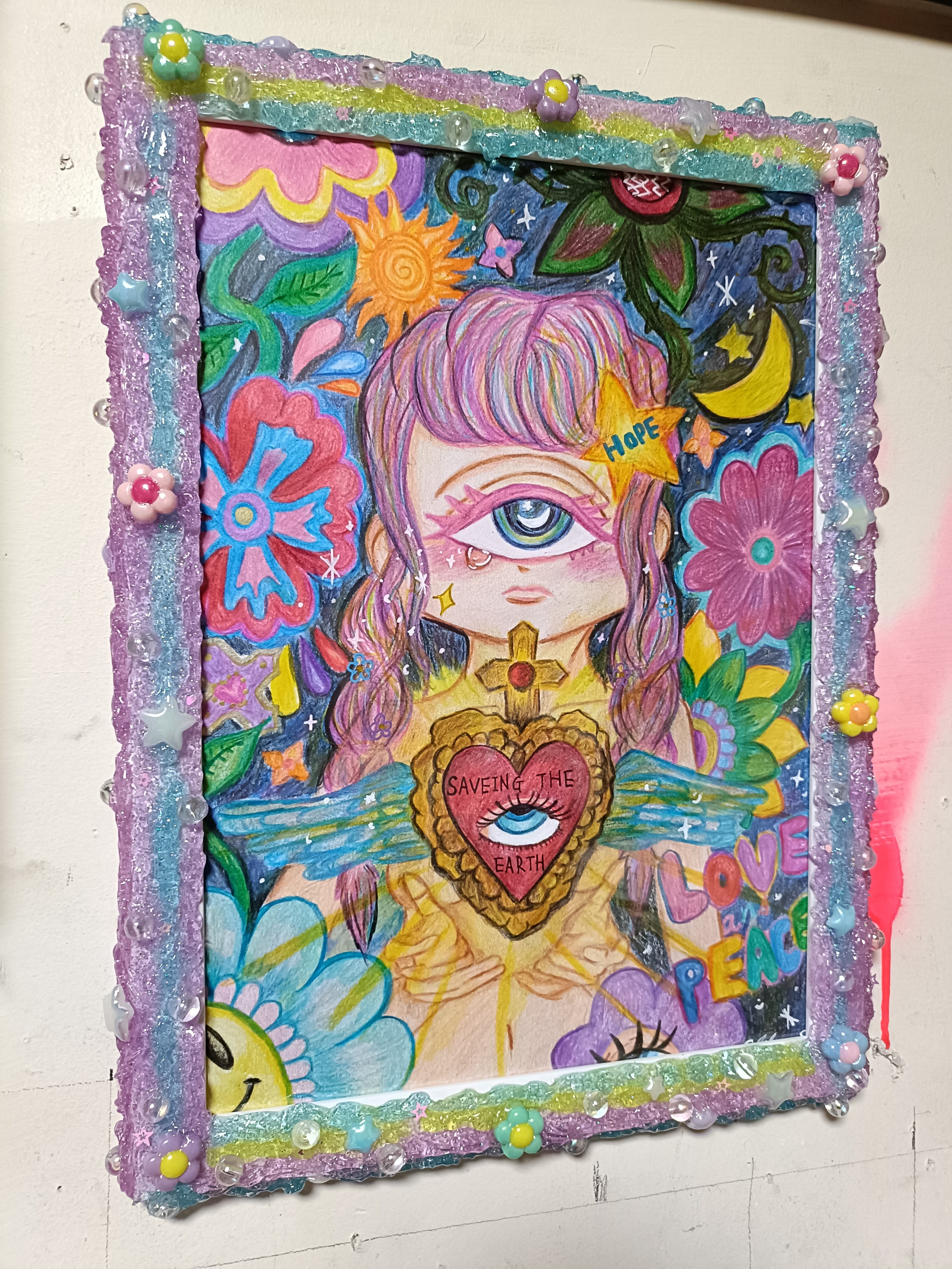 こちらの作品はA4紙に色鉛筆で描いた作品です。