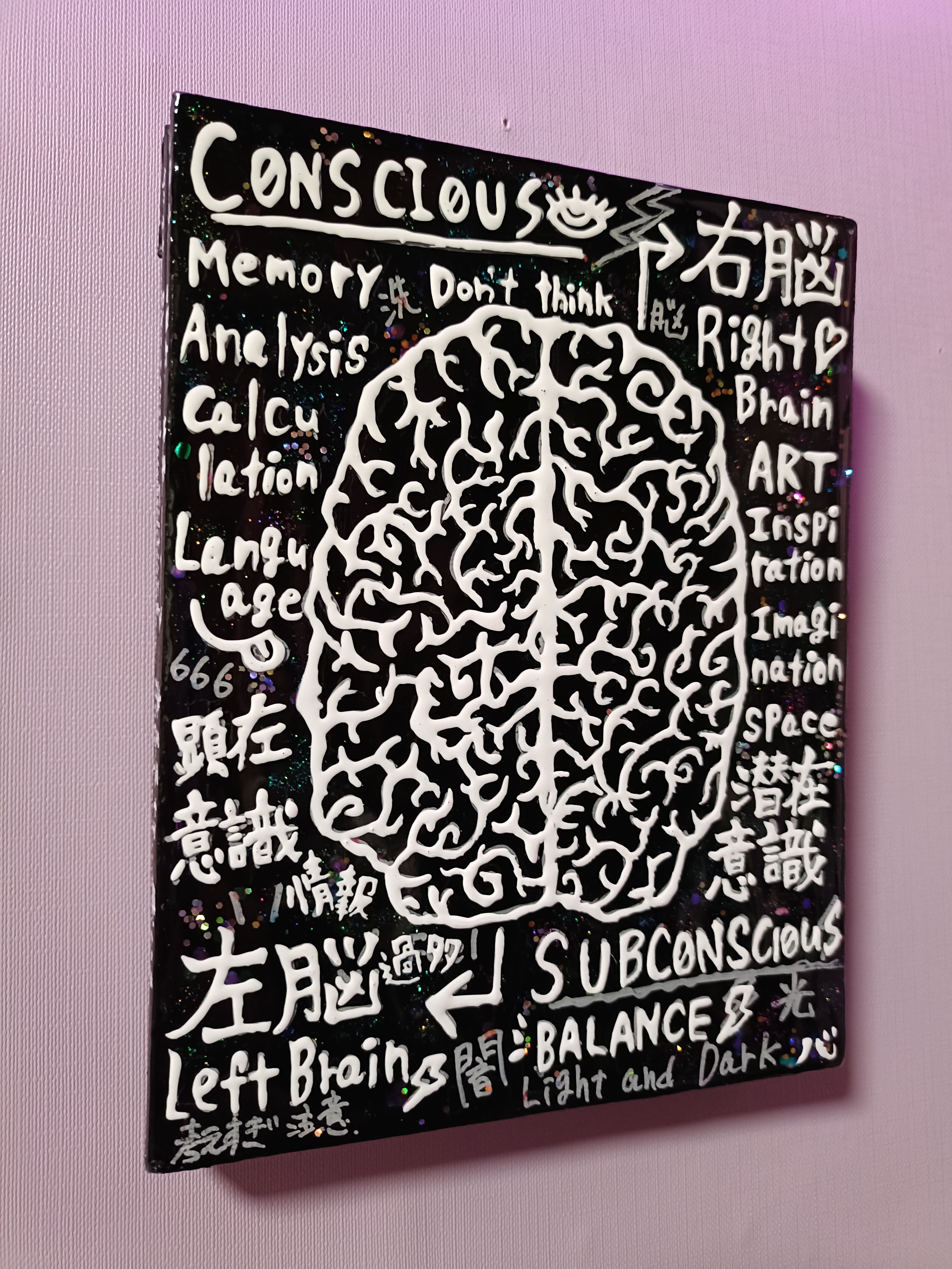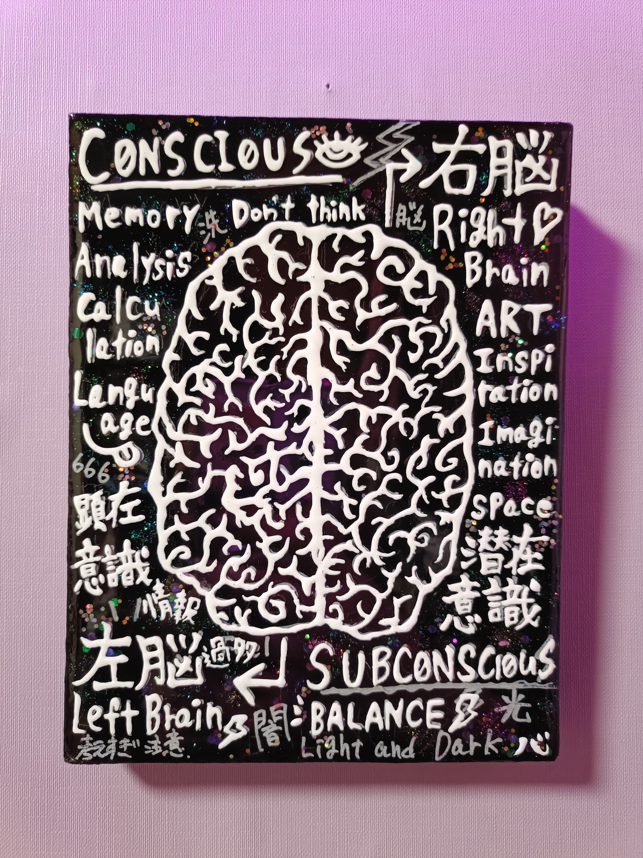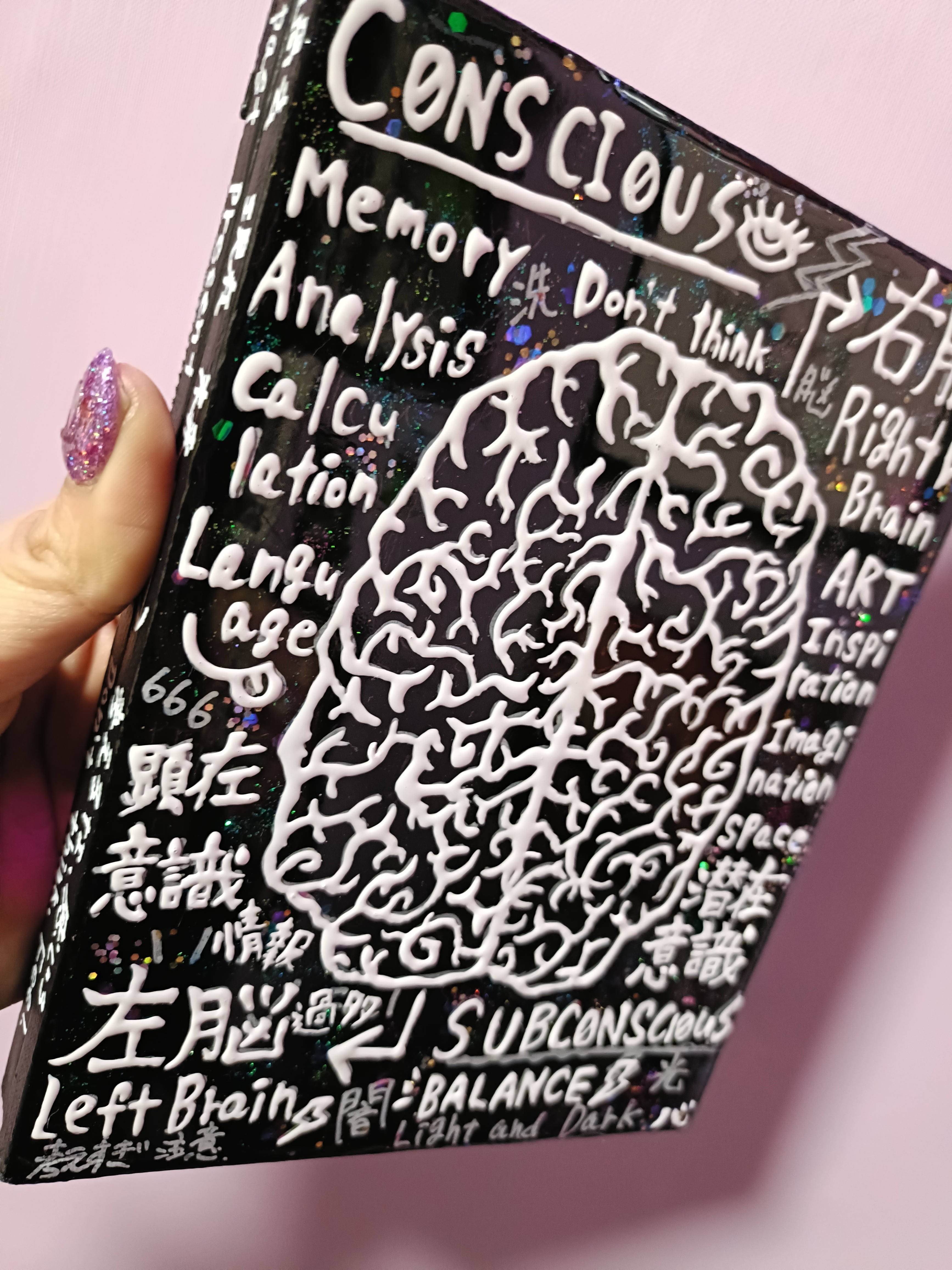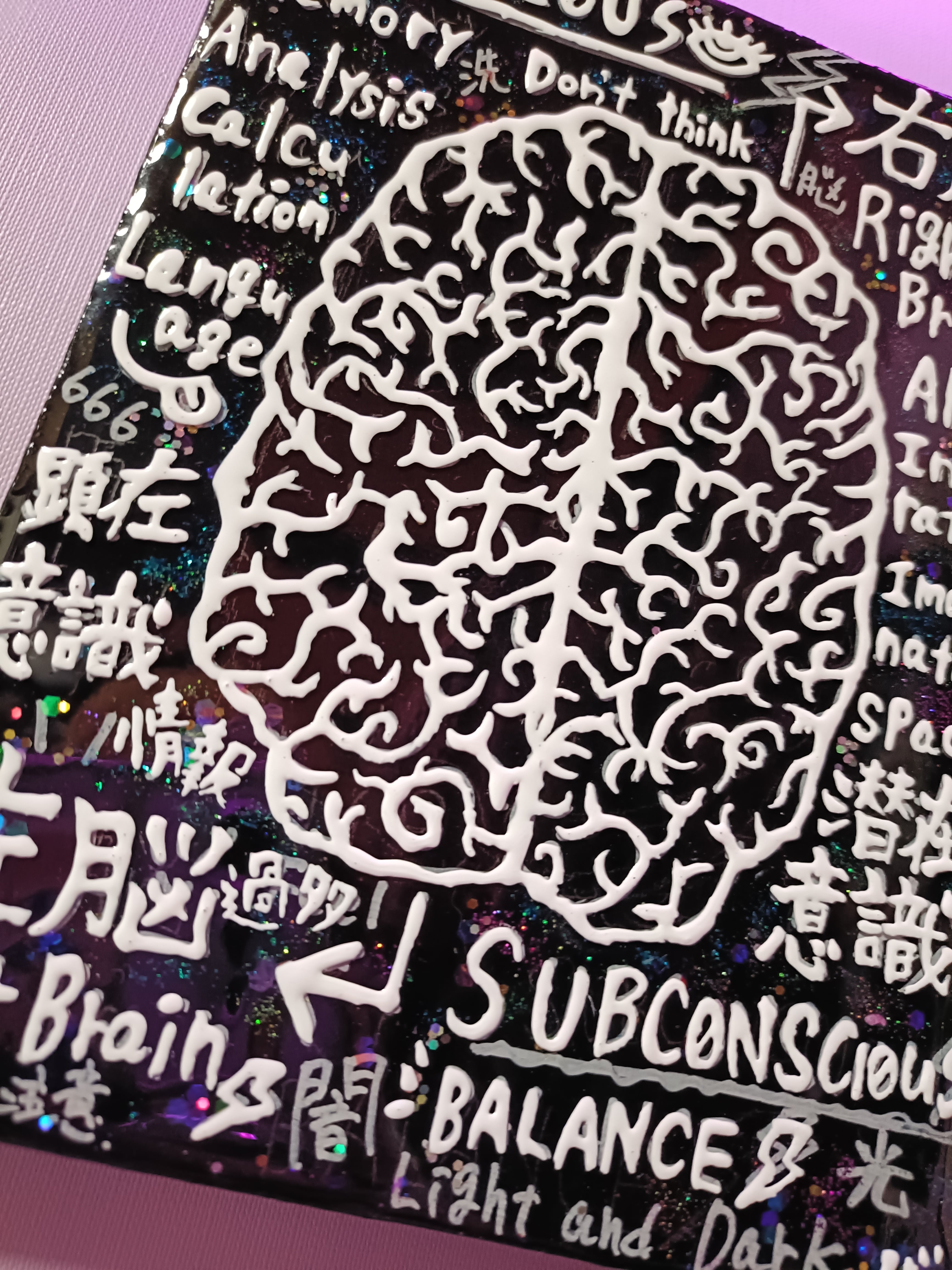技法:アクリル絵具,ポスカ,レジン,ラメ