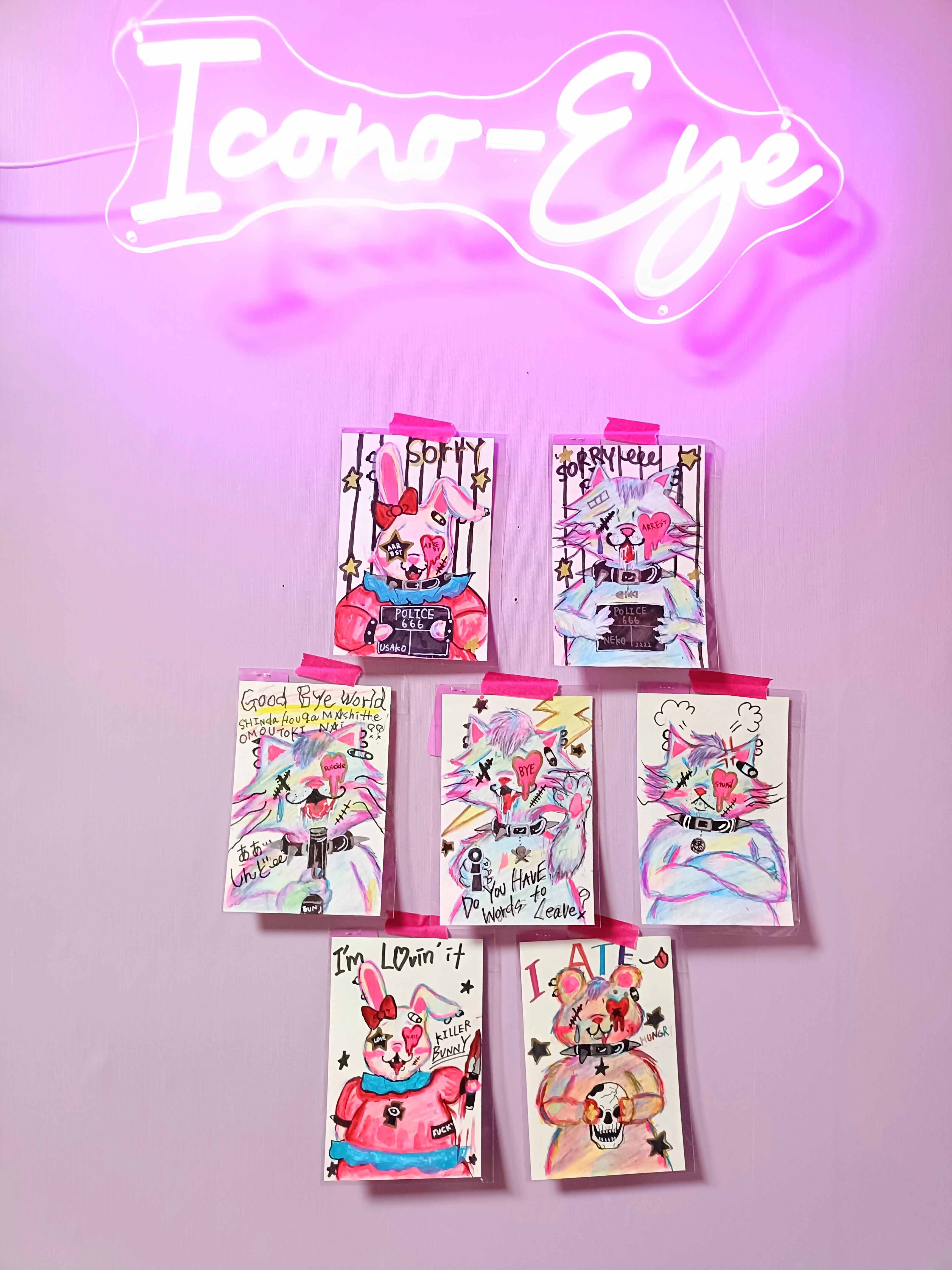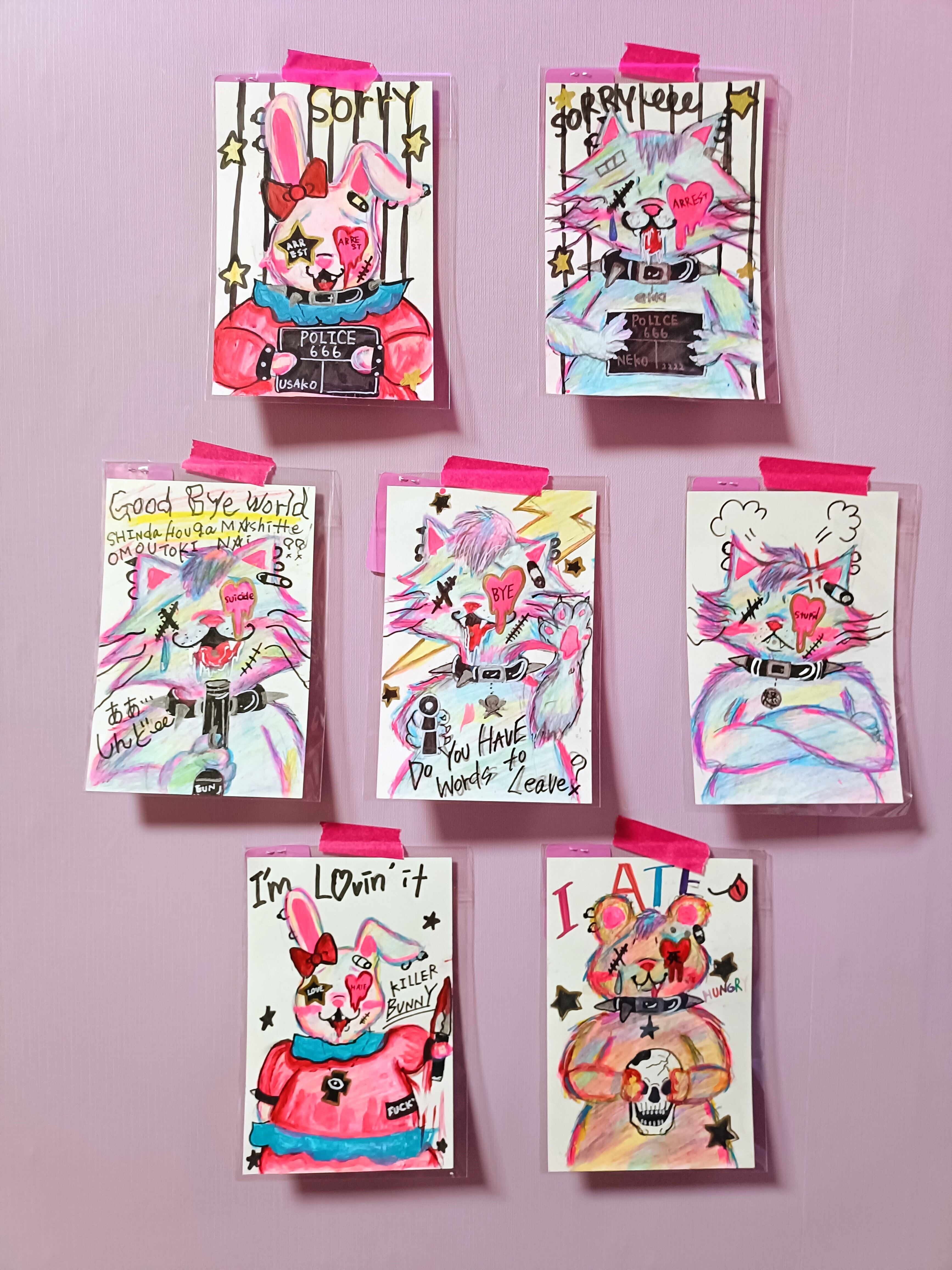 ポップで毒のあるクレイジーアニマルズのドローイング色鉛筆作品です✦