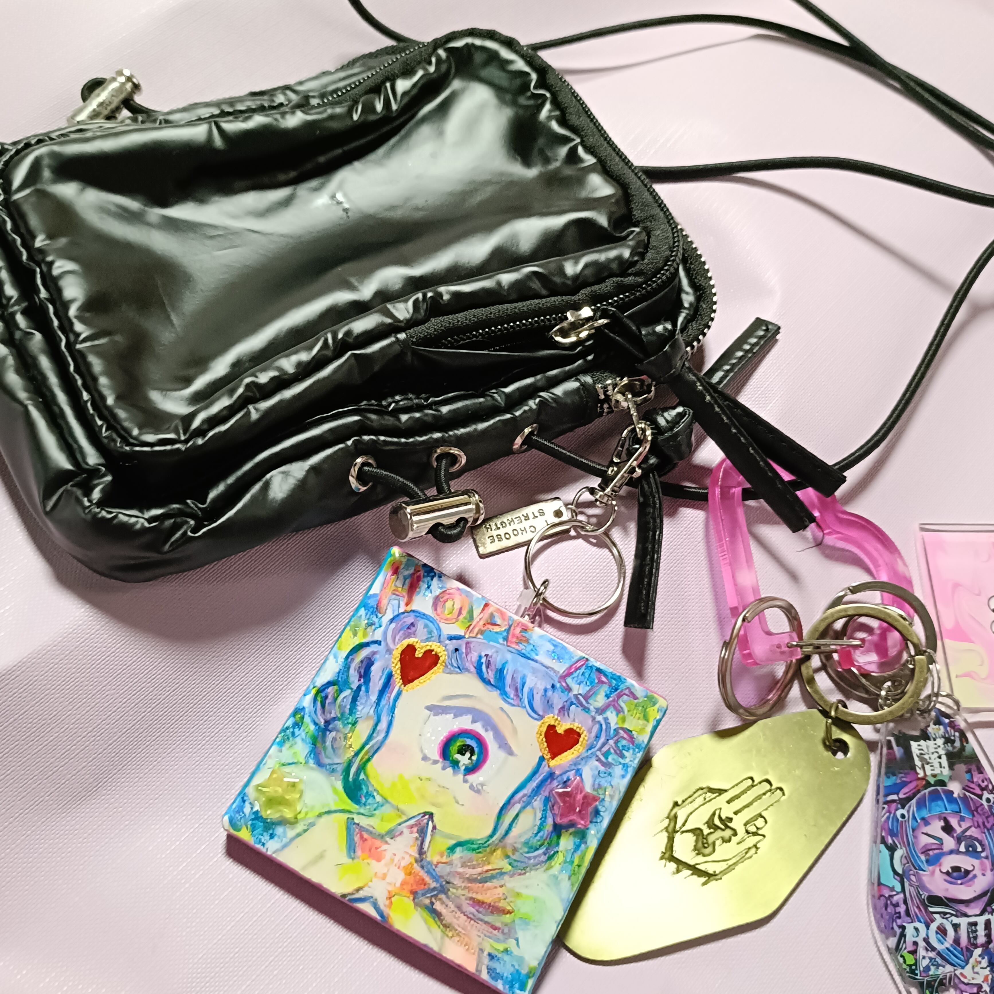 原画キーホルダーはアーティストIcono-Eye:Chikaが破壊と再生のポリシーの元、アートは壁に飾るべきという既成概念を砕き日常の一部として誰でも身に着けられる新感覚アートとして生み出しました☯