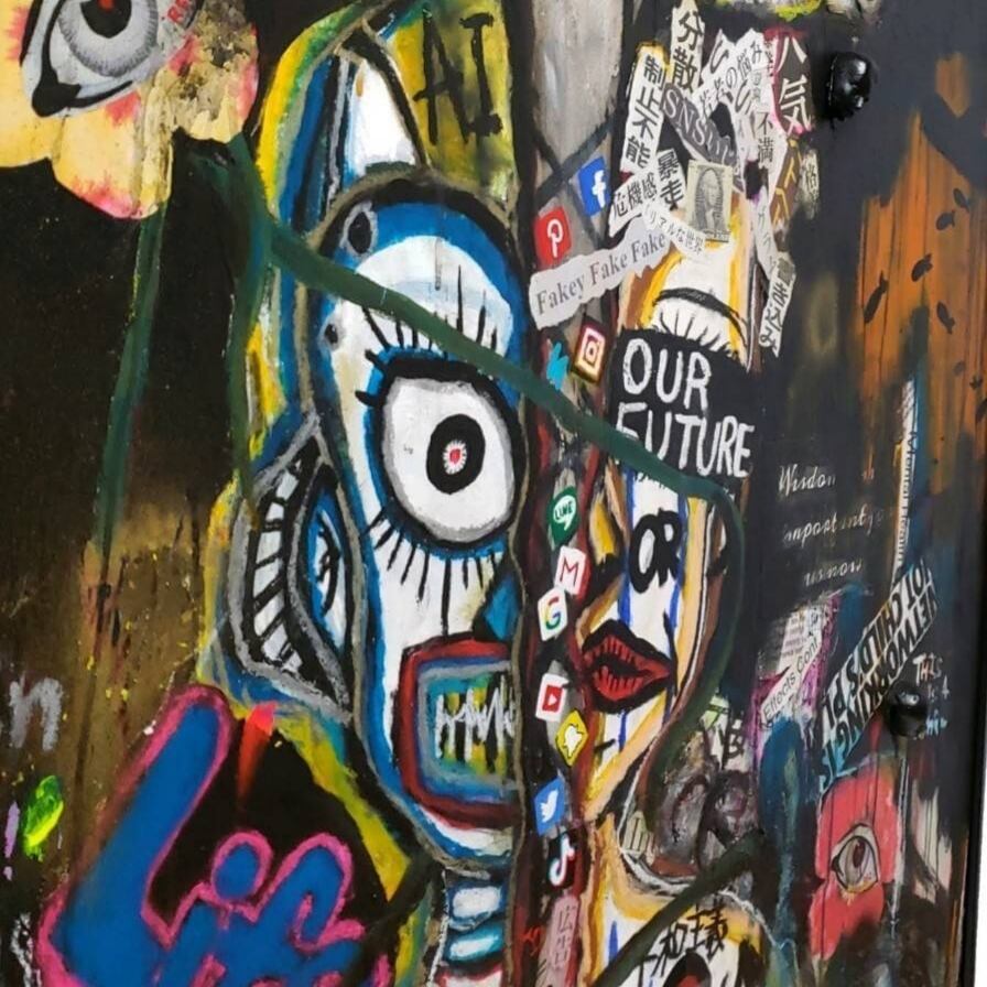 I created this work with the message of the dangers of social networking services, which have become an indispensable part of modern society.