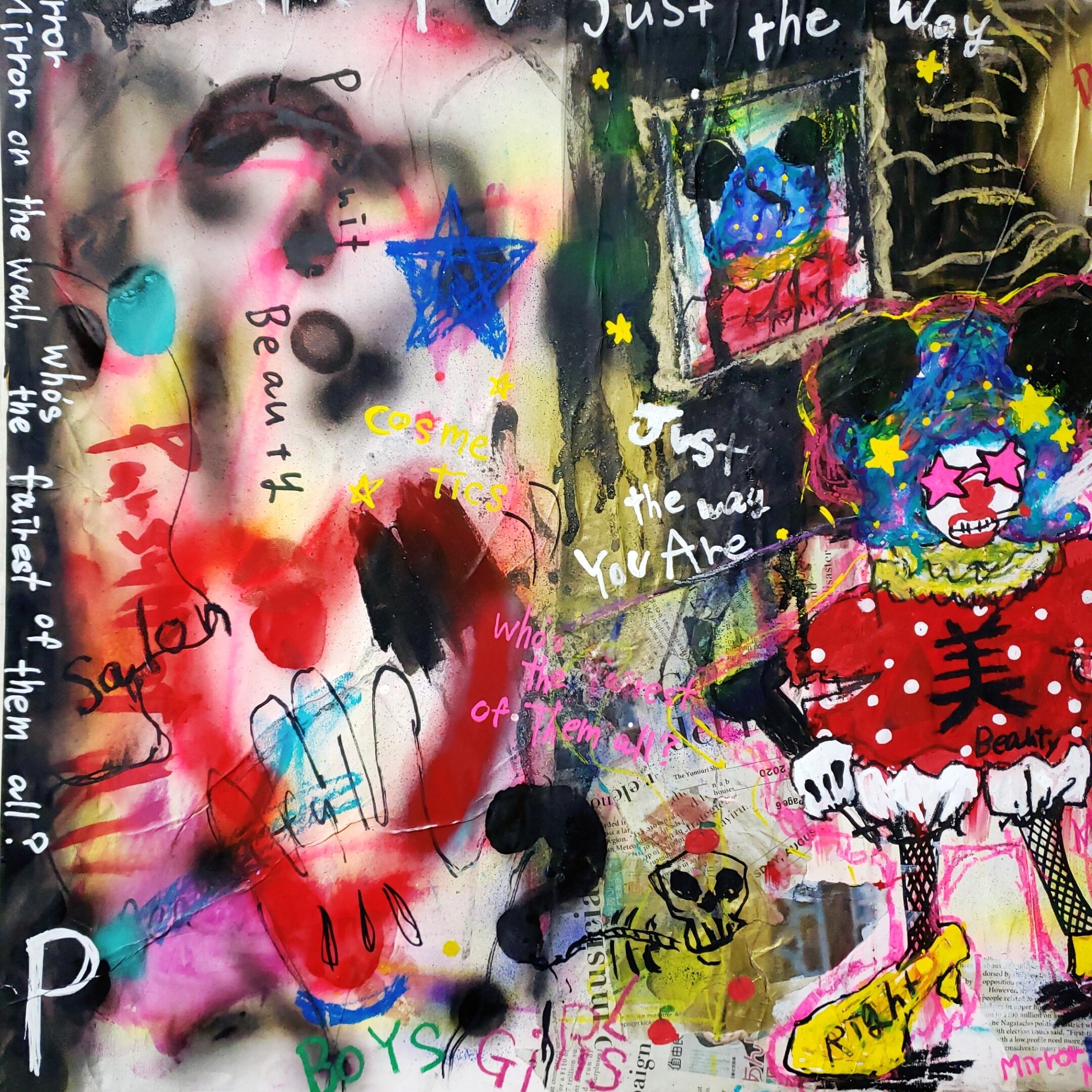 Acrylic,Oilpastel,Collage,Spray,pen