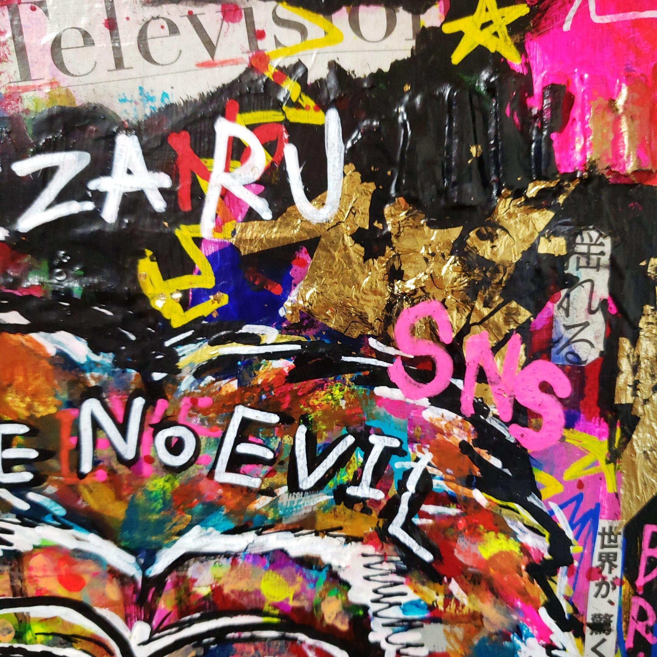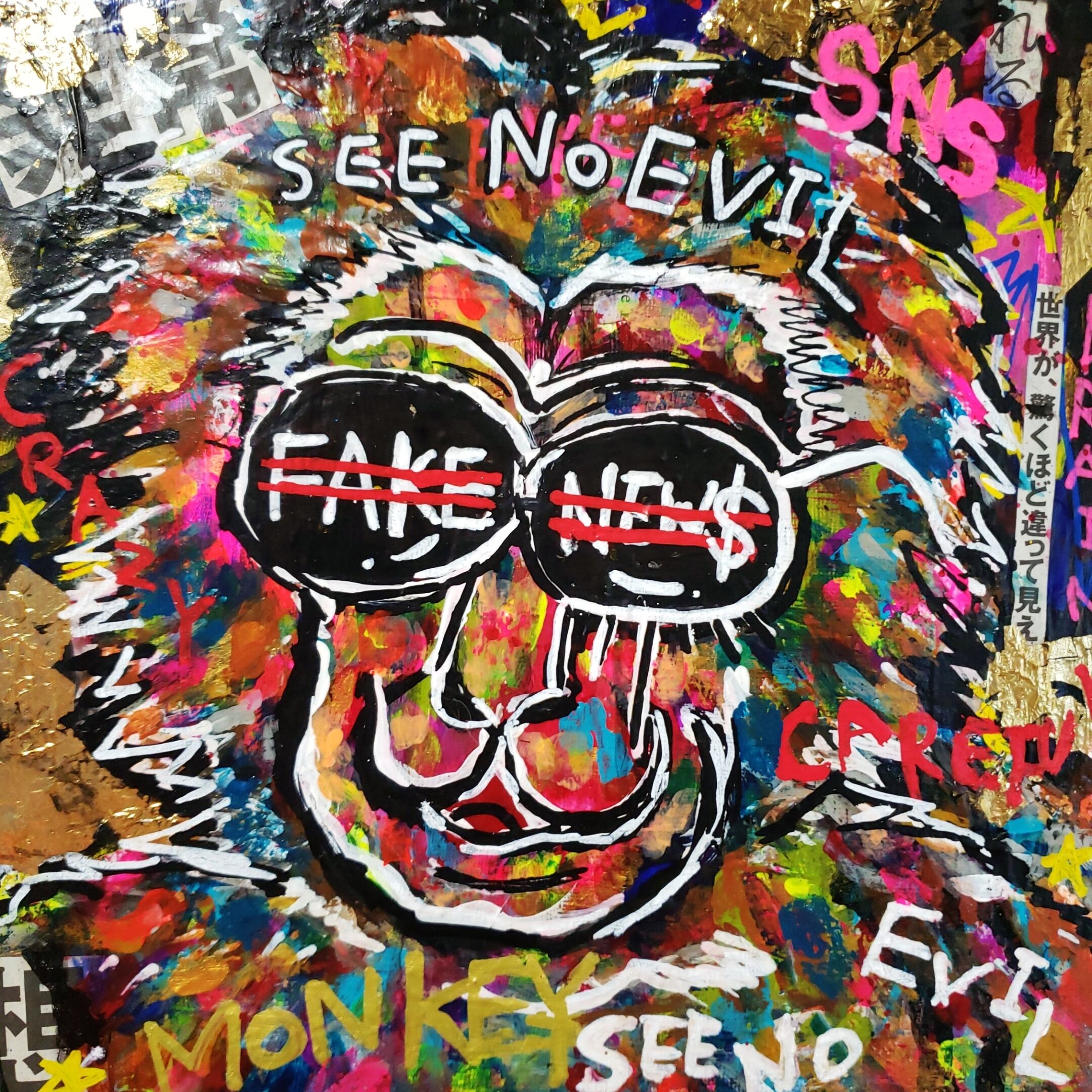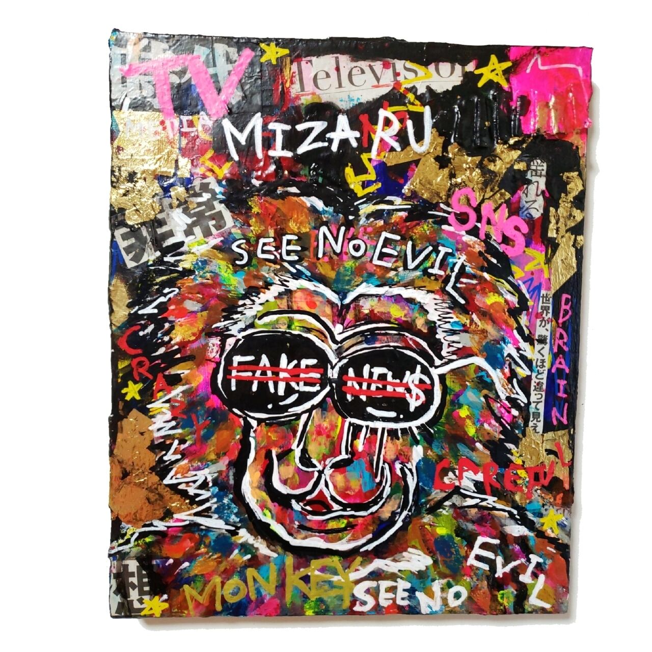 #現代アート #カラフルアート #猿 #Monkey #見ざる聞かざる言わざる #見猿聞か猿言わ猿 #コラージュ #メッセージアート #コトダマ #言霊 #コトダマアート #スピリチュアル #自己肯定感 #インテリア #ハンドメイド