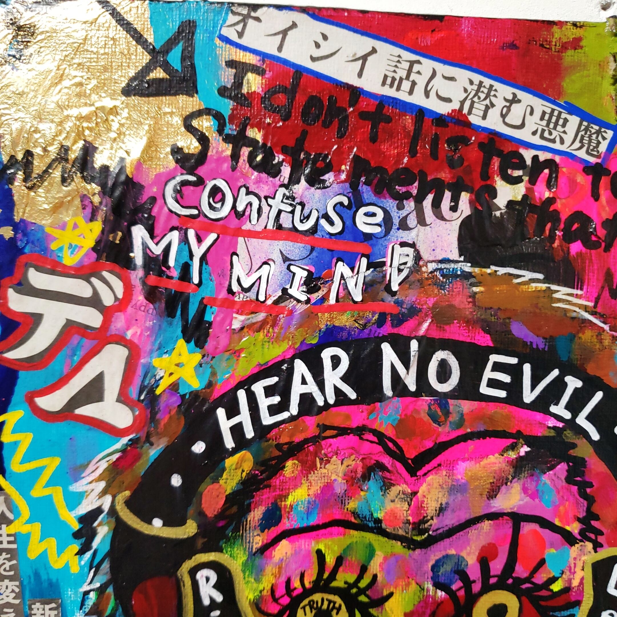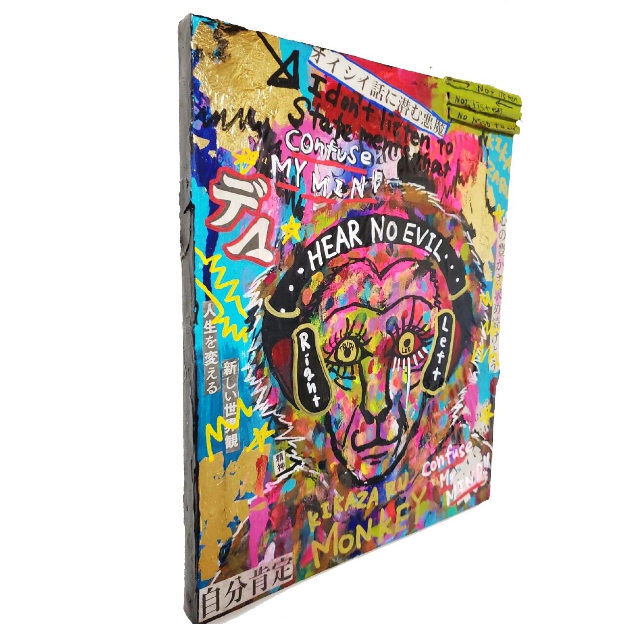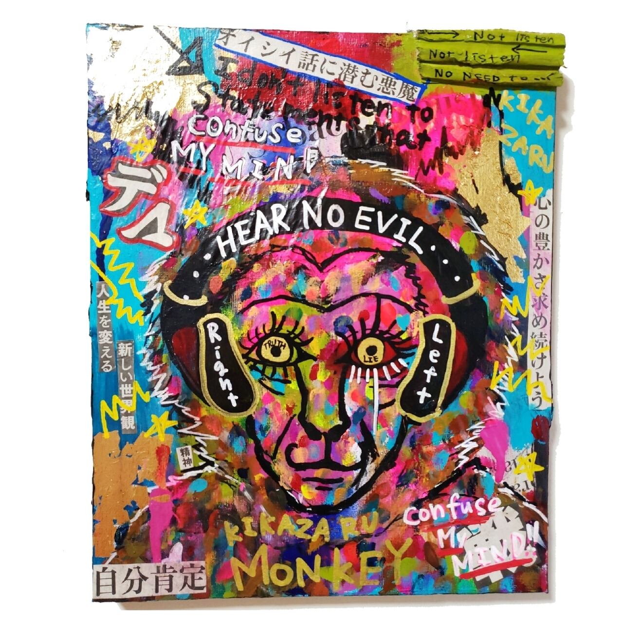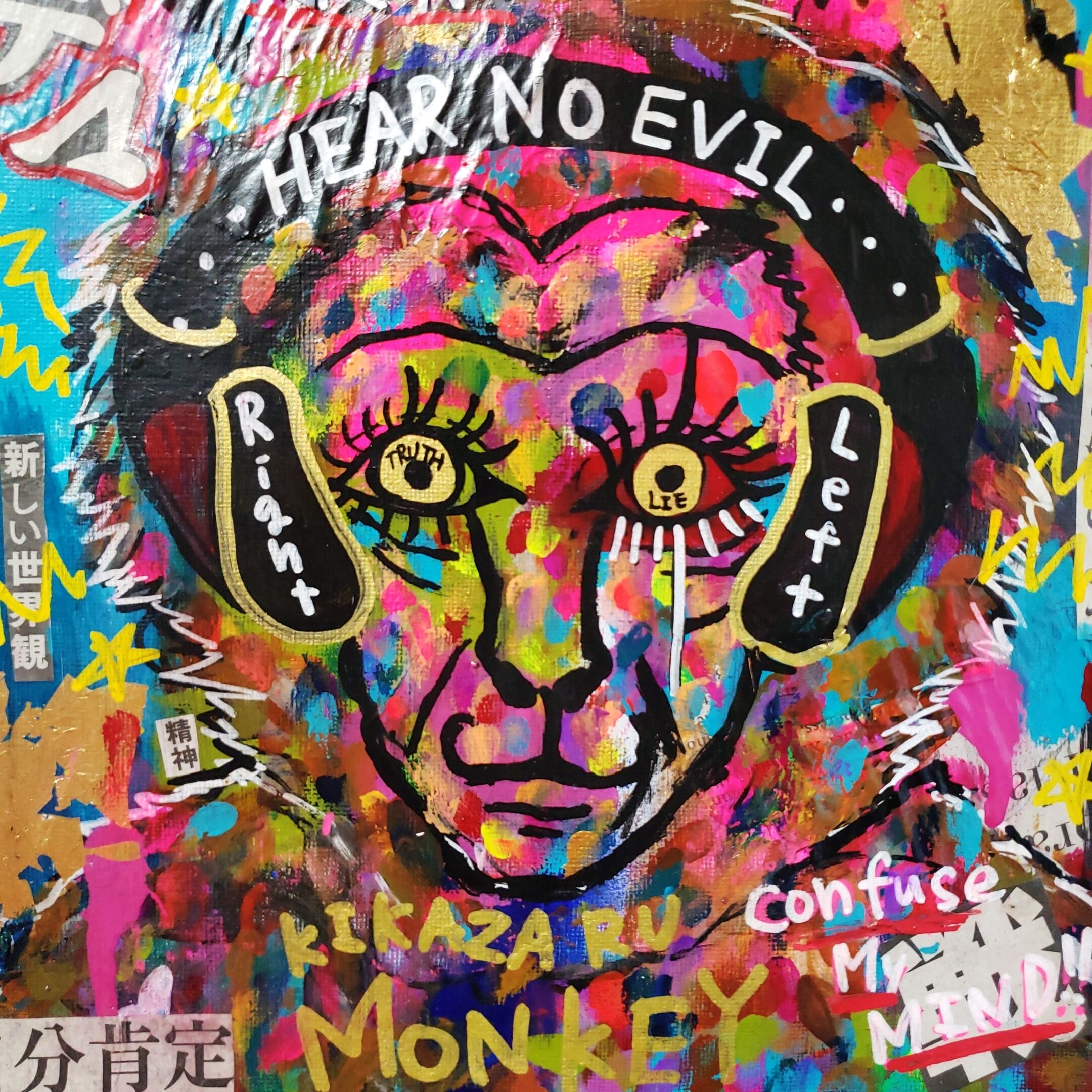 #現代アート #カラフルアート #猿 #Monkey #見ざる聞かざる言わざる #見猿聞か猿言わ猿 #コラージュ #メッセージアート #コトダマ #言霊 #コトダマアート #スピリチュアル #自己肯定感 #インテリア #ハンドメイド