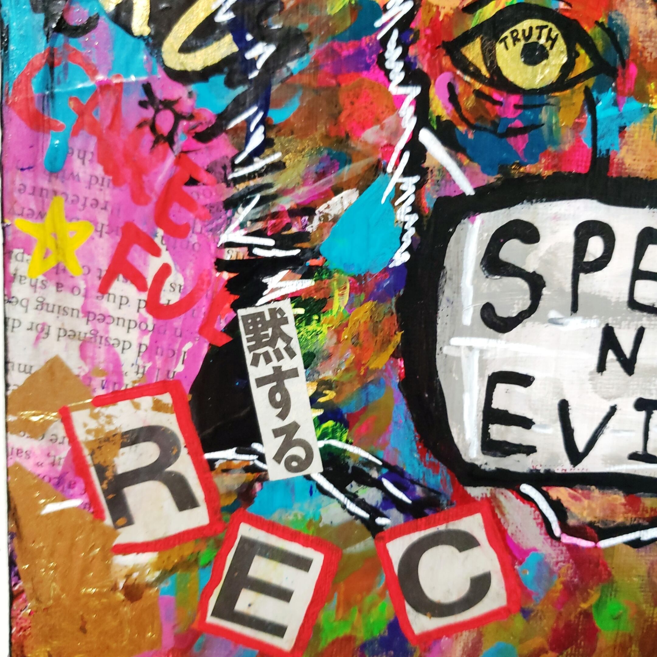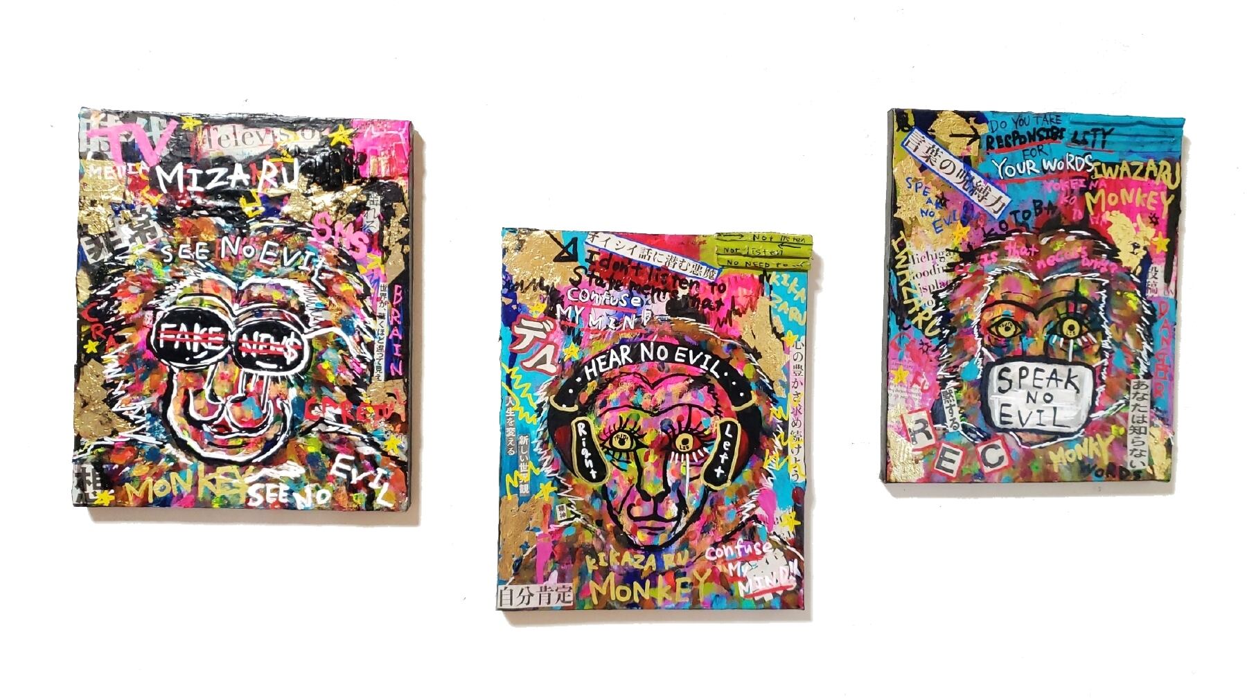 #現代アート #カラフルアート #猿 #Monkey #見ざる聞かざる言わざる #見猿聞か猿言わ猿 #コラージュ #メッセージアート #コトダマ #言霊 #コトダマアート #スピリチュアル #自己肯定感 #インテリア #ハンドメイド