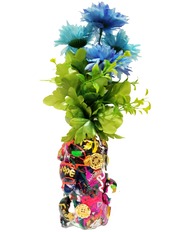 プラスチックボトル/紙粘土/石膏粘土/アクリル/スプレー/ポスカ/ヴィンテージボタン/ニス