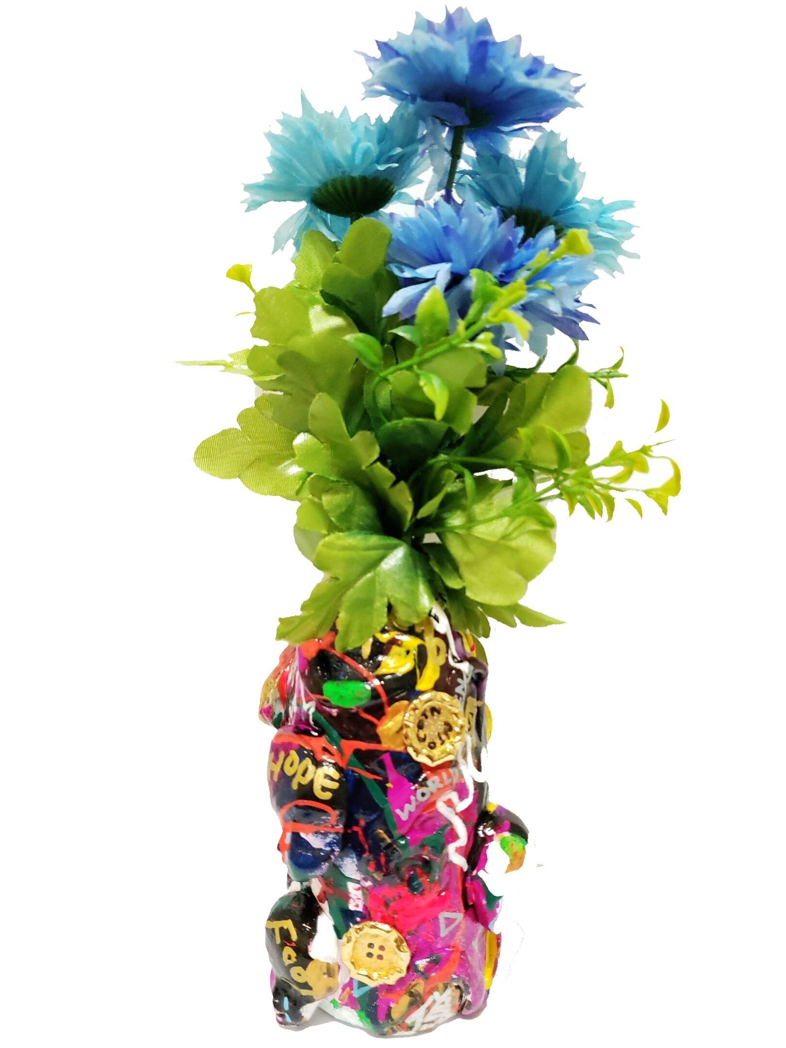 plastic bottle/Acrylics/paper clay/spray/Posca/button/varnish