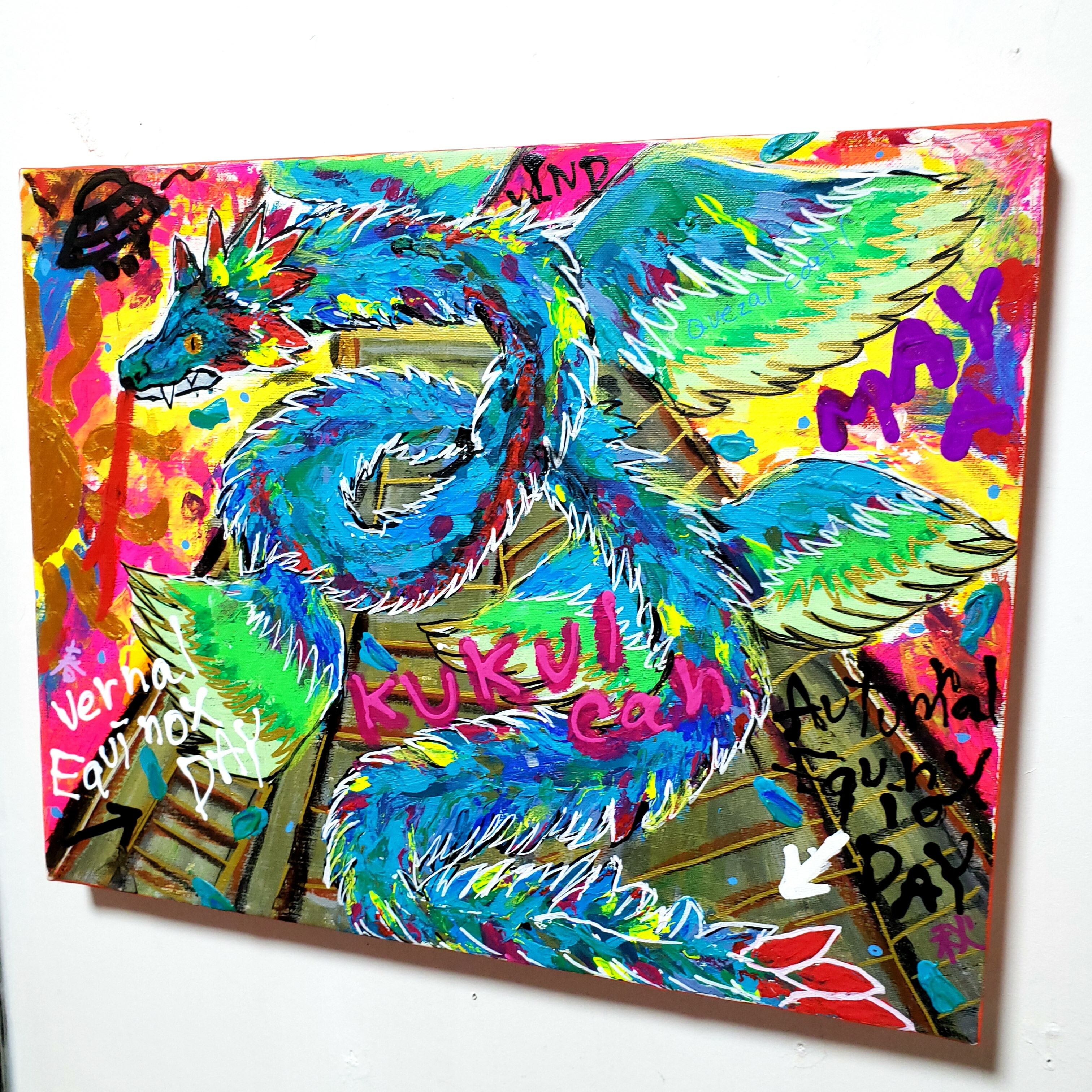 マヤ文明、アステカ文明の創造神と神殿チェチェンイッツァを描いた作品。