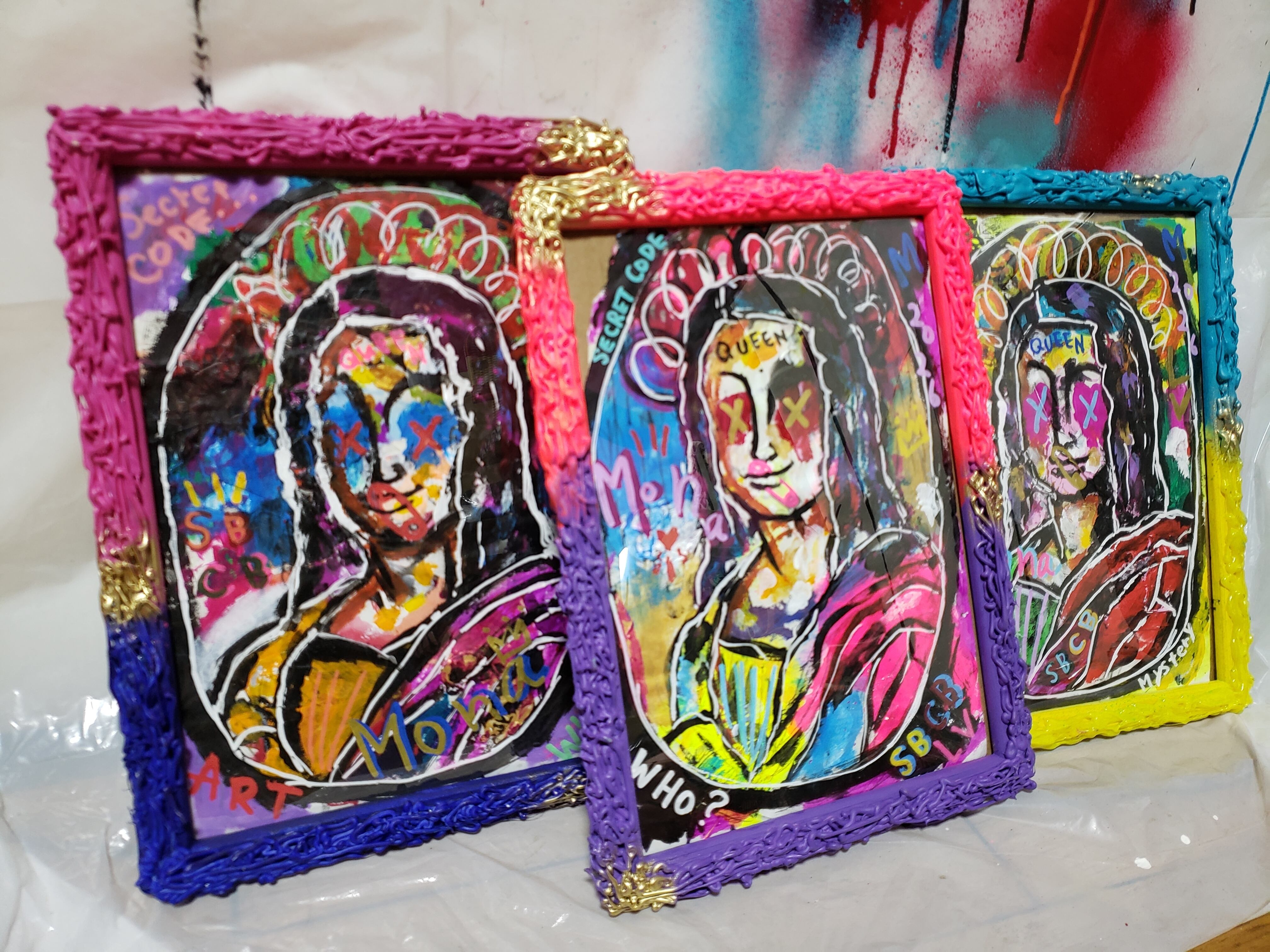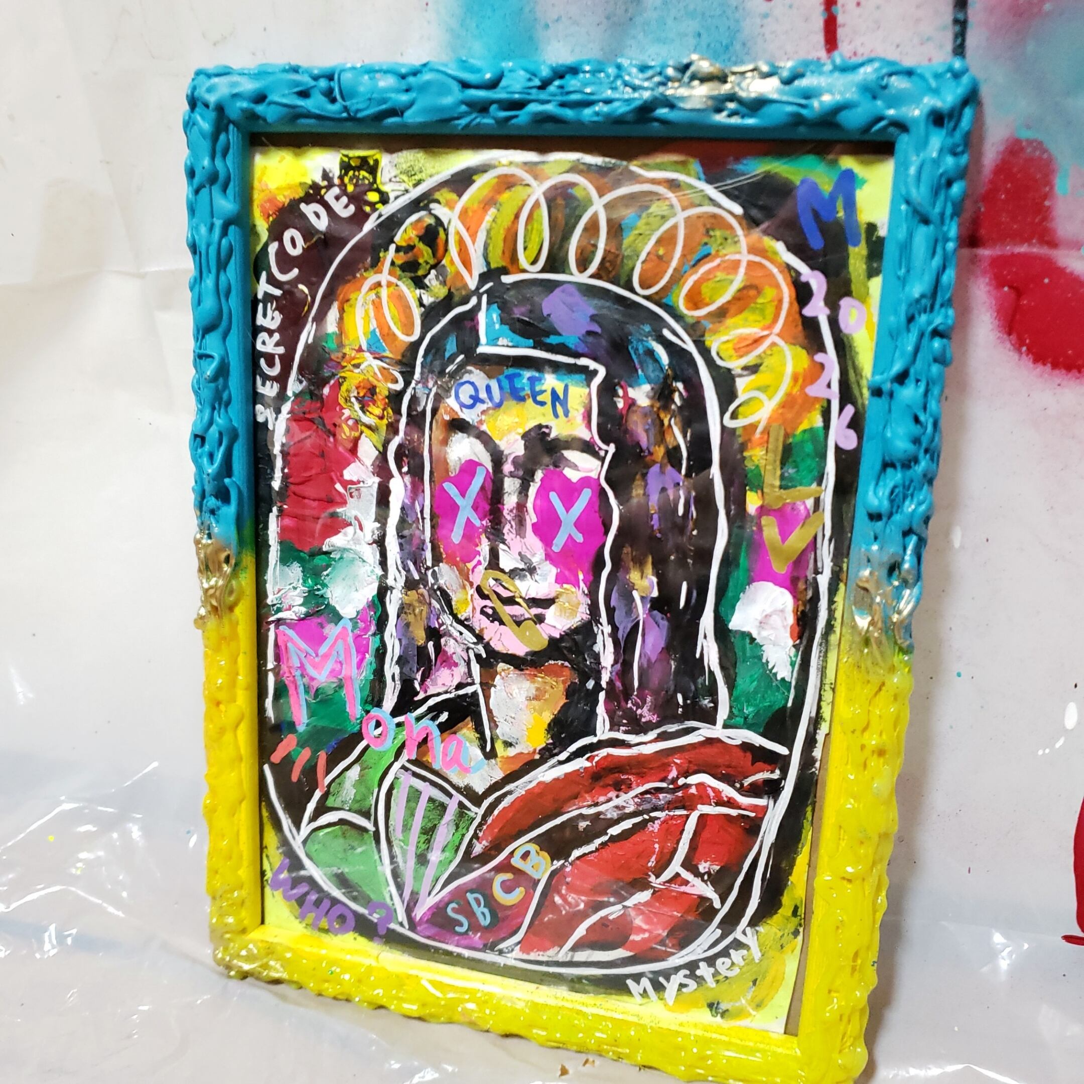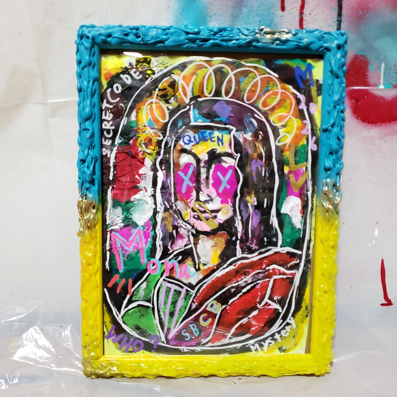 パレットがわりに使っていた画用紙の上から描いたモナリザクイーンです!