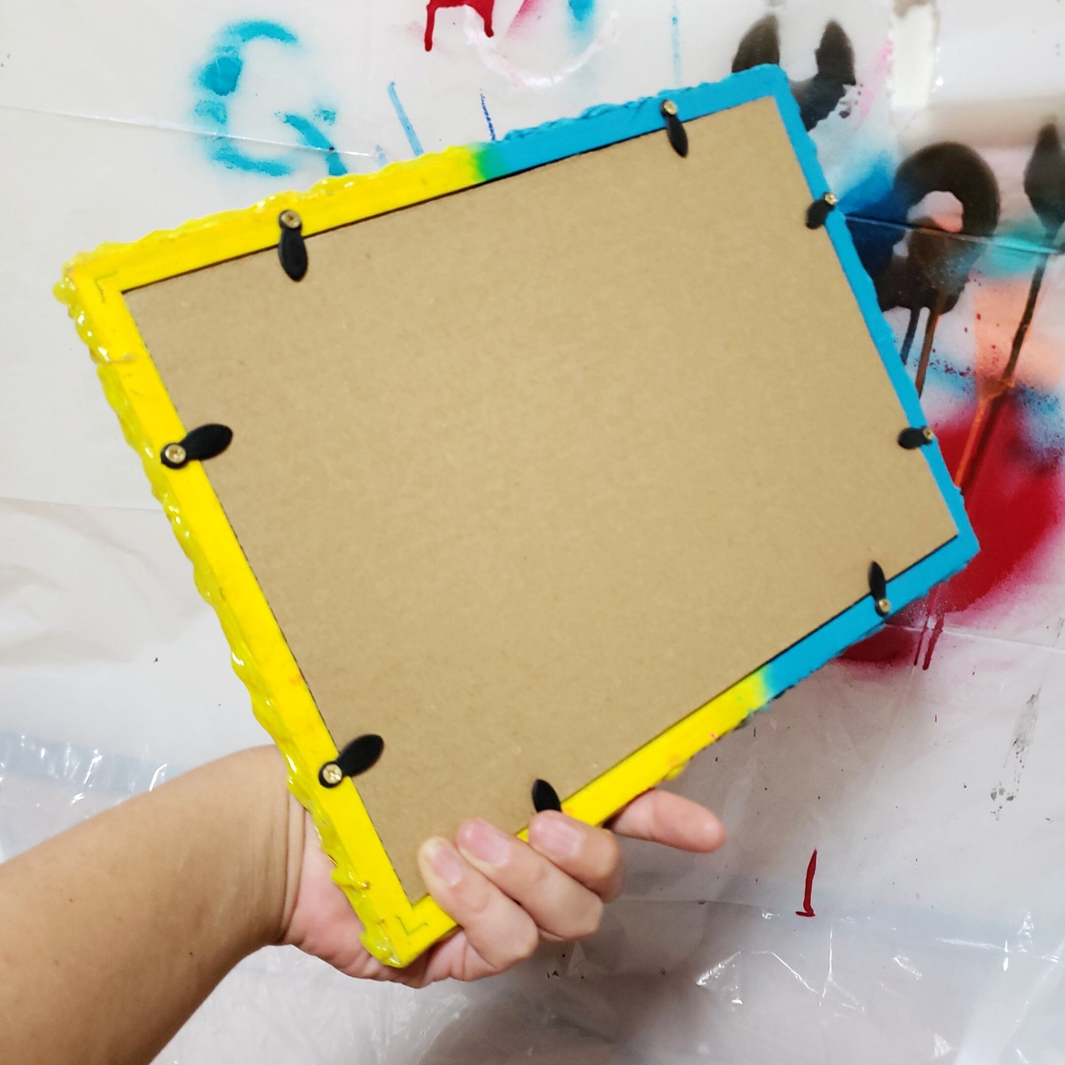 グラデーションカラーにペイントしたリメイク額入りになります。