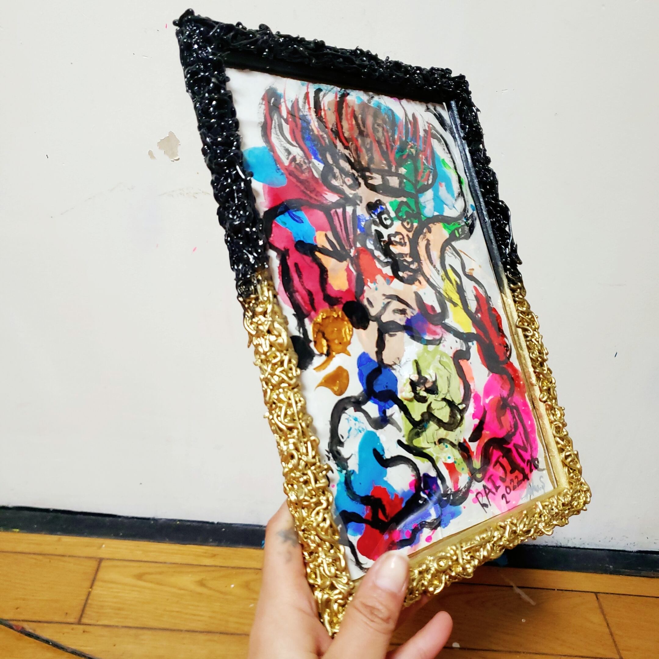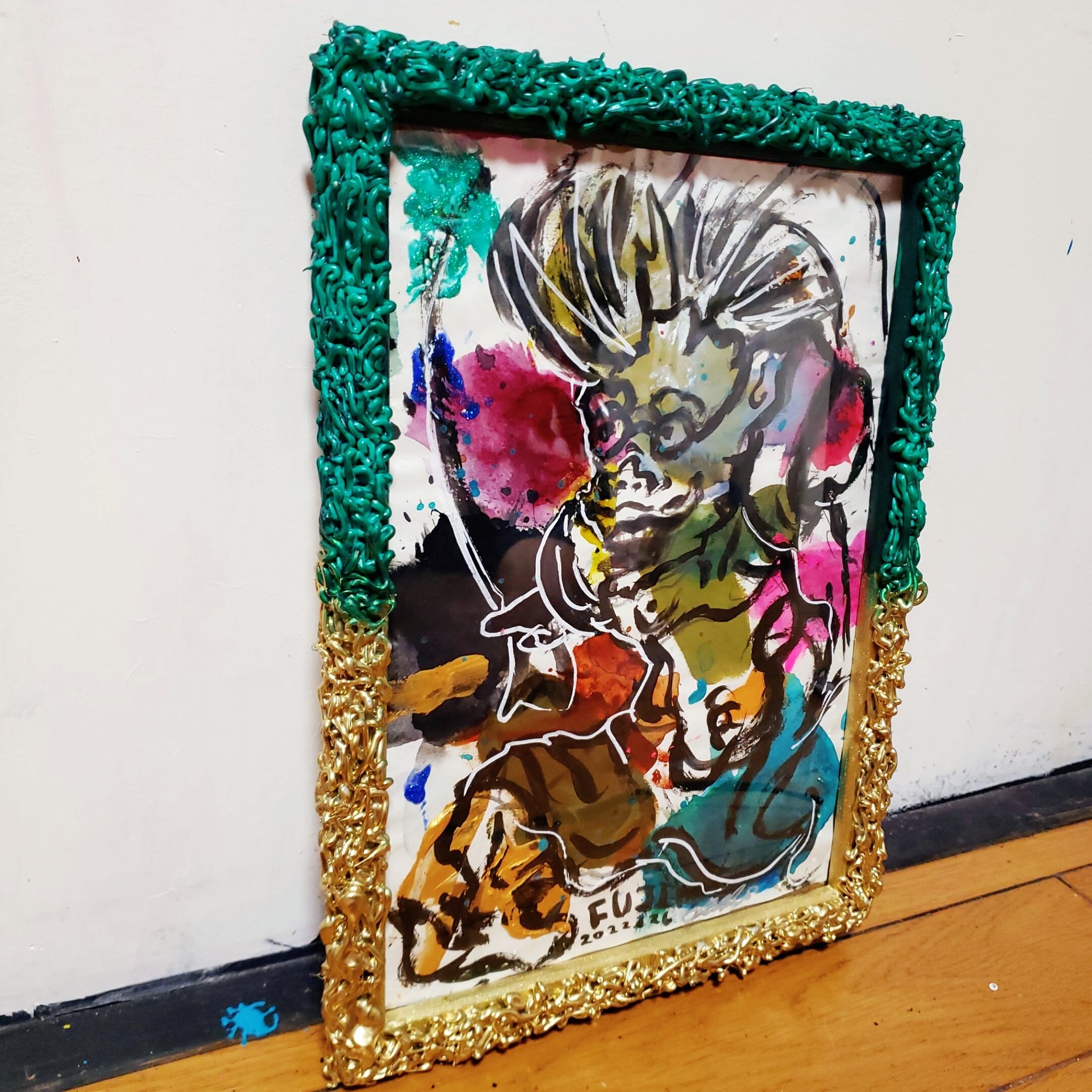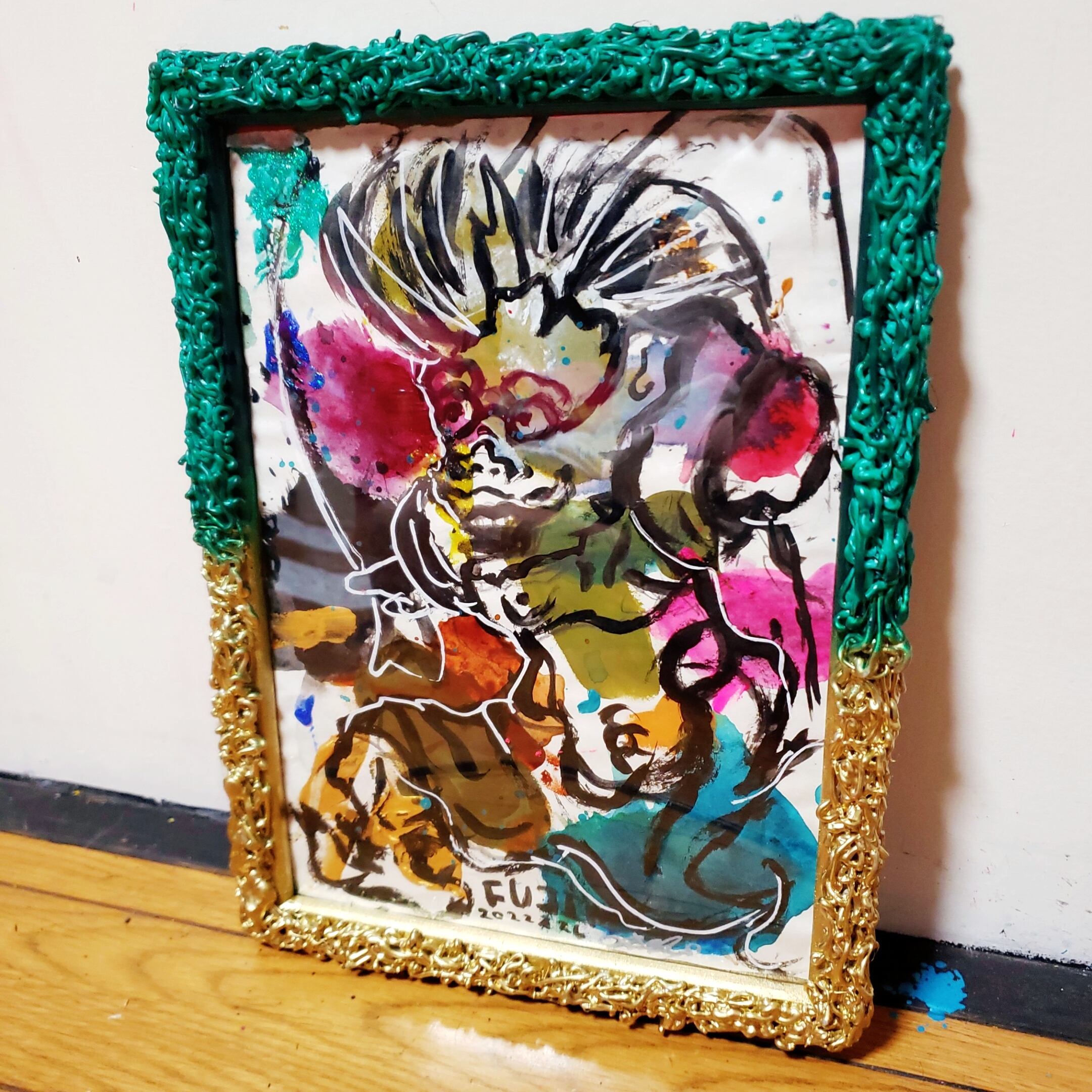 #現代アート #らくがき #風神雷神 #風神 #アート #ポップアート #ドローイング #額縁 #イラスト #インテリア