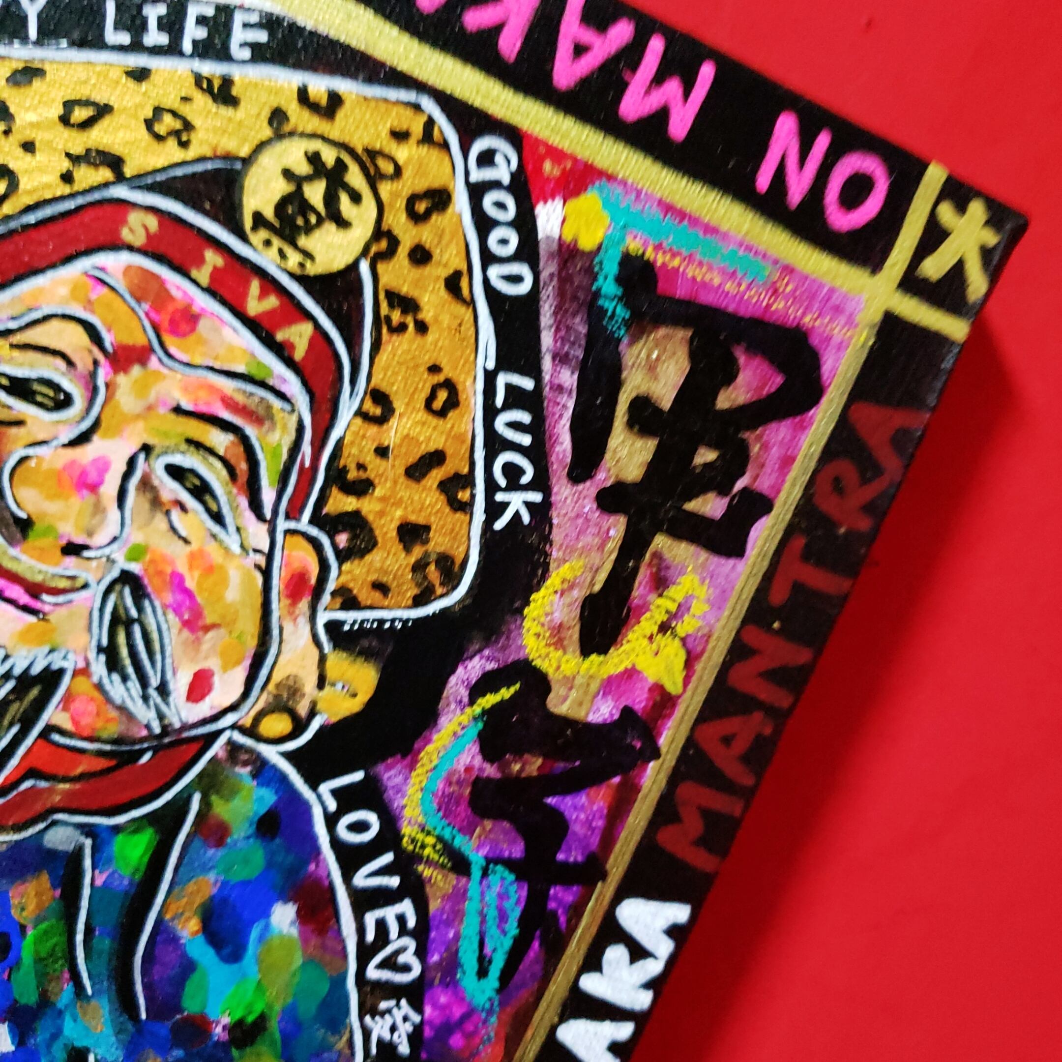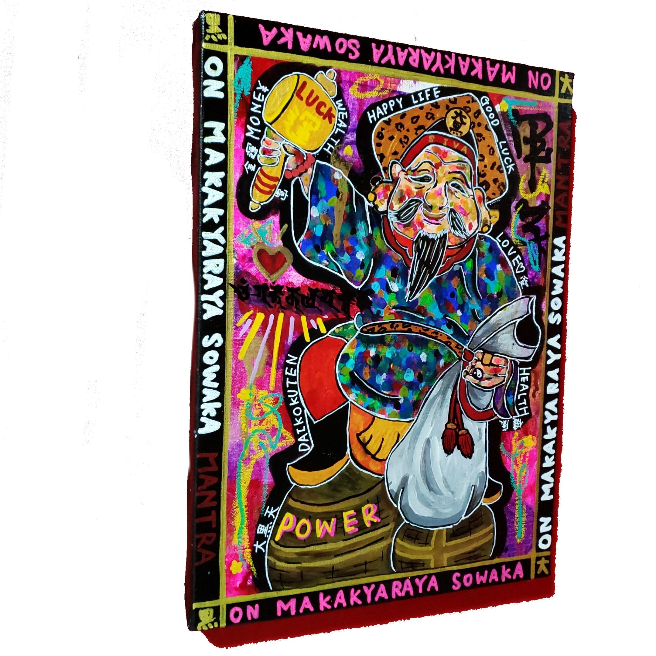 日本では七福神の一柱としてお馴染み大黒天をアニマル柄の帽子やロッキンホース風なブーツ履かせてちょっとパンクに描いた作品です笑