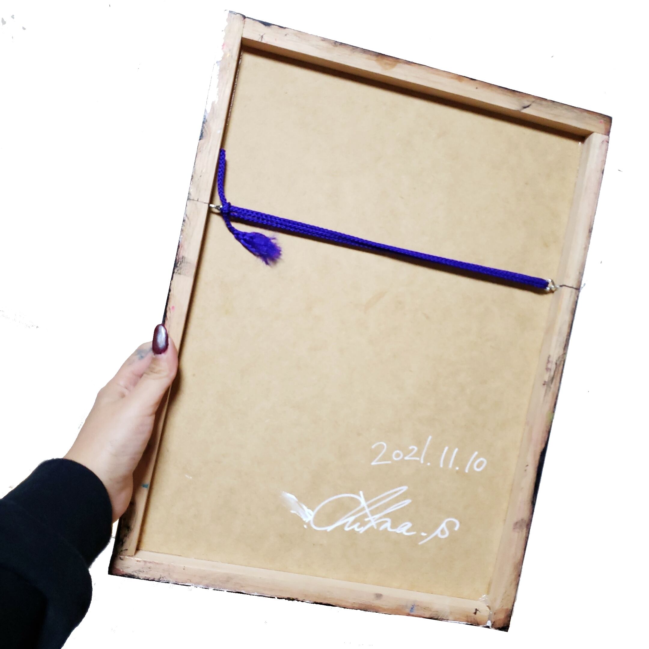 金具とヒモが付いているので額総なしでもそのまま壁掛け可能です(^^)