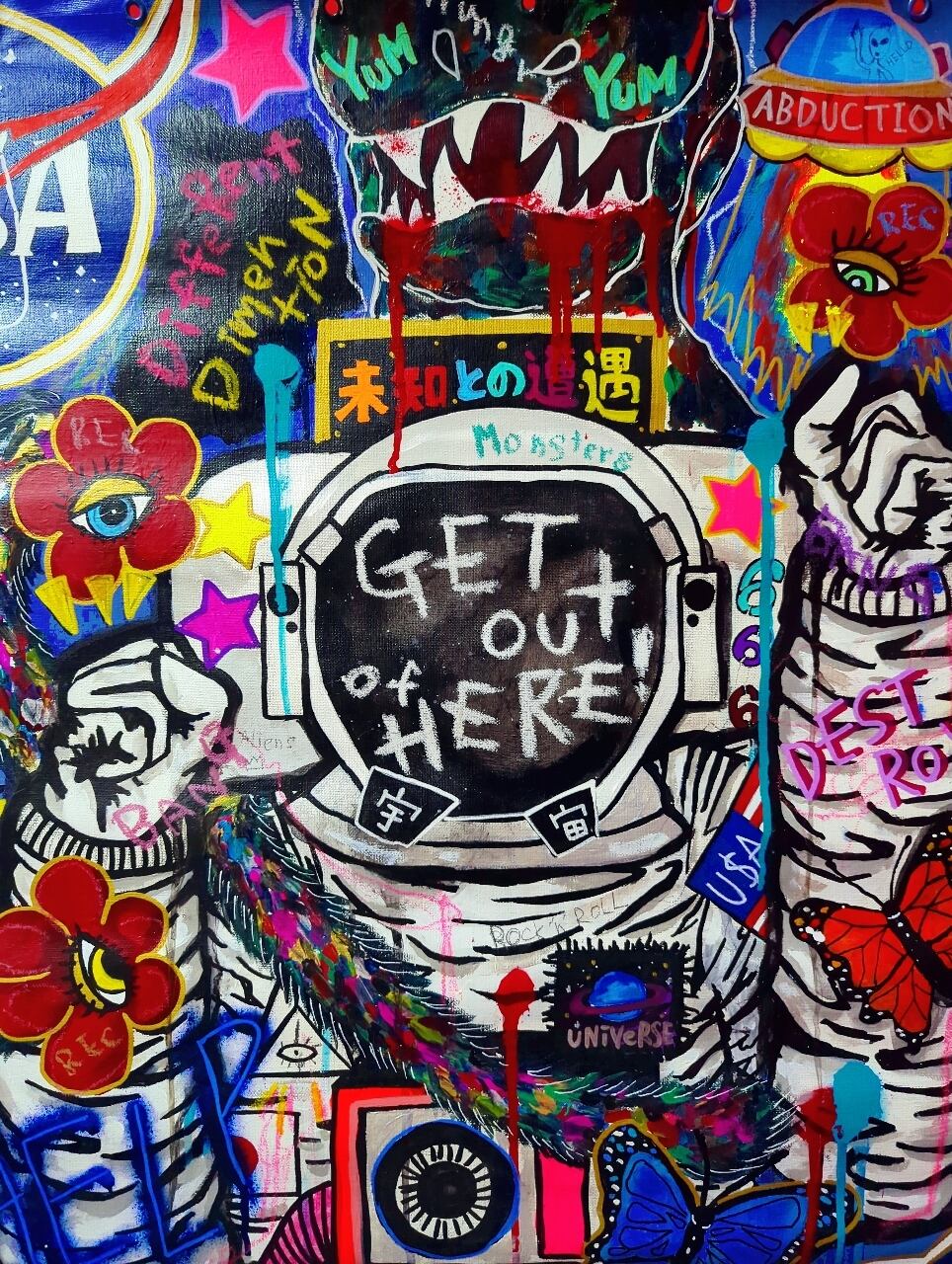 #現代アート #アート #絵画 #宇宙飛行士 #UFO #NASA #エイリアン #インテリア #タペストリー #アートポスター #イラスト