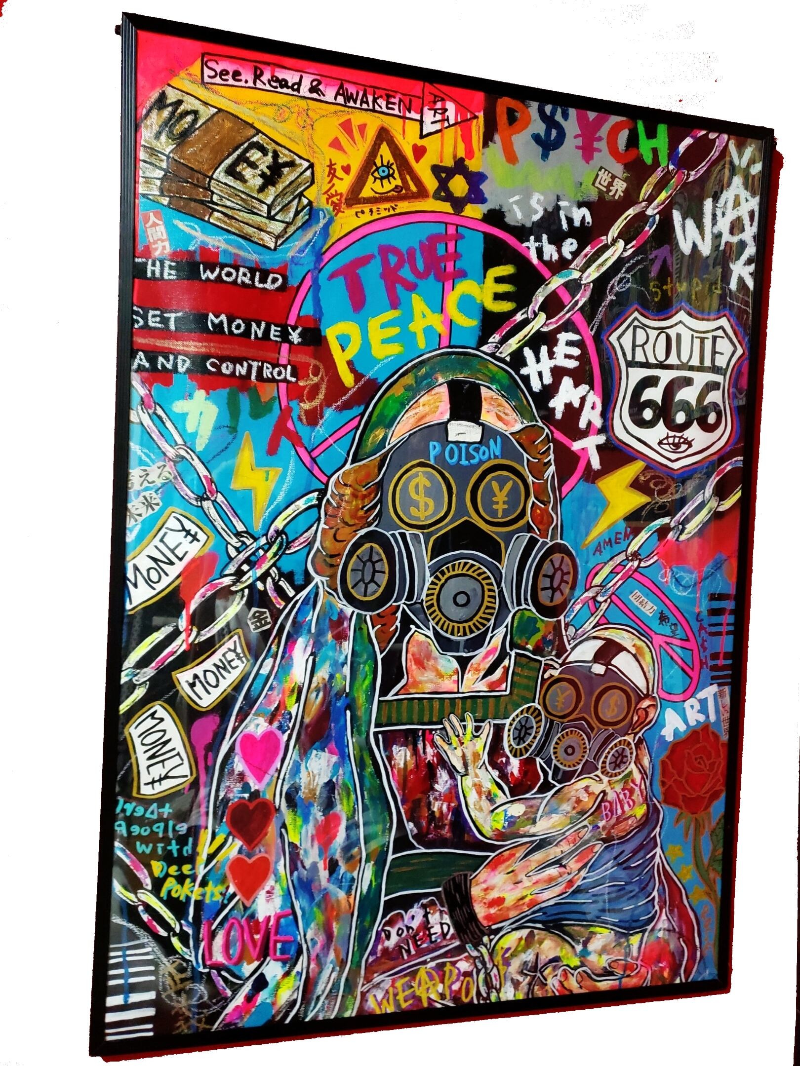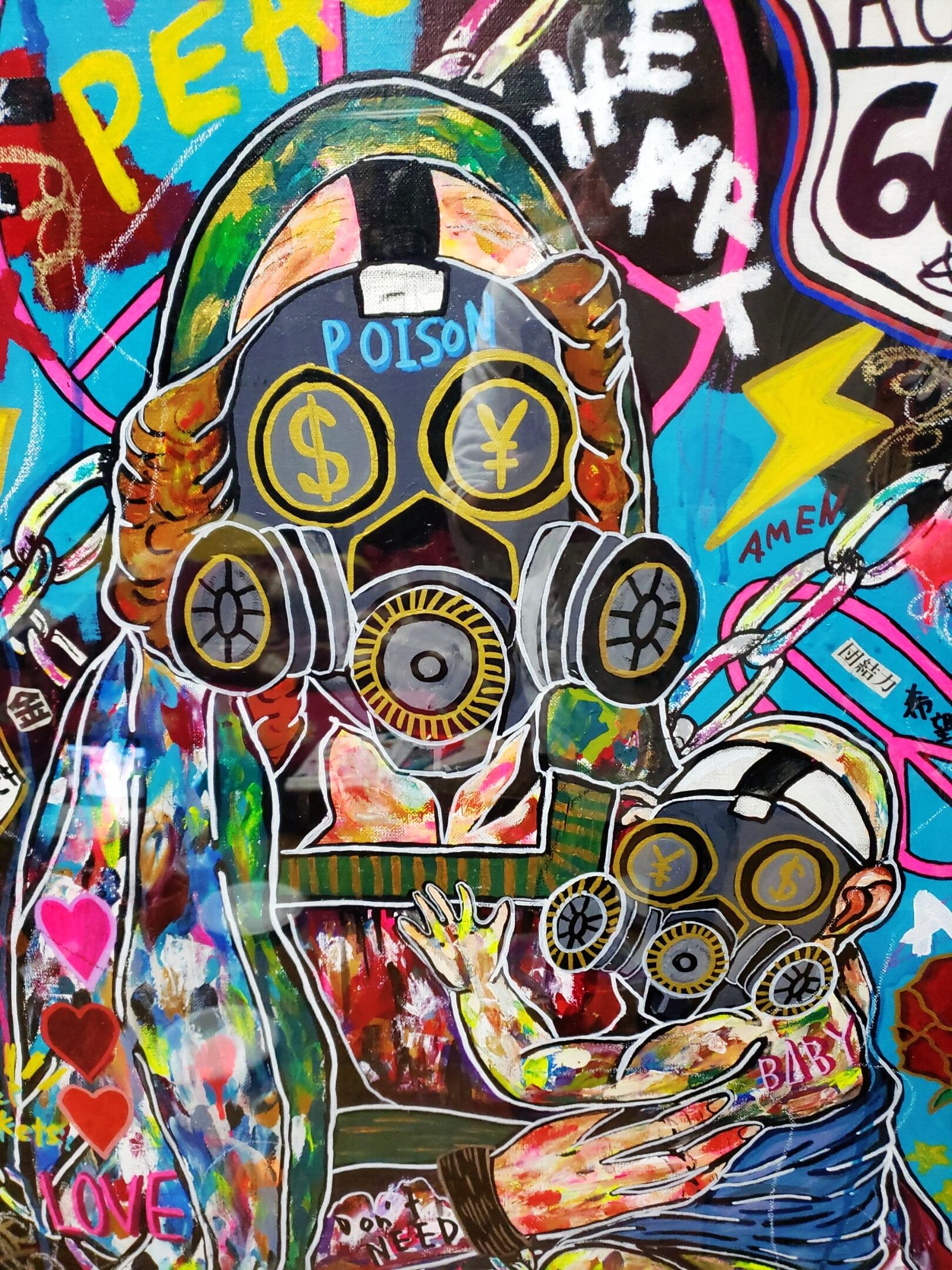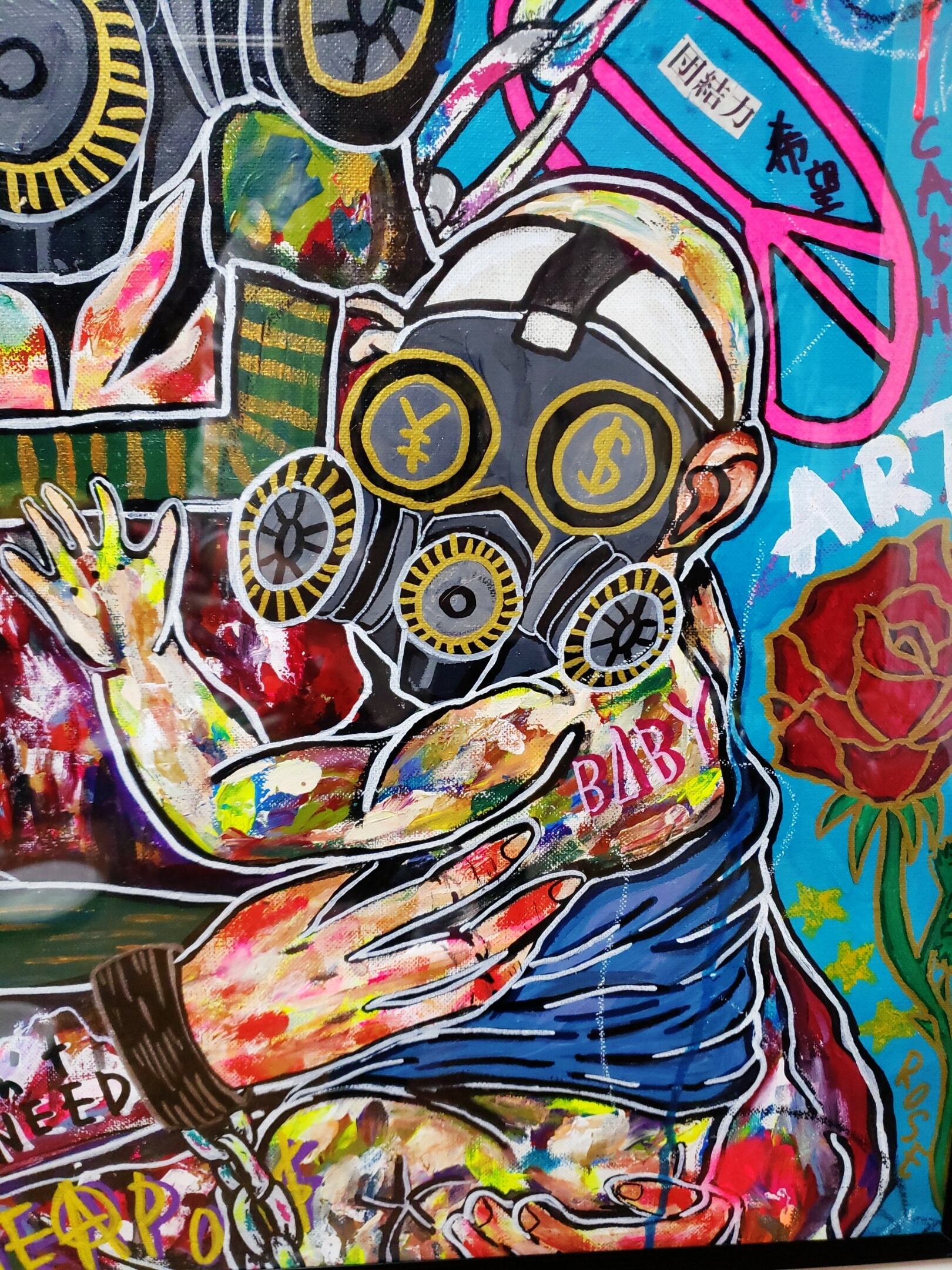 ラファエロの大公の聖母をモチーフに現代社会を皮肉ったポップアート作品になります。