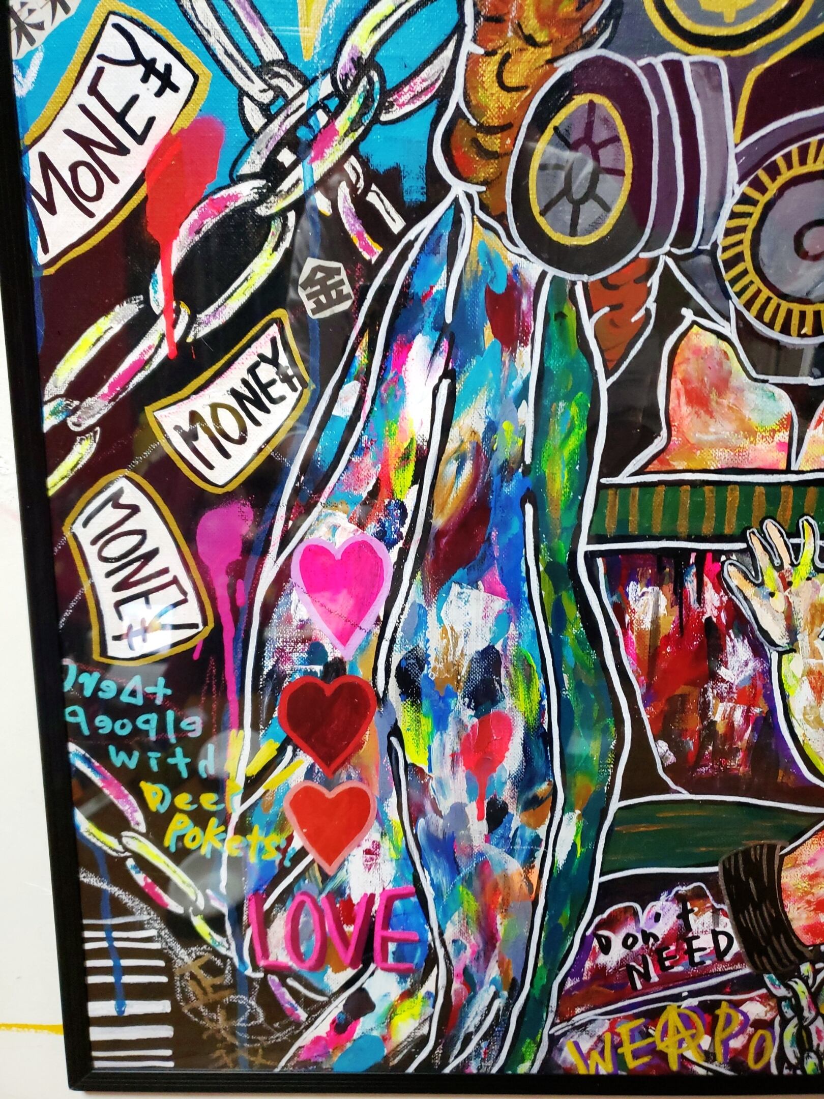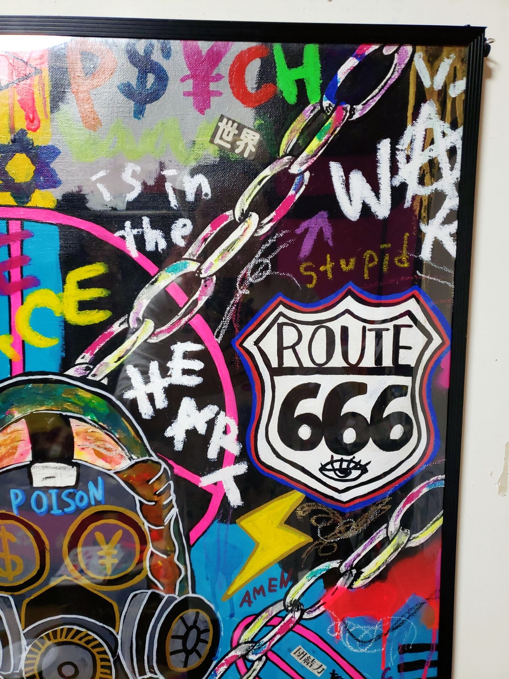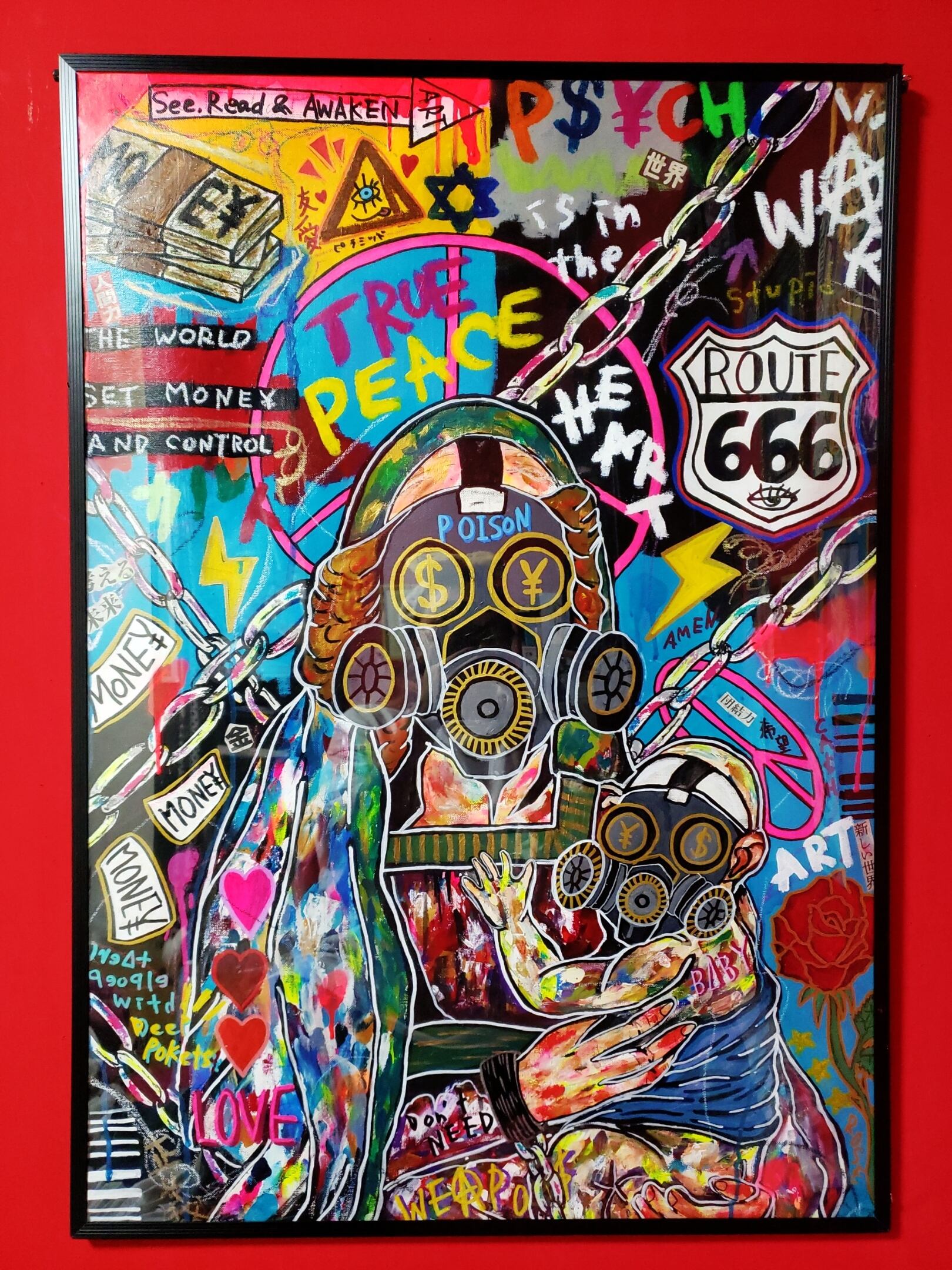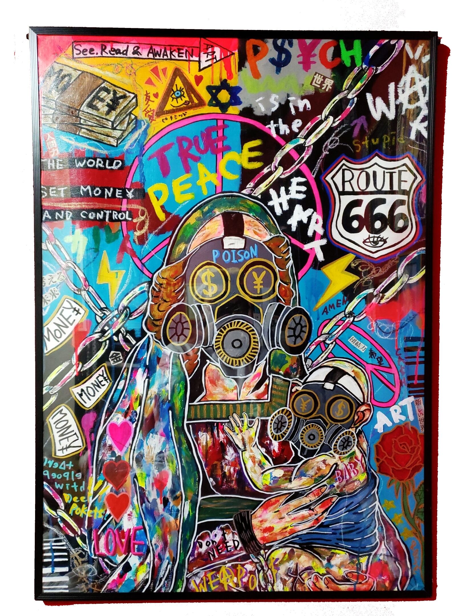 ラファエロの大公の聖母をモチーフに現代社会を皮肉ったポップアート作品になります。