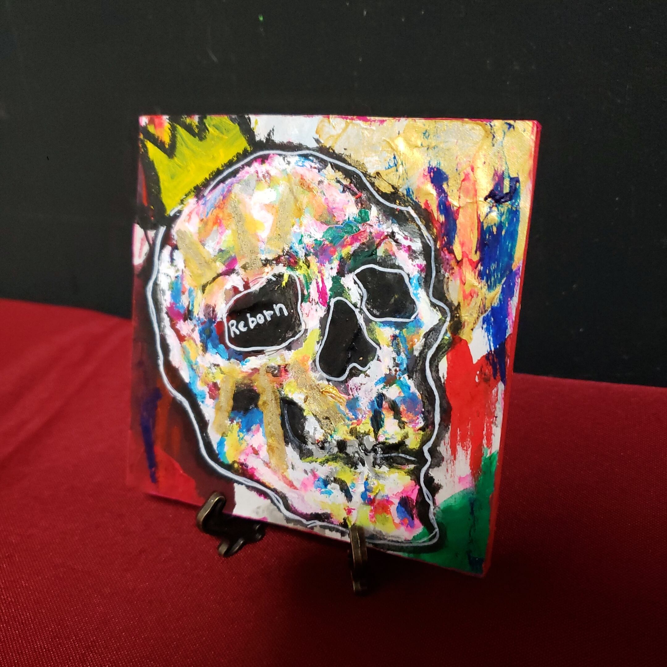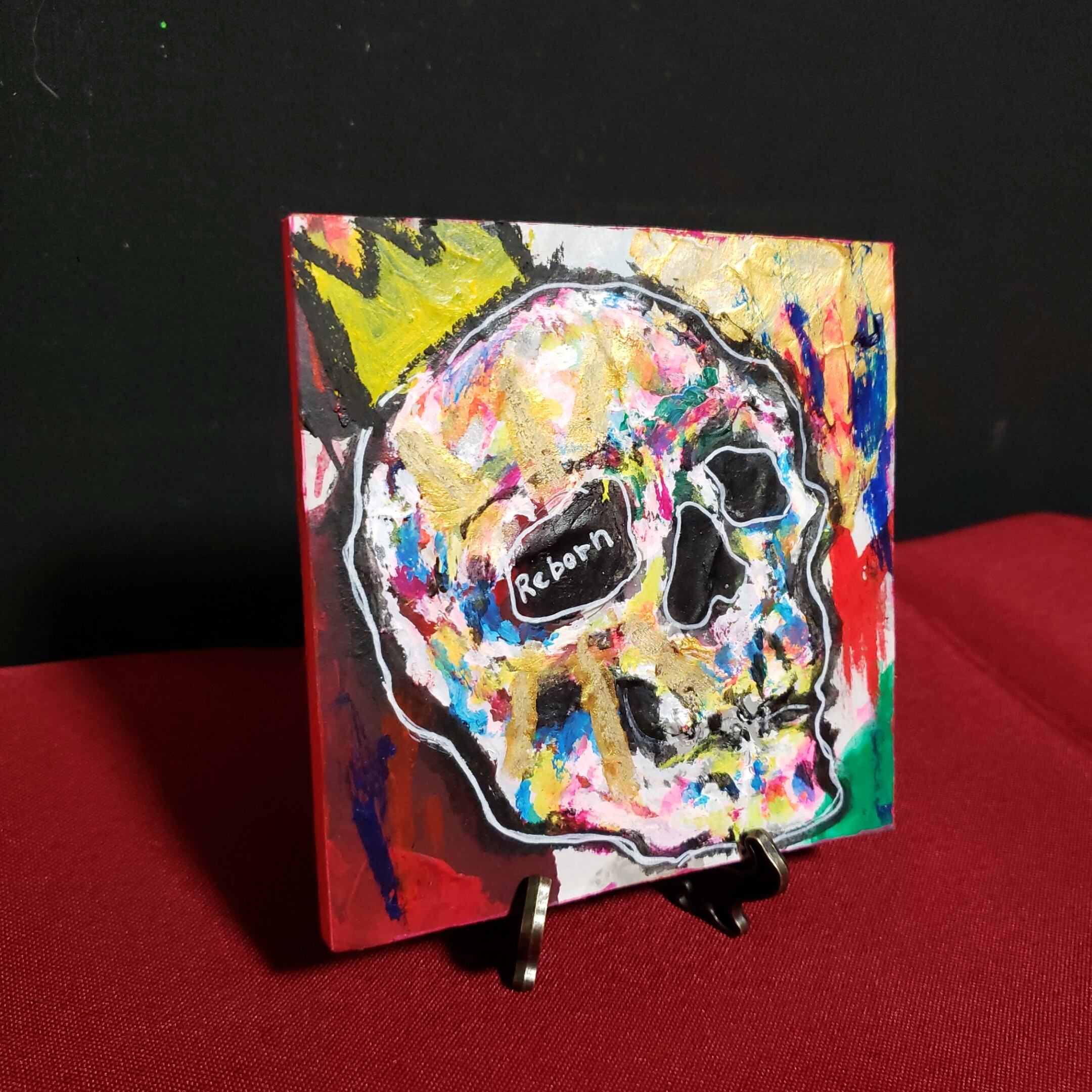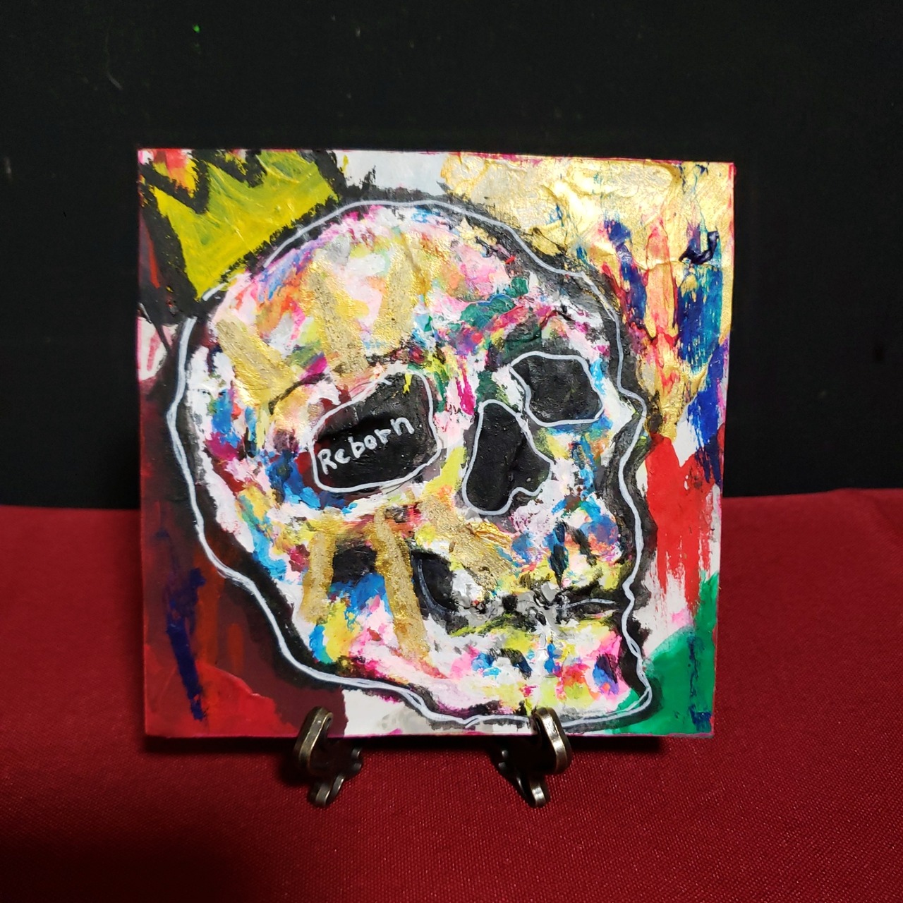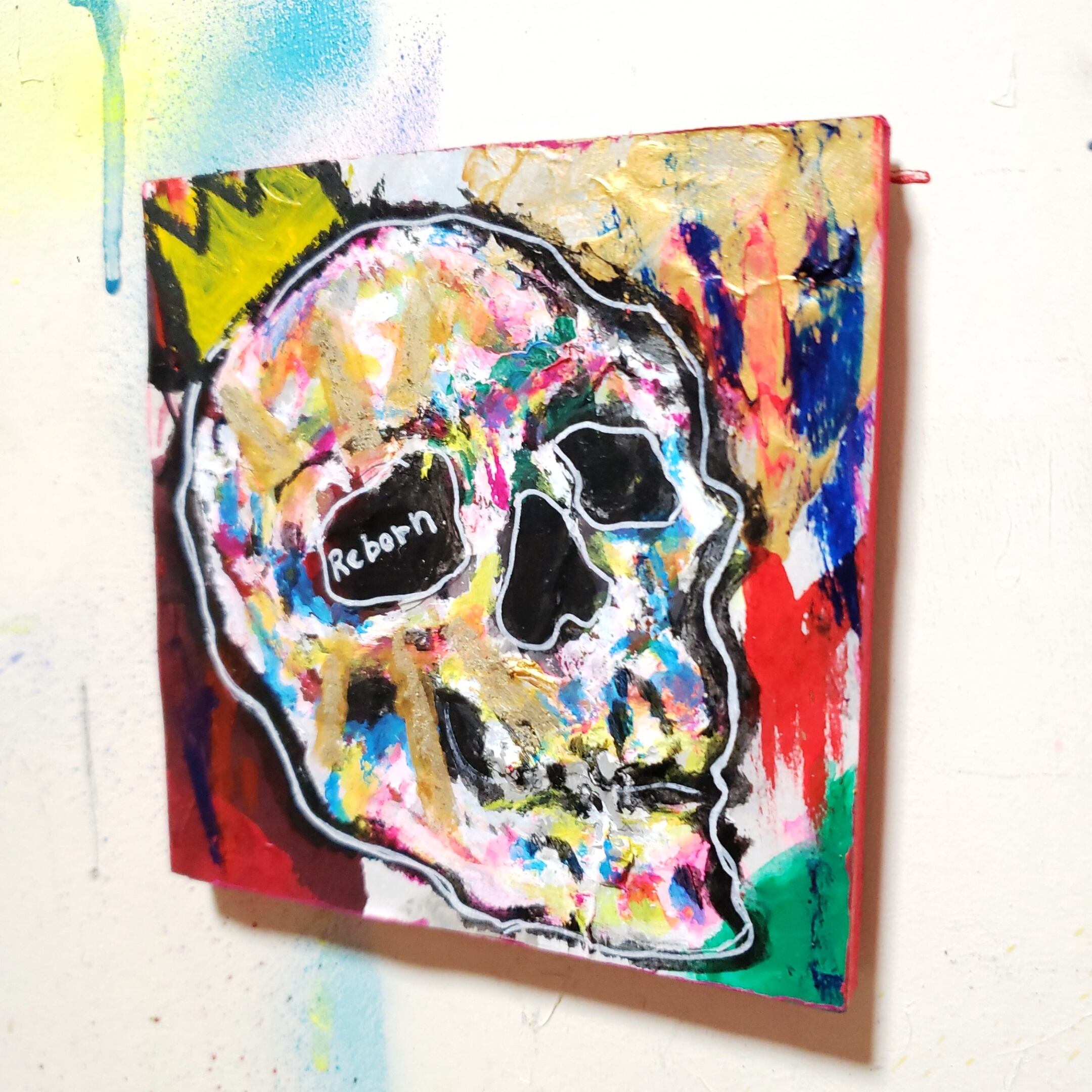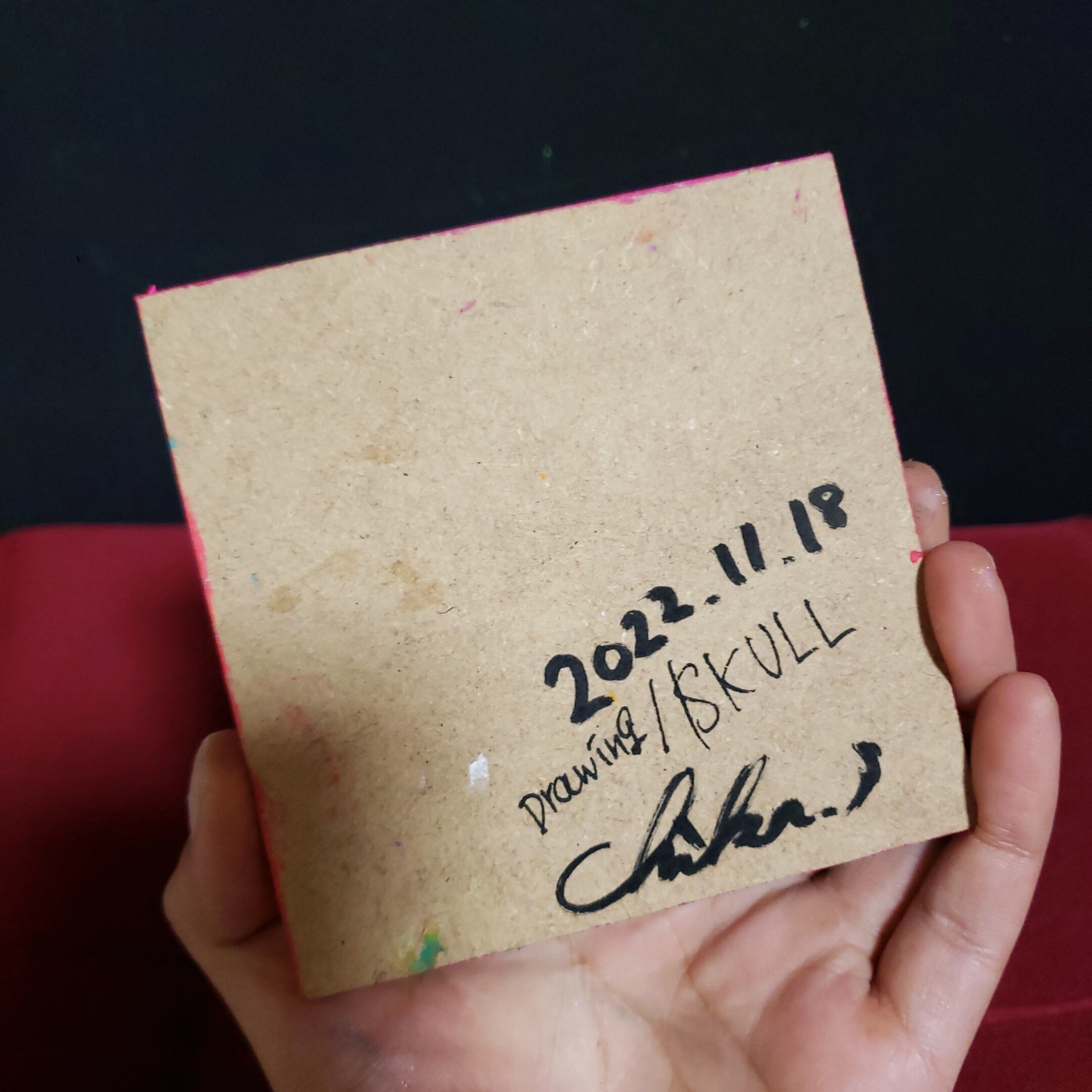 10cm角のMDF木材に、パレットの変わりに使ってる画用紙を張り描いたドローイング作品です。