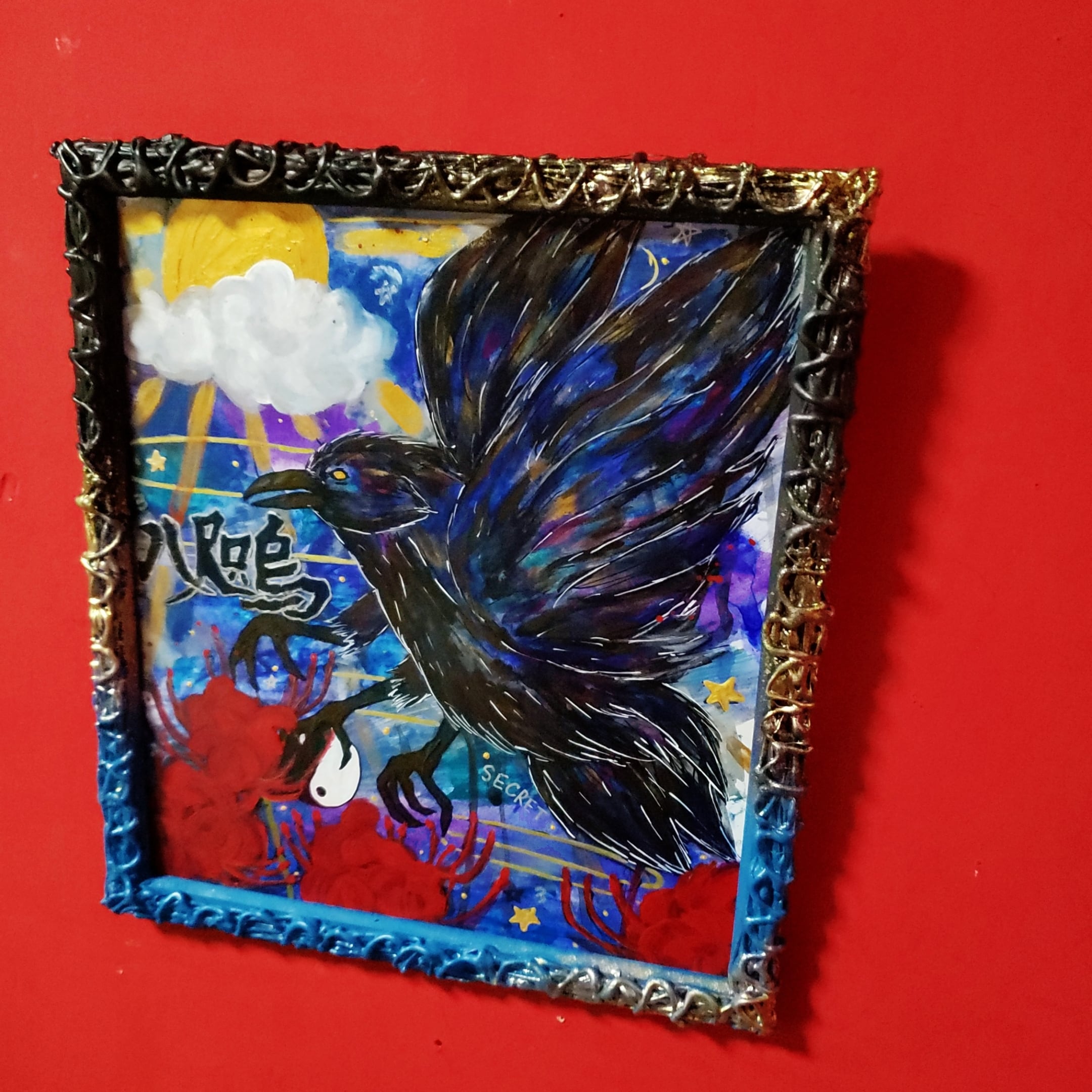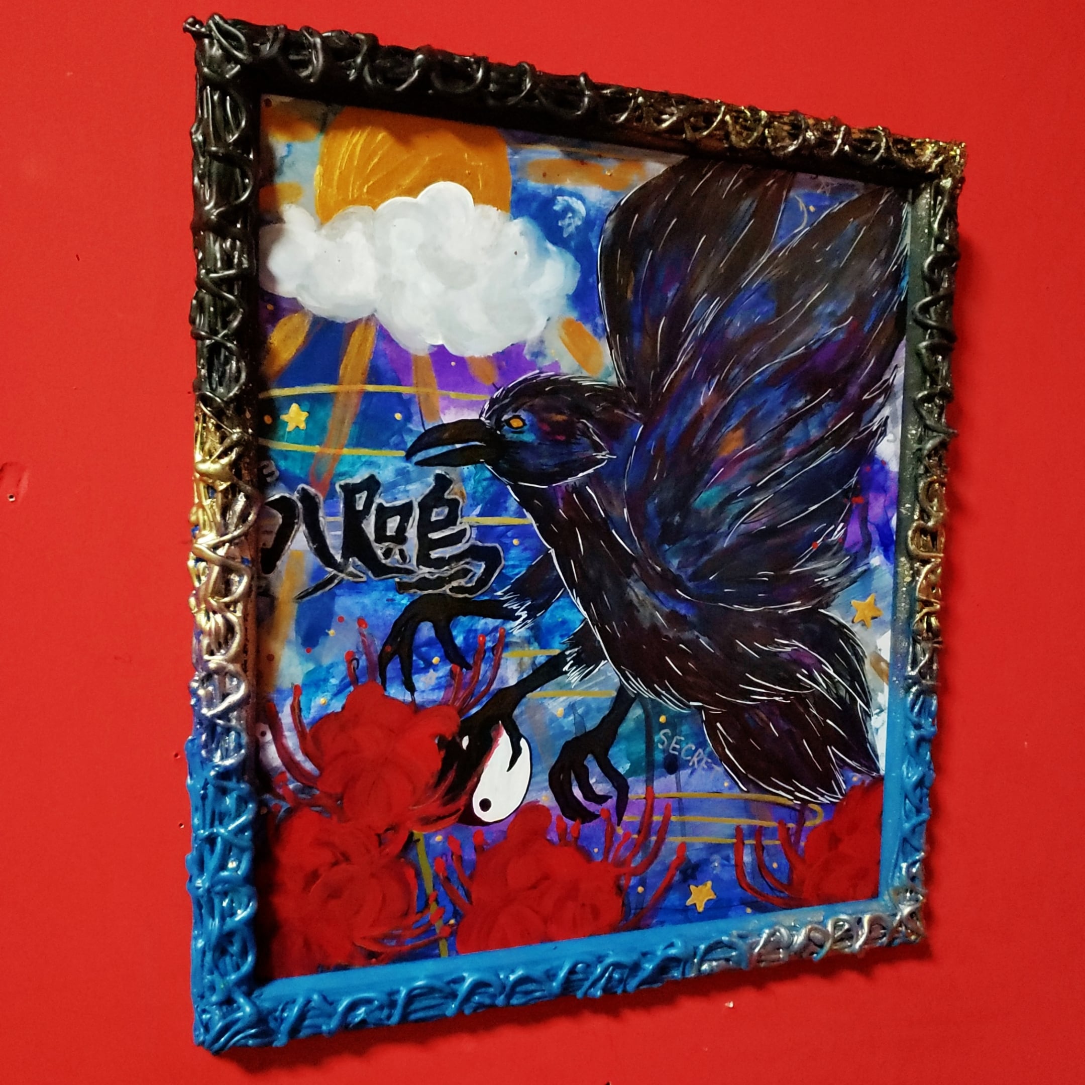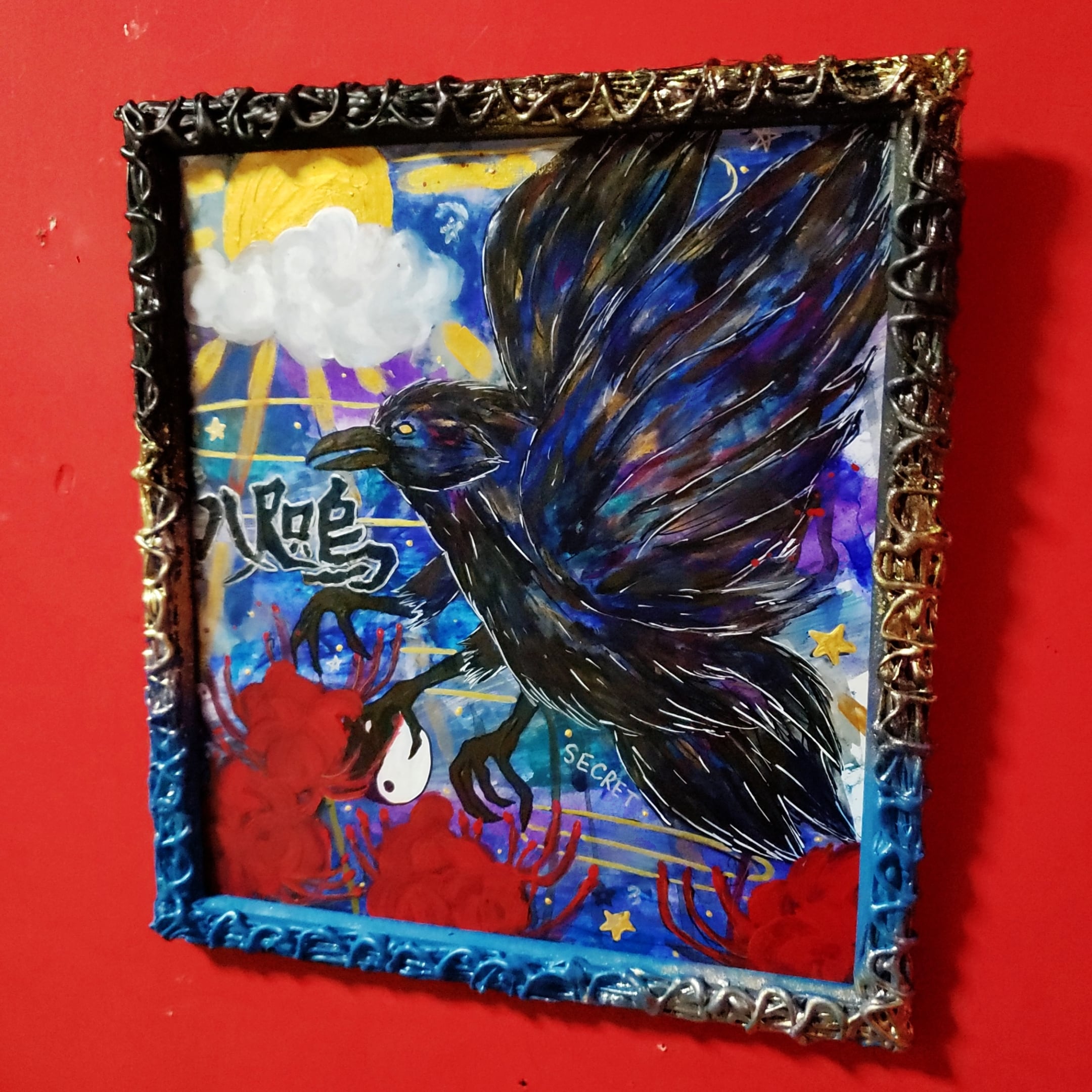 色紙に日本代表ユニフォームのモチーフにもなっている【八咫烏】を描いた作品です。