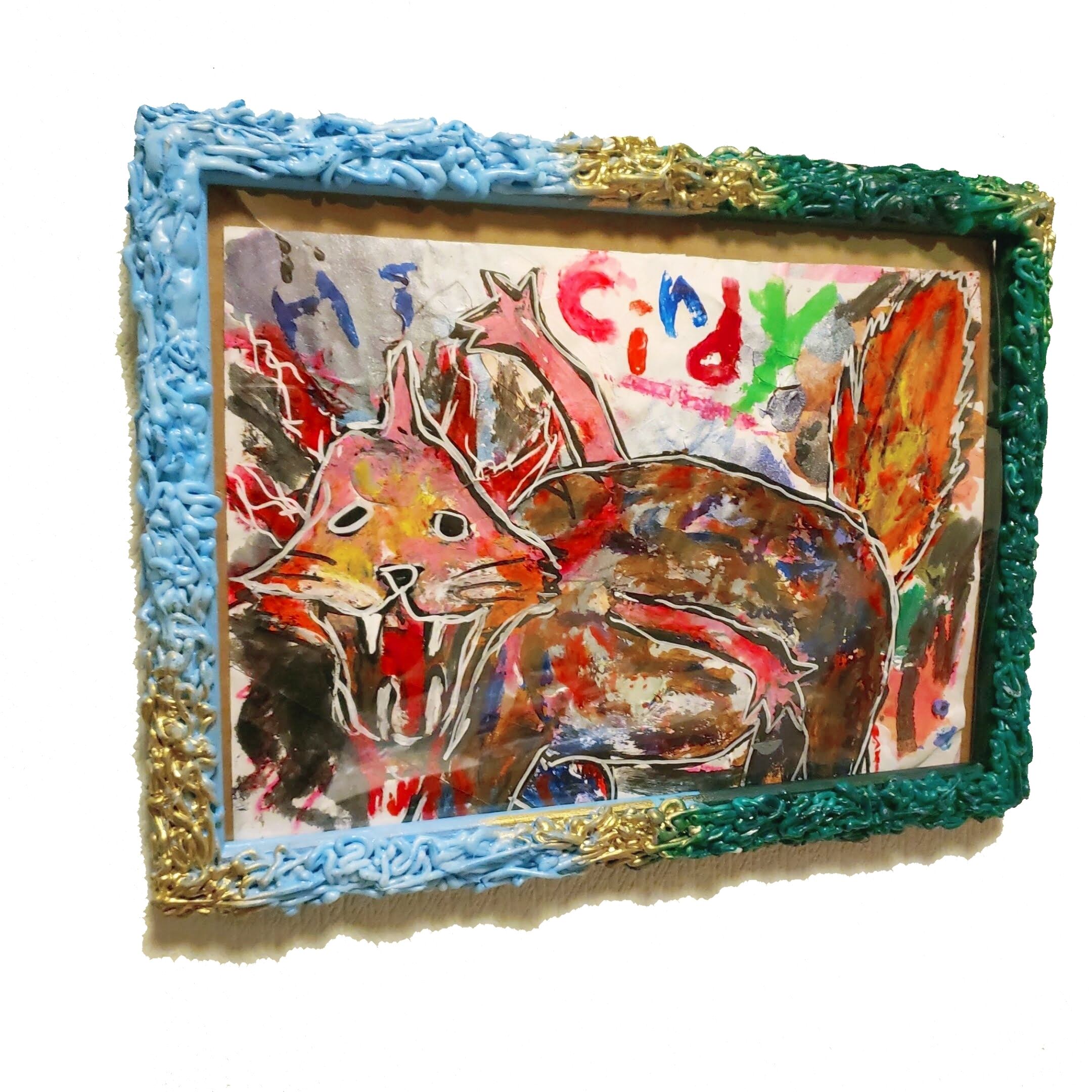 ウーパールーパー、カバ、きつねが混ざったオリジナルモンスター、名前はシンディー(笑)