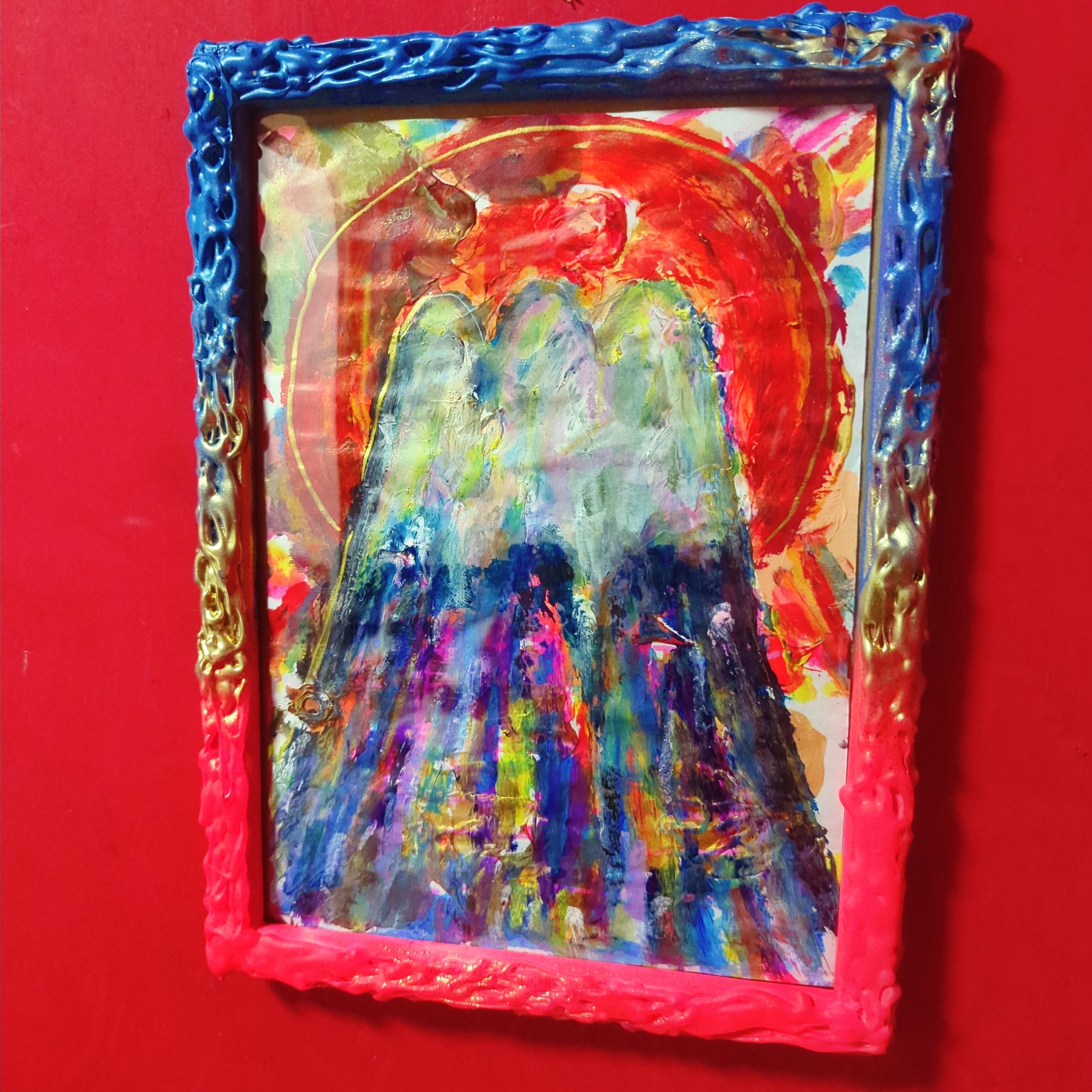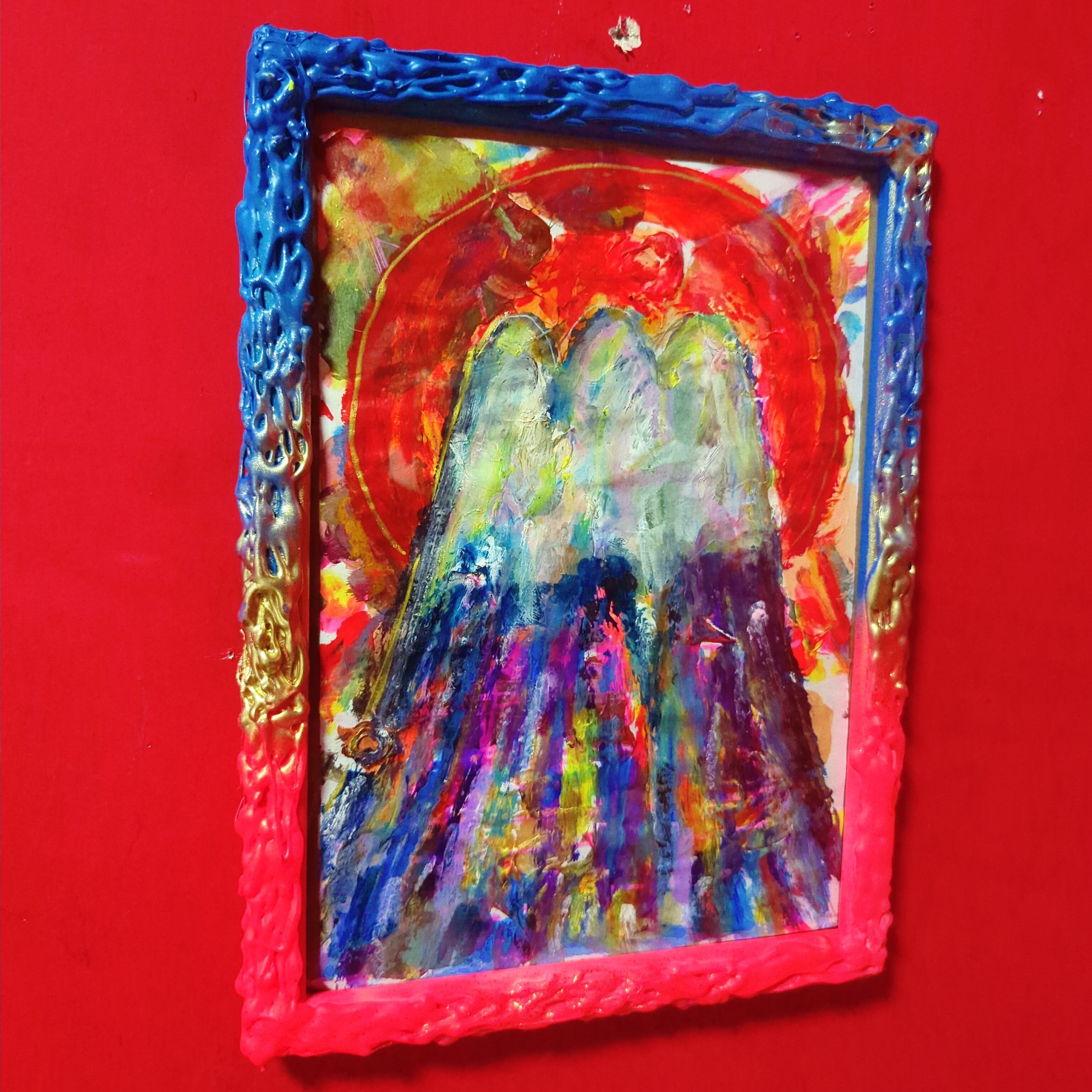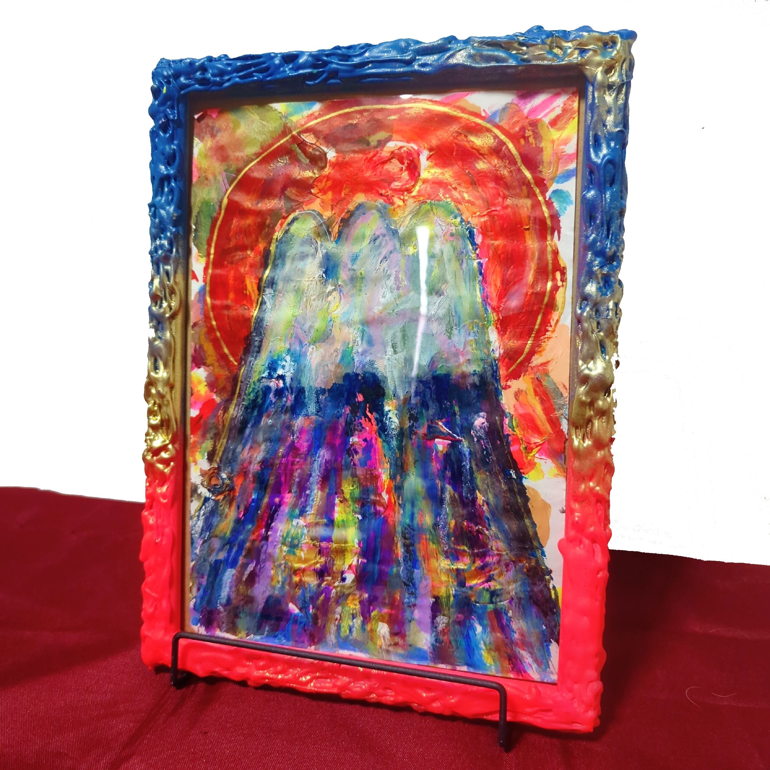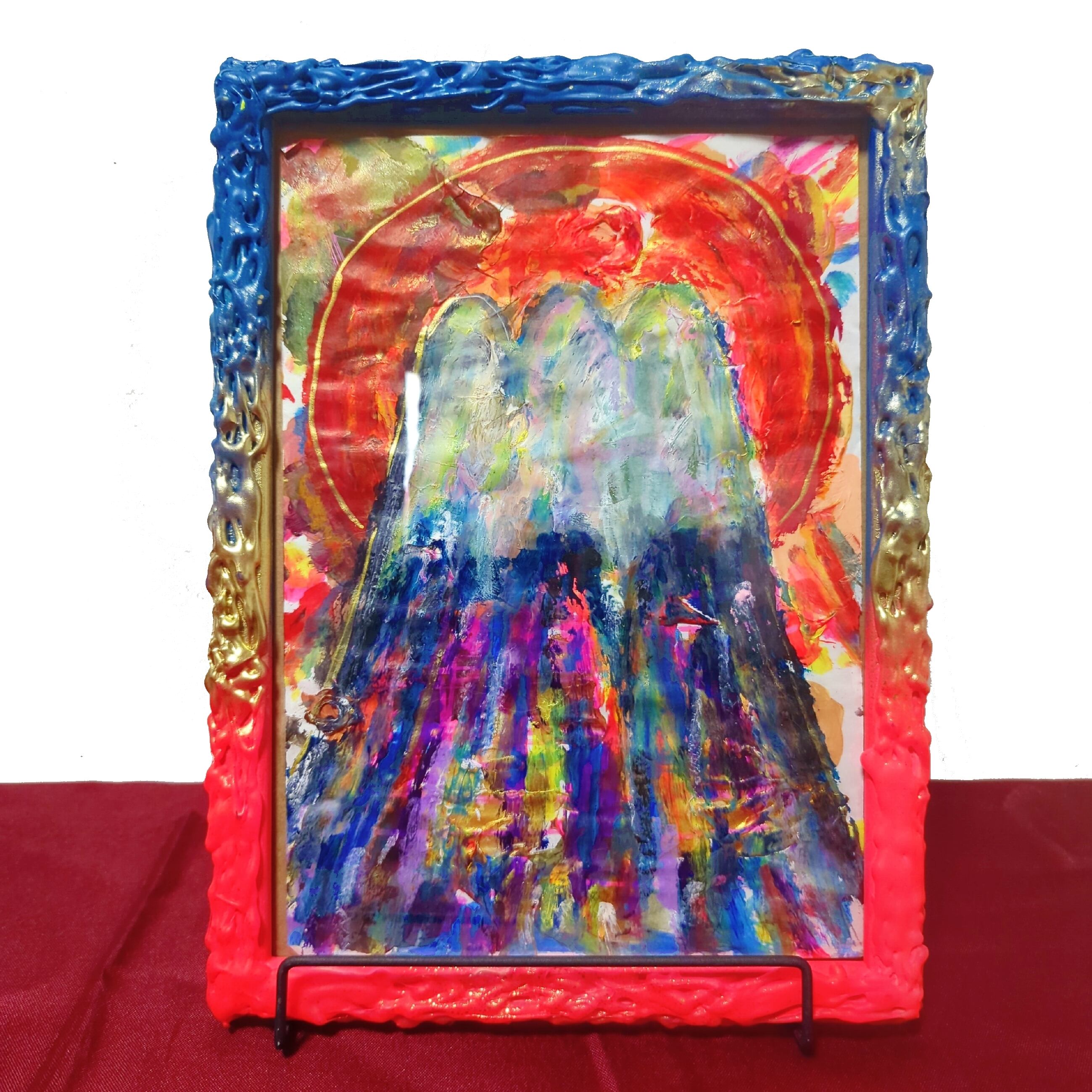 【2023年6月:額縁入りドローイング作品】富士山と太陽