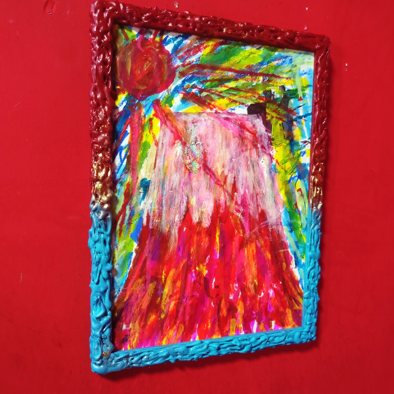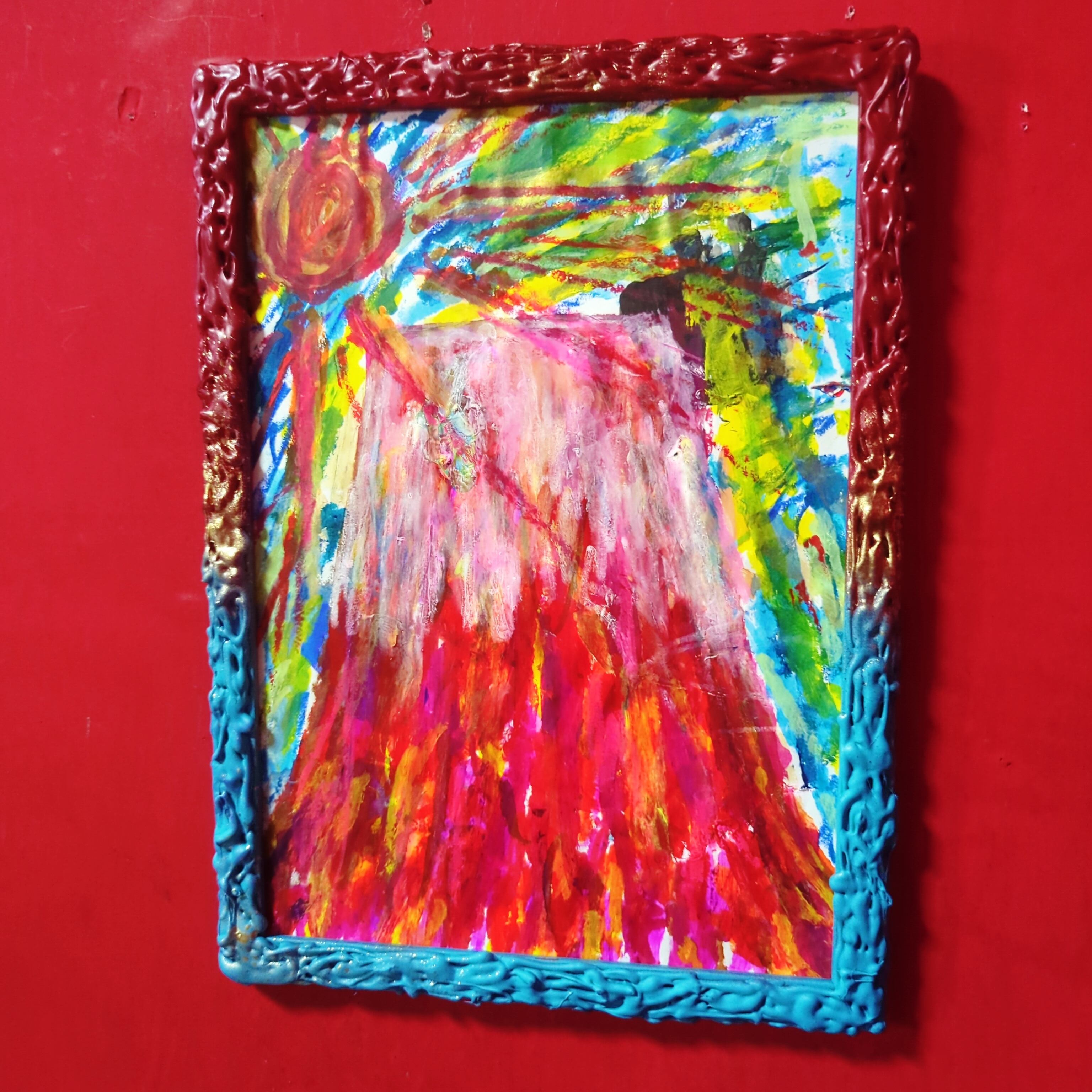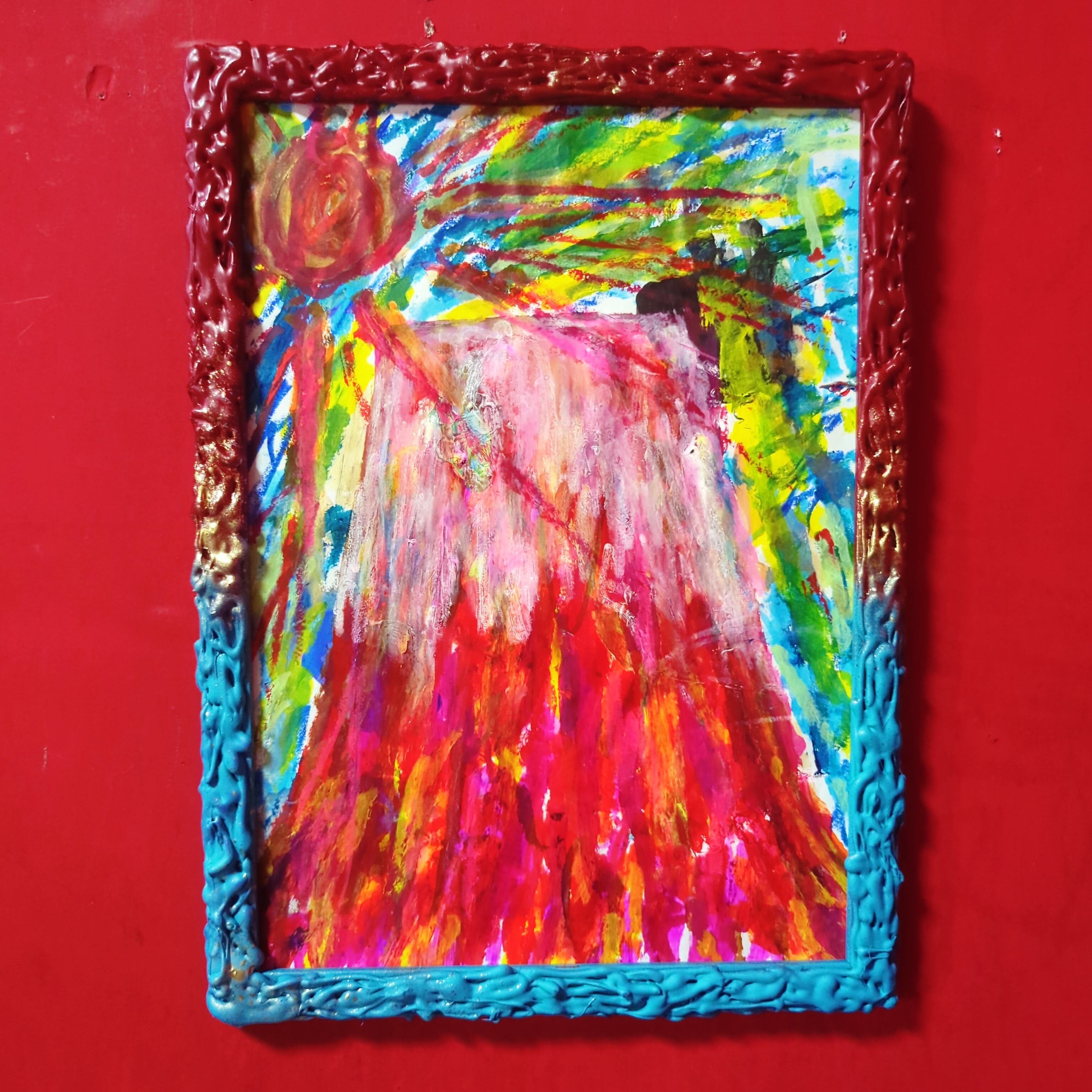 【2023年7月:額縁入りドローイング作品】赤富士と太陽