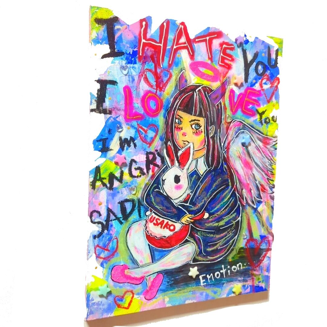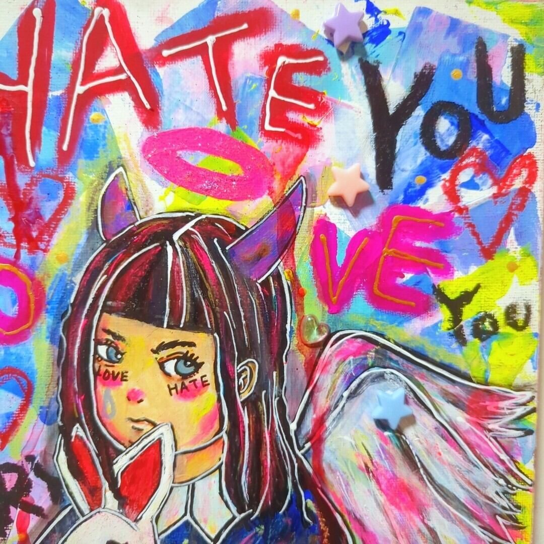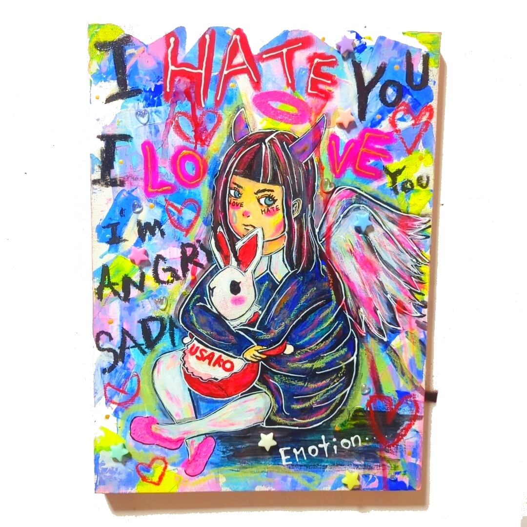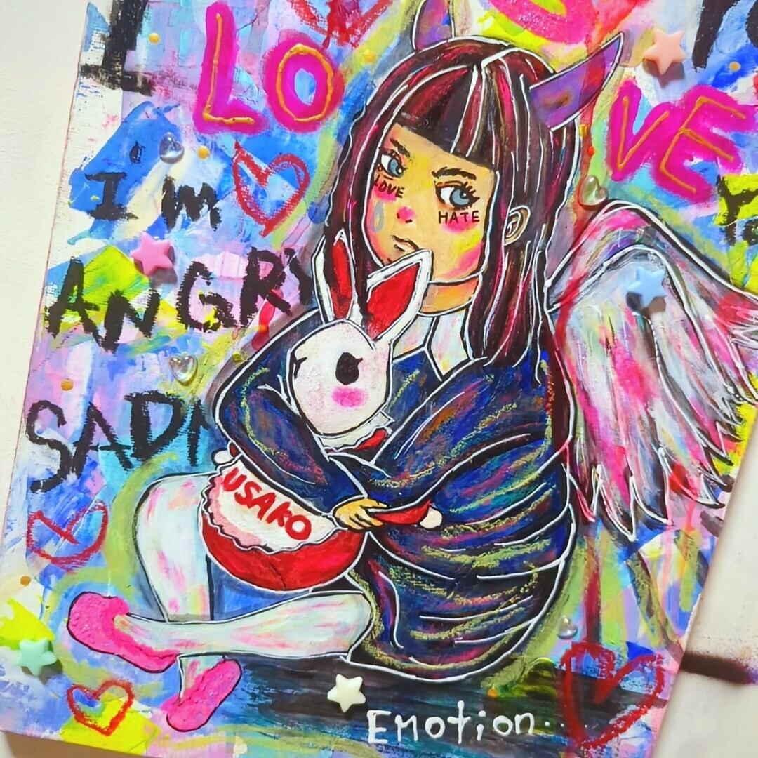 技法:アクリル絵の具、オイルパステル、ポスカ、ラメ、ビーズ