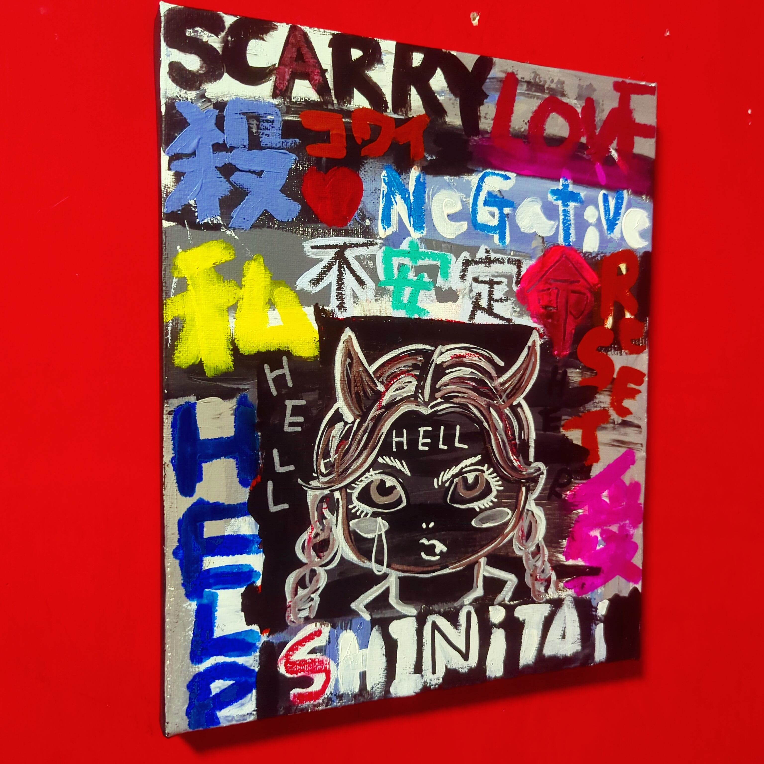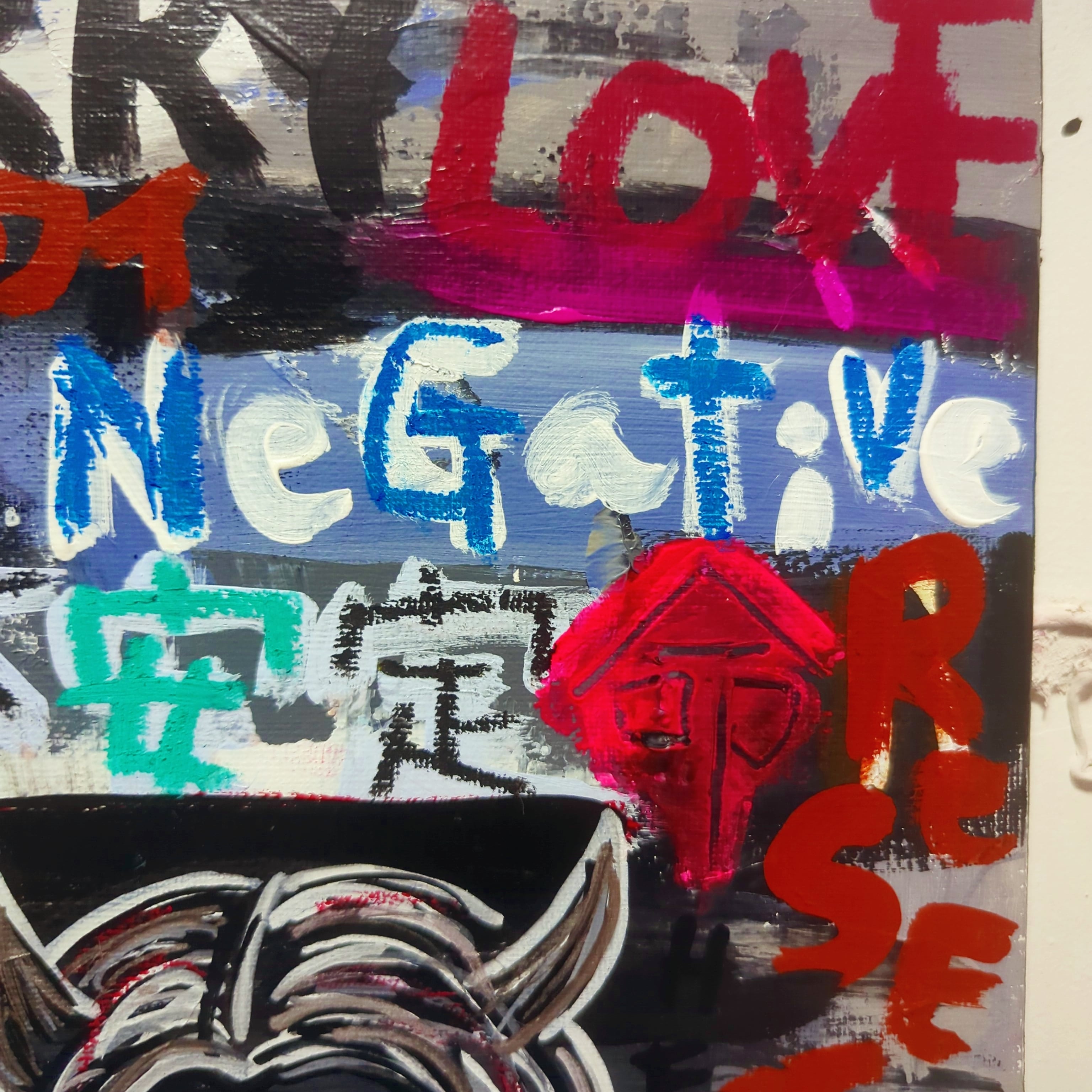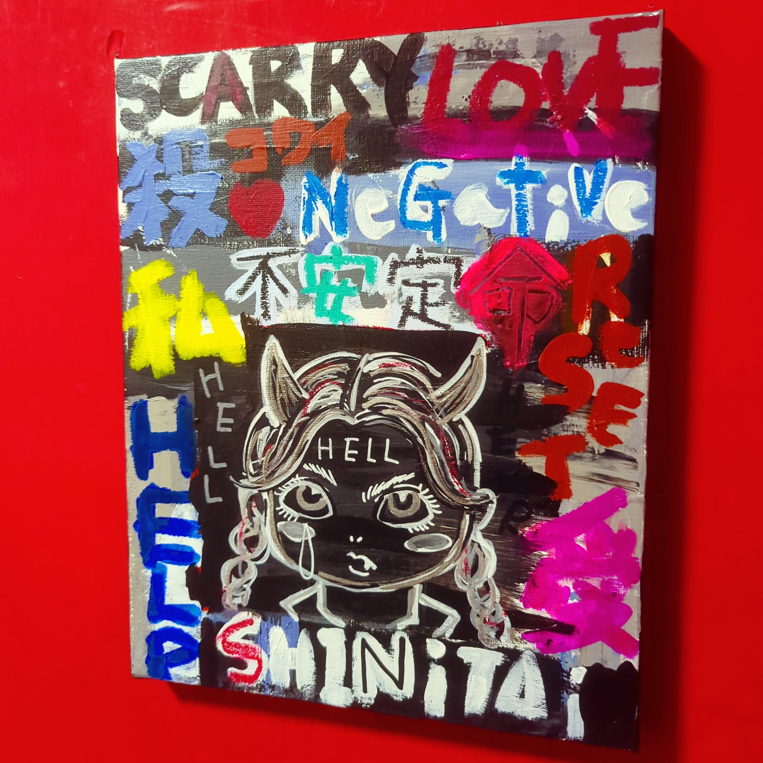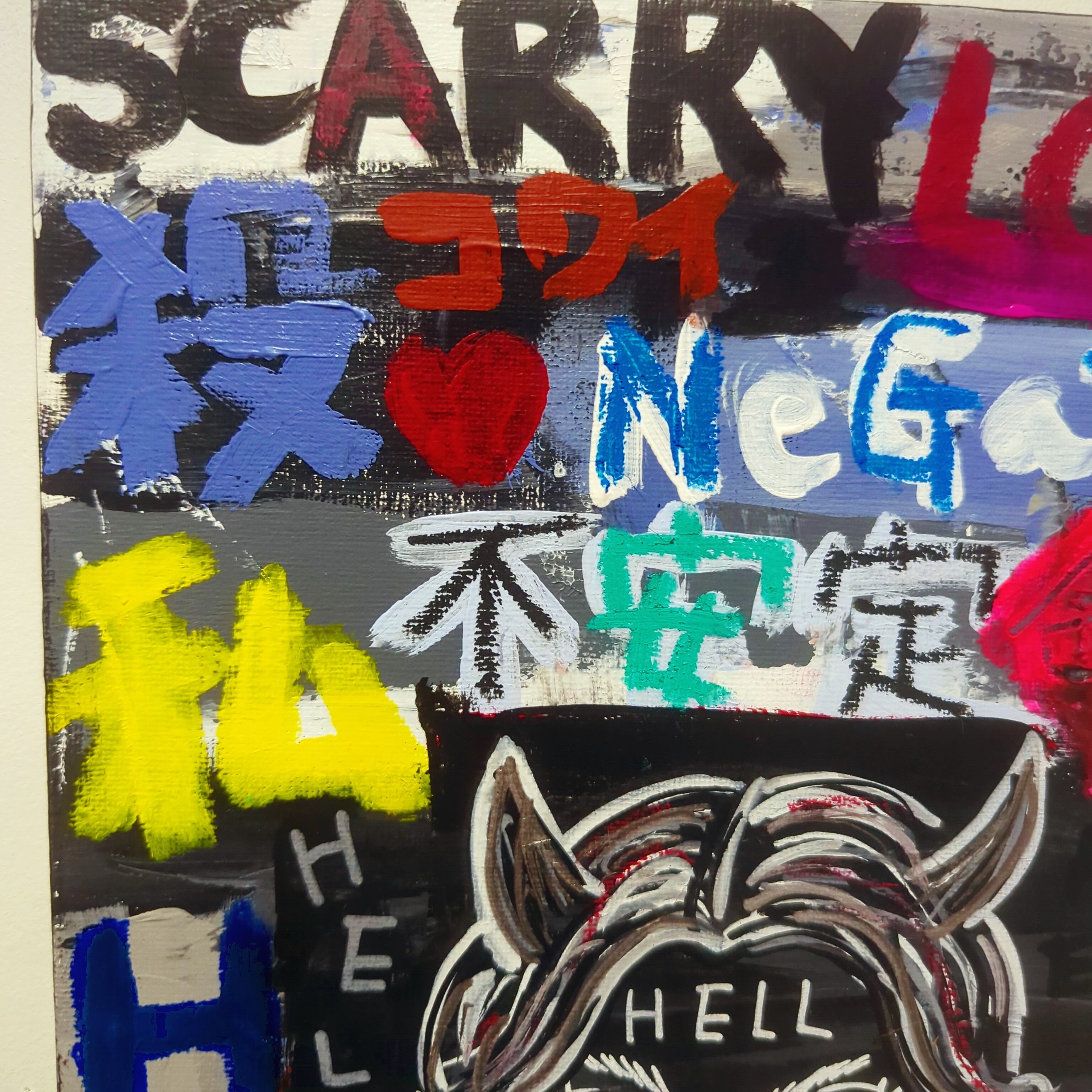 タイトル通り私自身の内側から湧き出る言葉をキャンバスに爆発させた汚い言葉混じりな皮肉アート(゜∀゜)