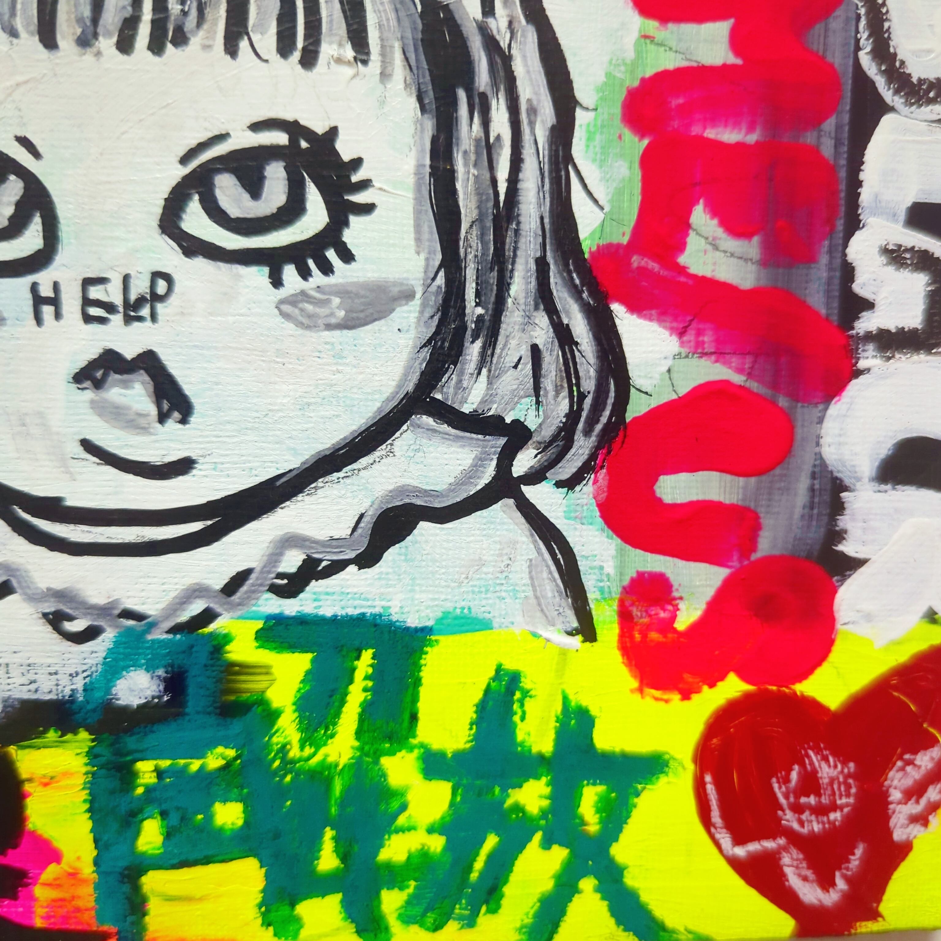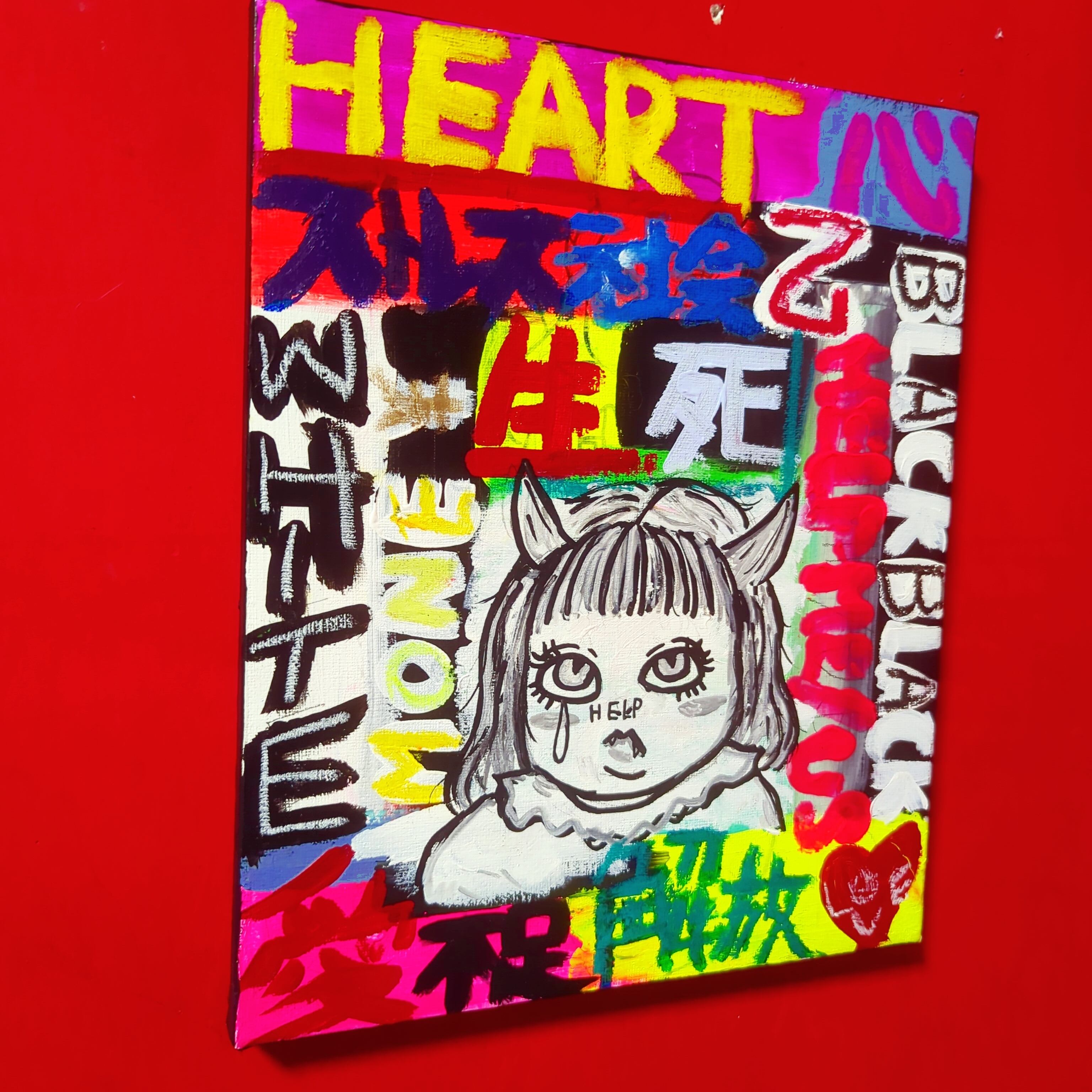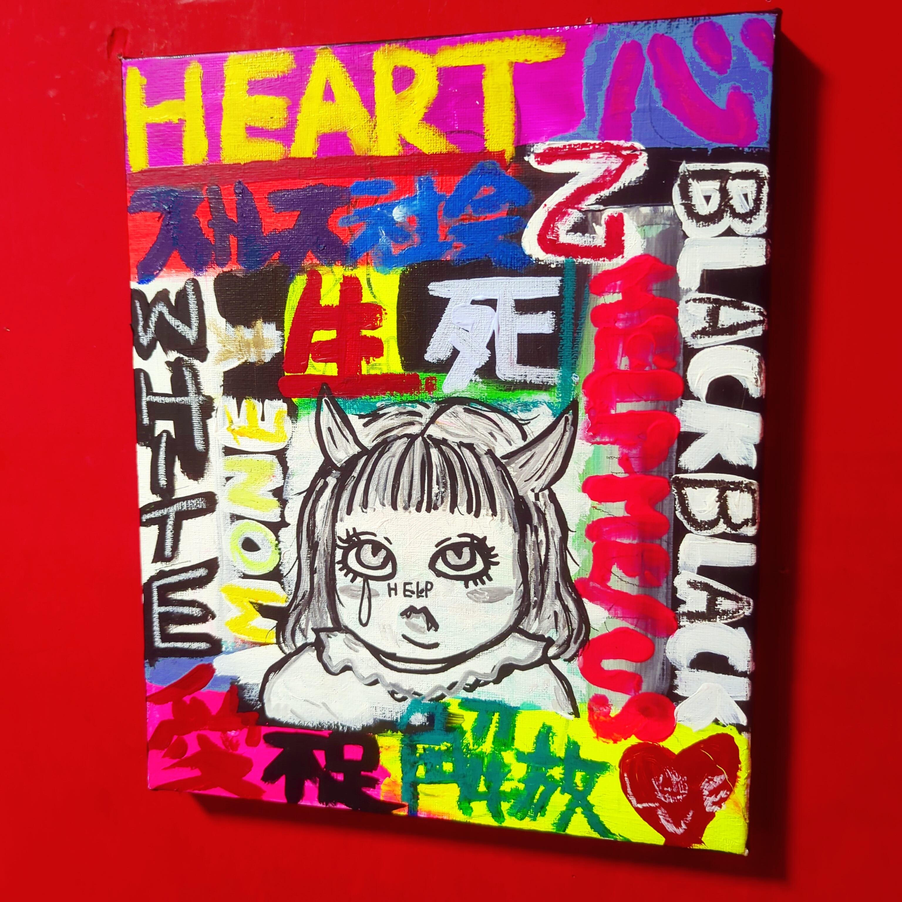 タイトル通り私自身の内側から湧き出る言葉をキャンバスに爆発させた汚い言葉混じりな皮肉アート(゜∀゜)