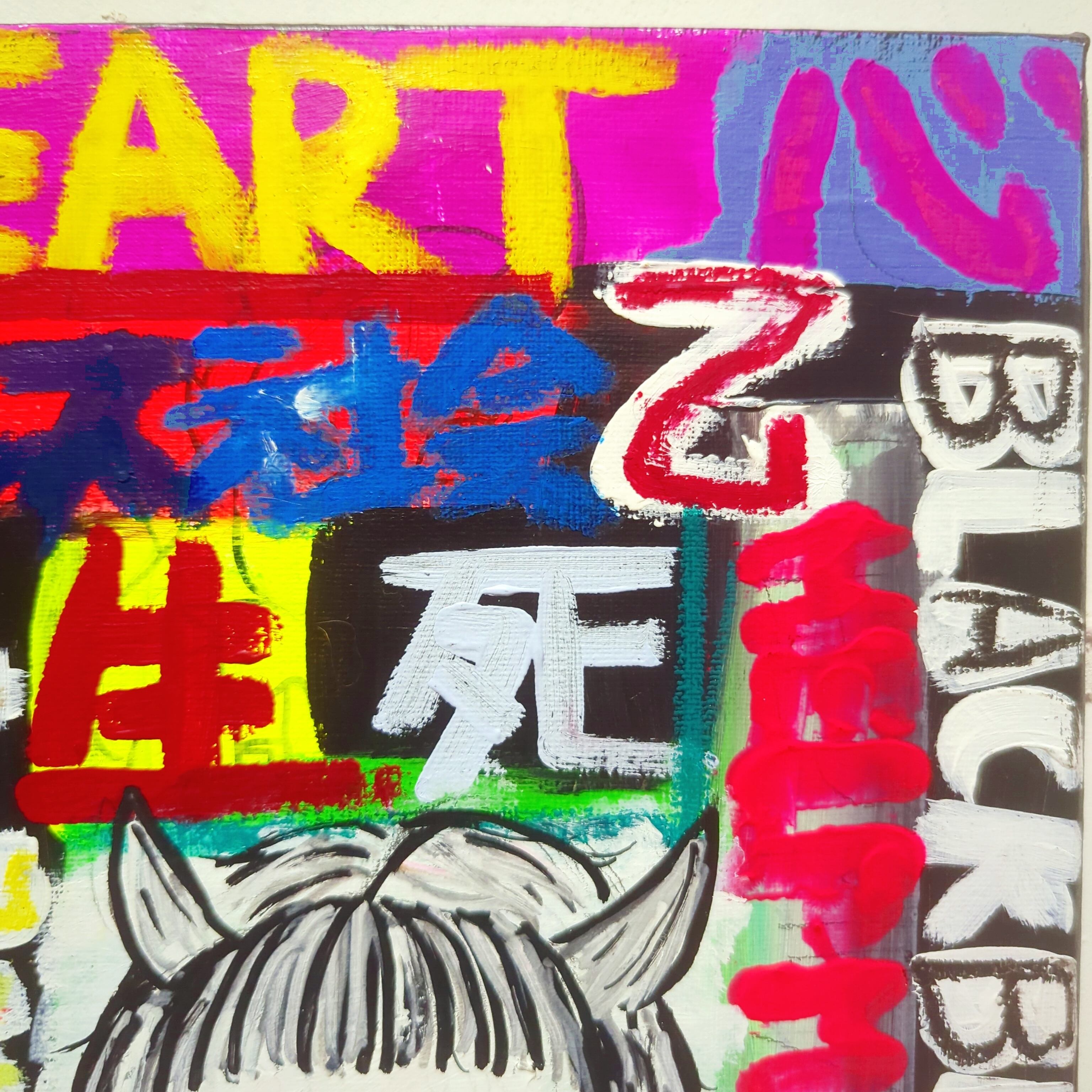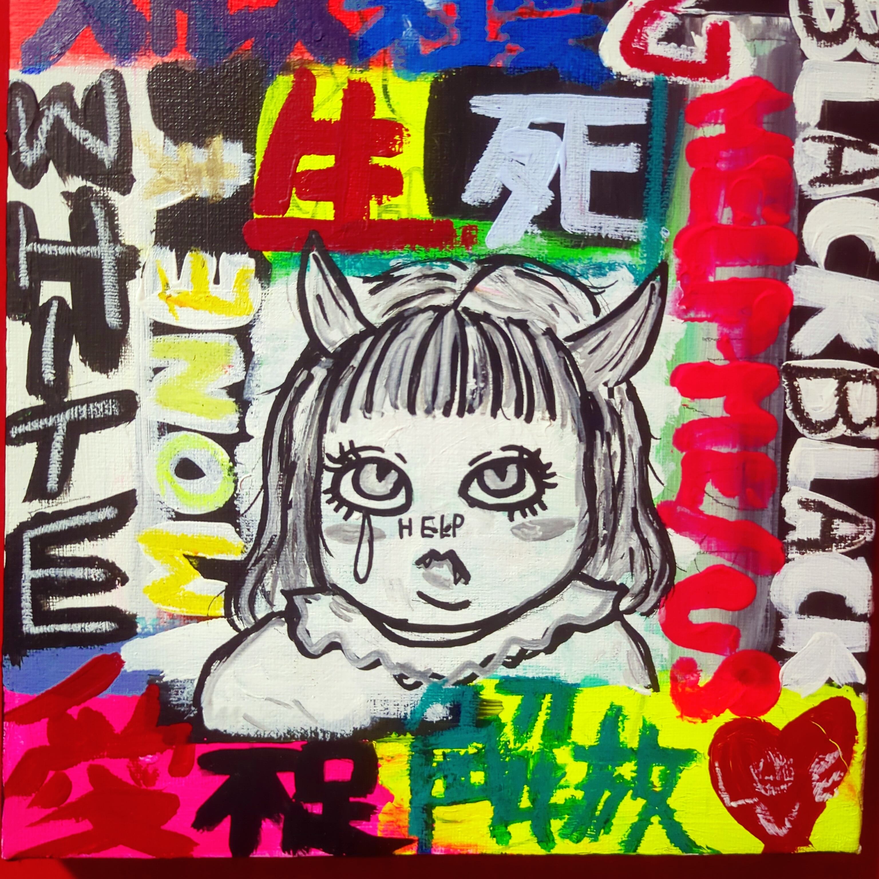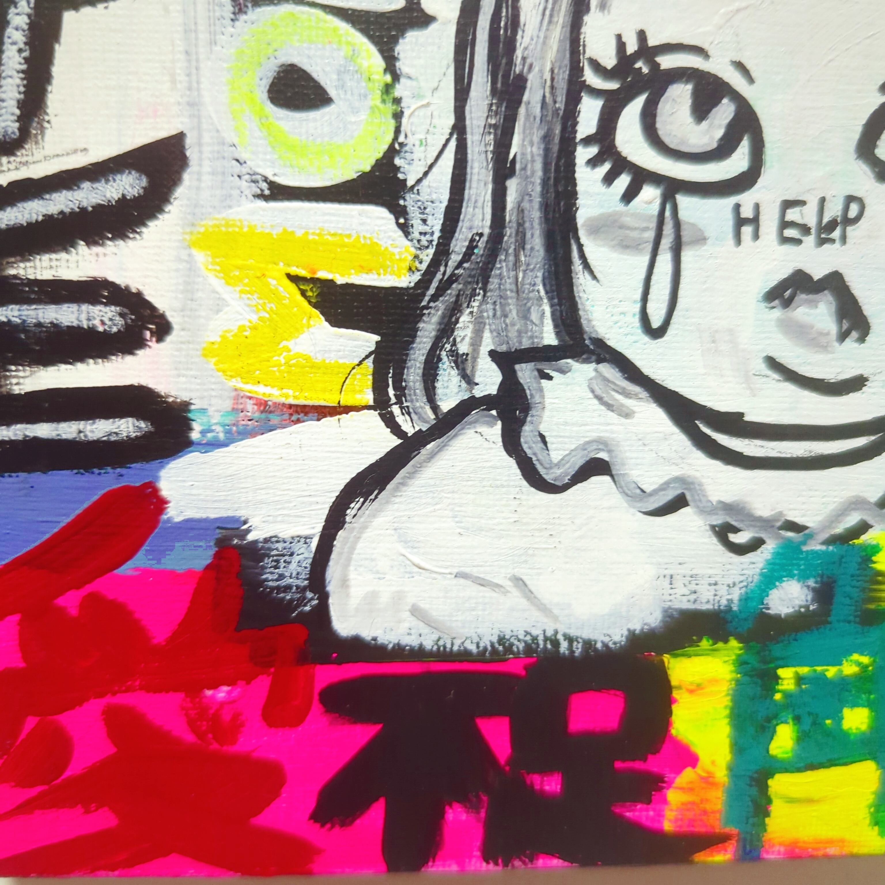 タイトル通り私自身の内側から湧き出る言葉をキャンバスに爆発させた汚い言葉混じりな皮肉アート(゜∀゜)