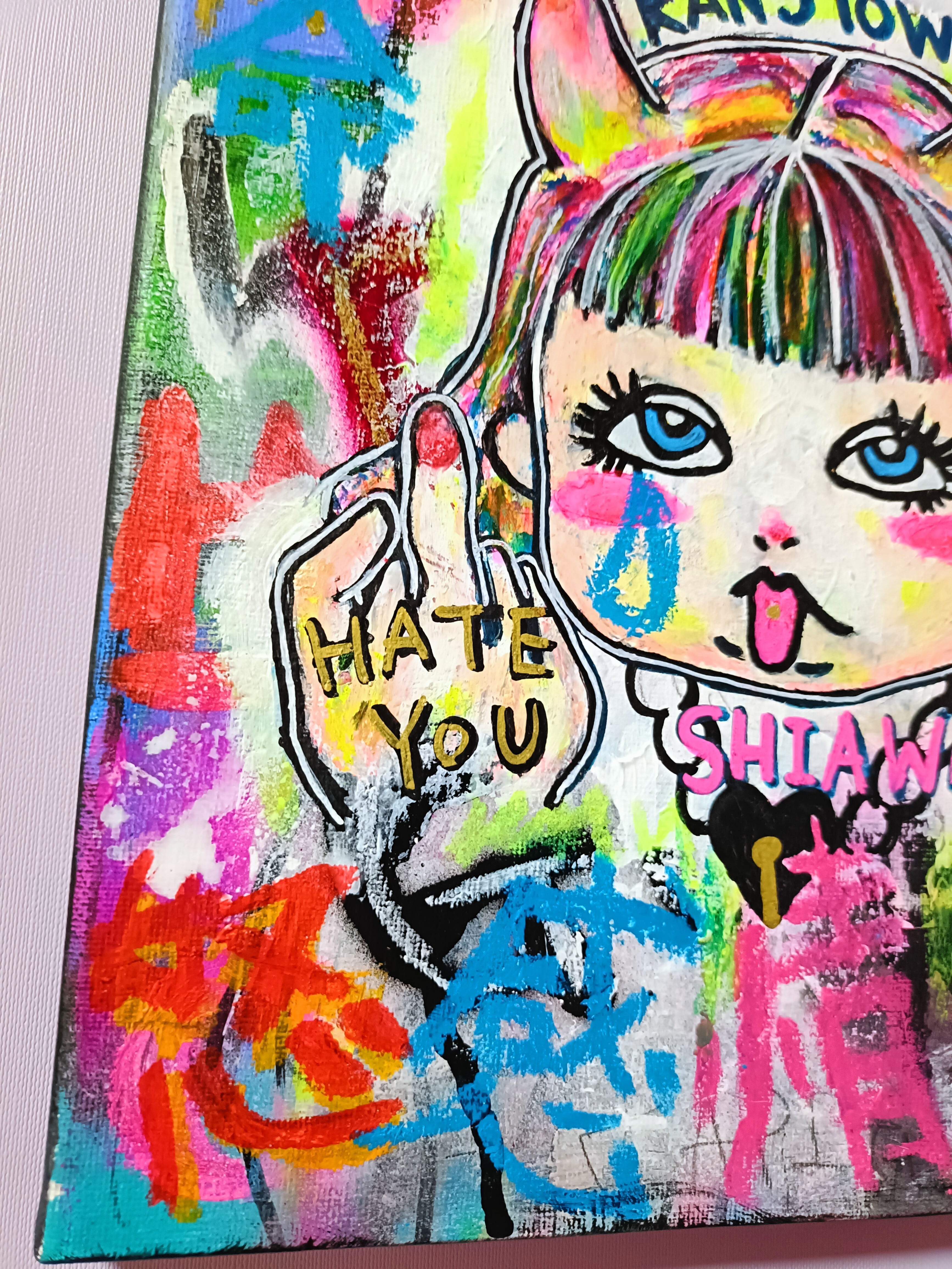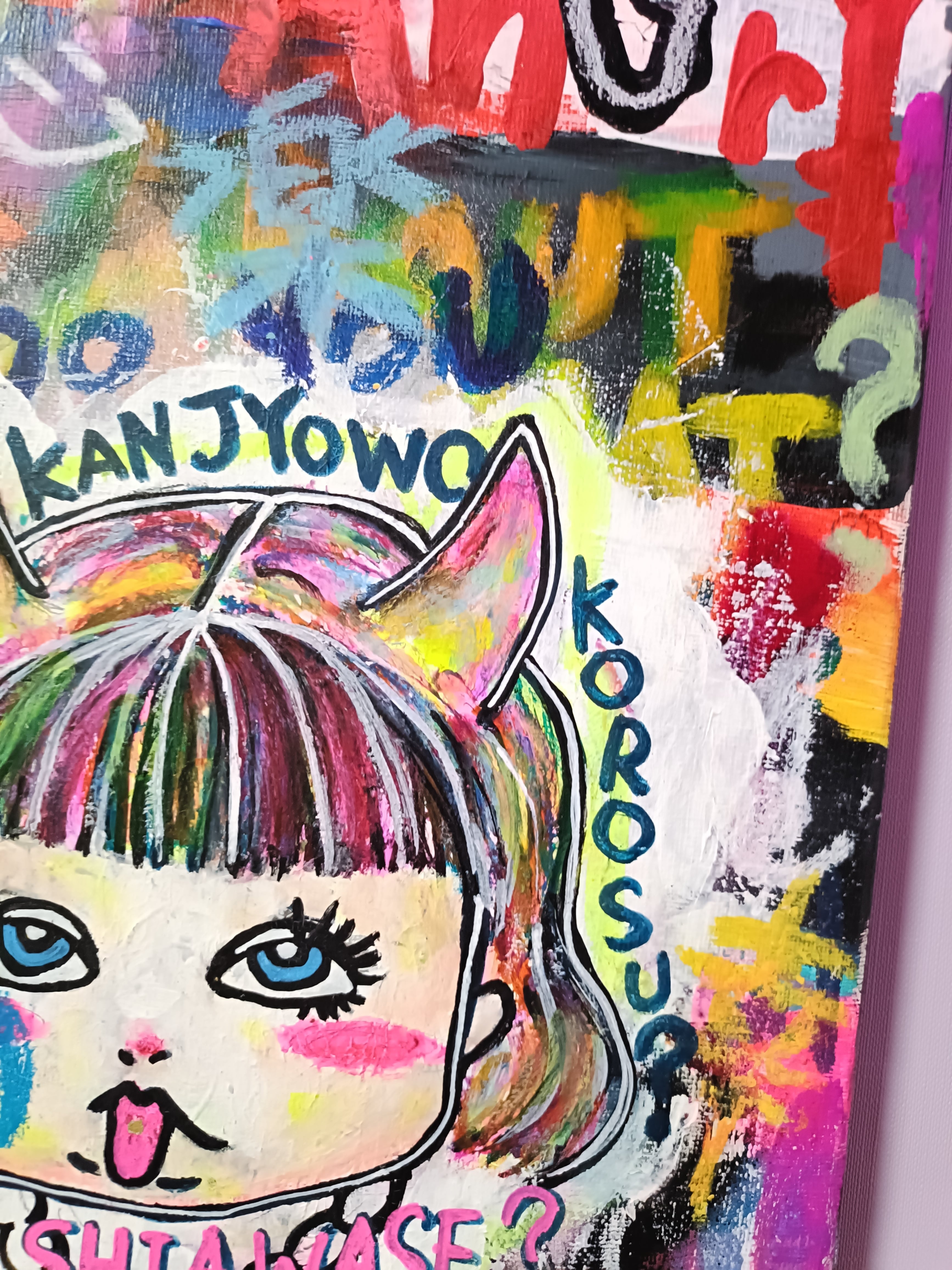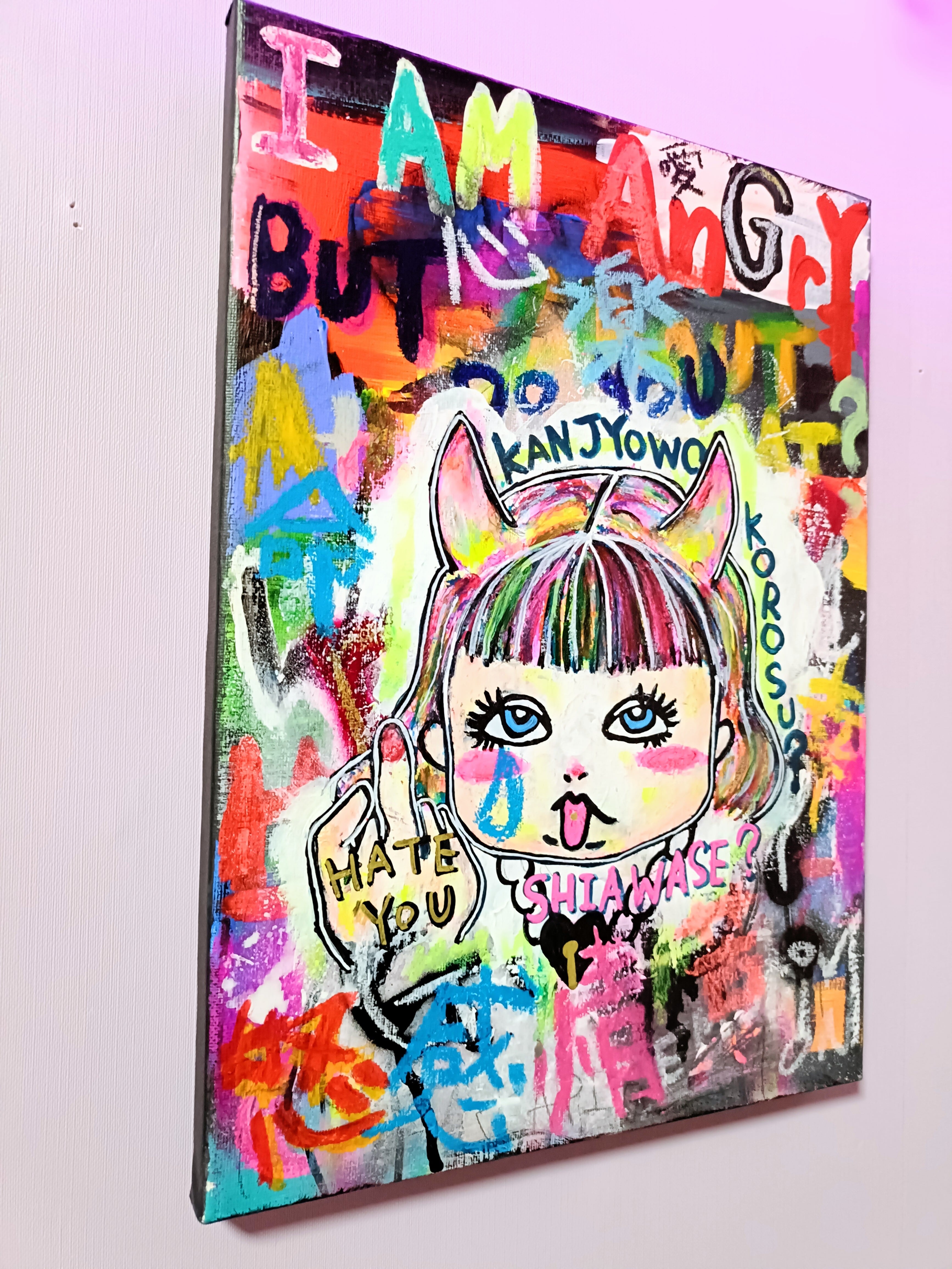タイトル通り私自身の内側から湧き出る言葉をキャンバスに爆発させた汚い言葉混じりな皮肉アート(゜∀゜)
