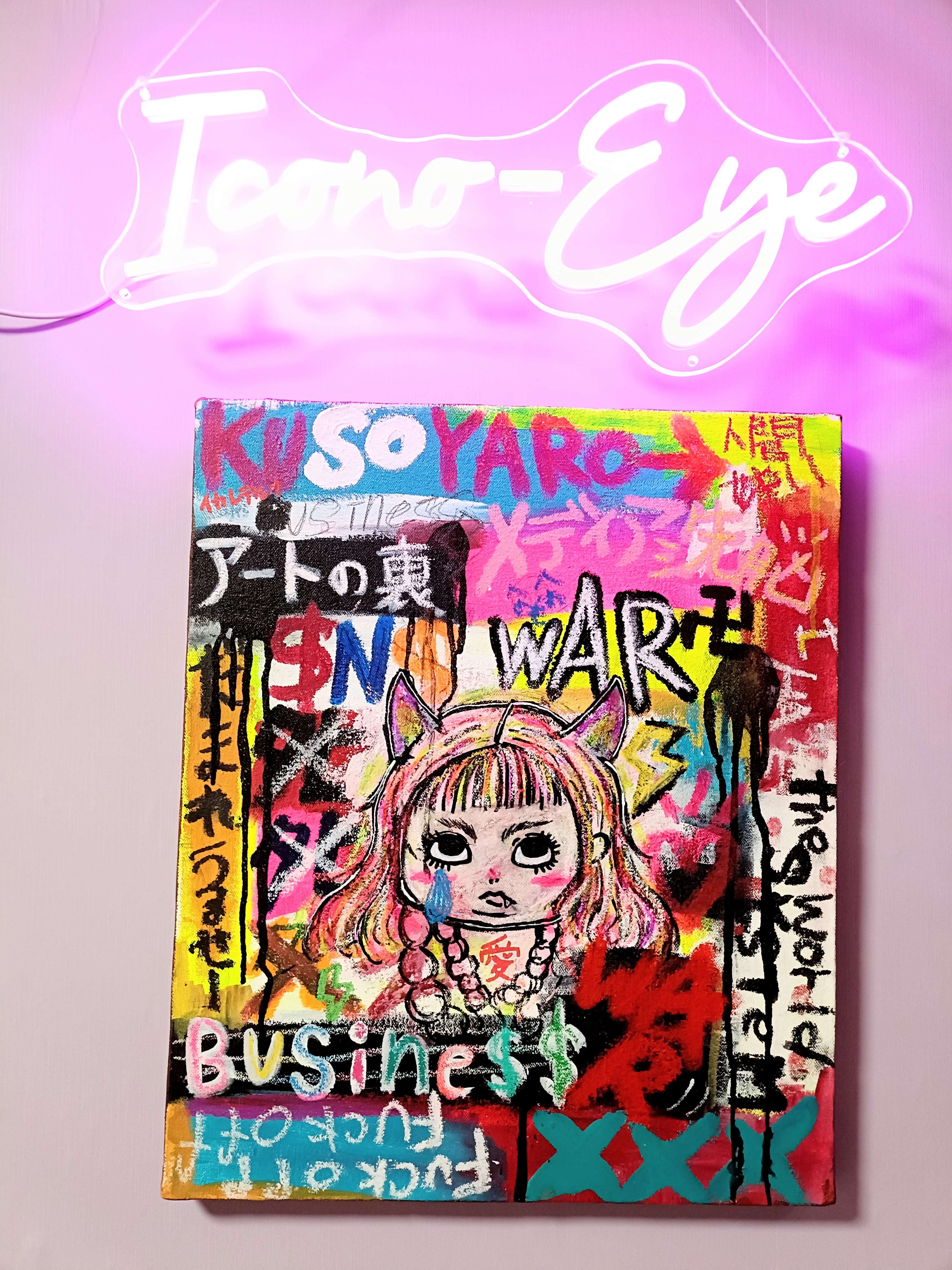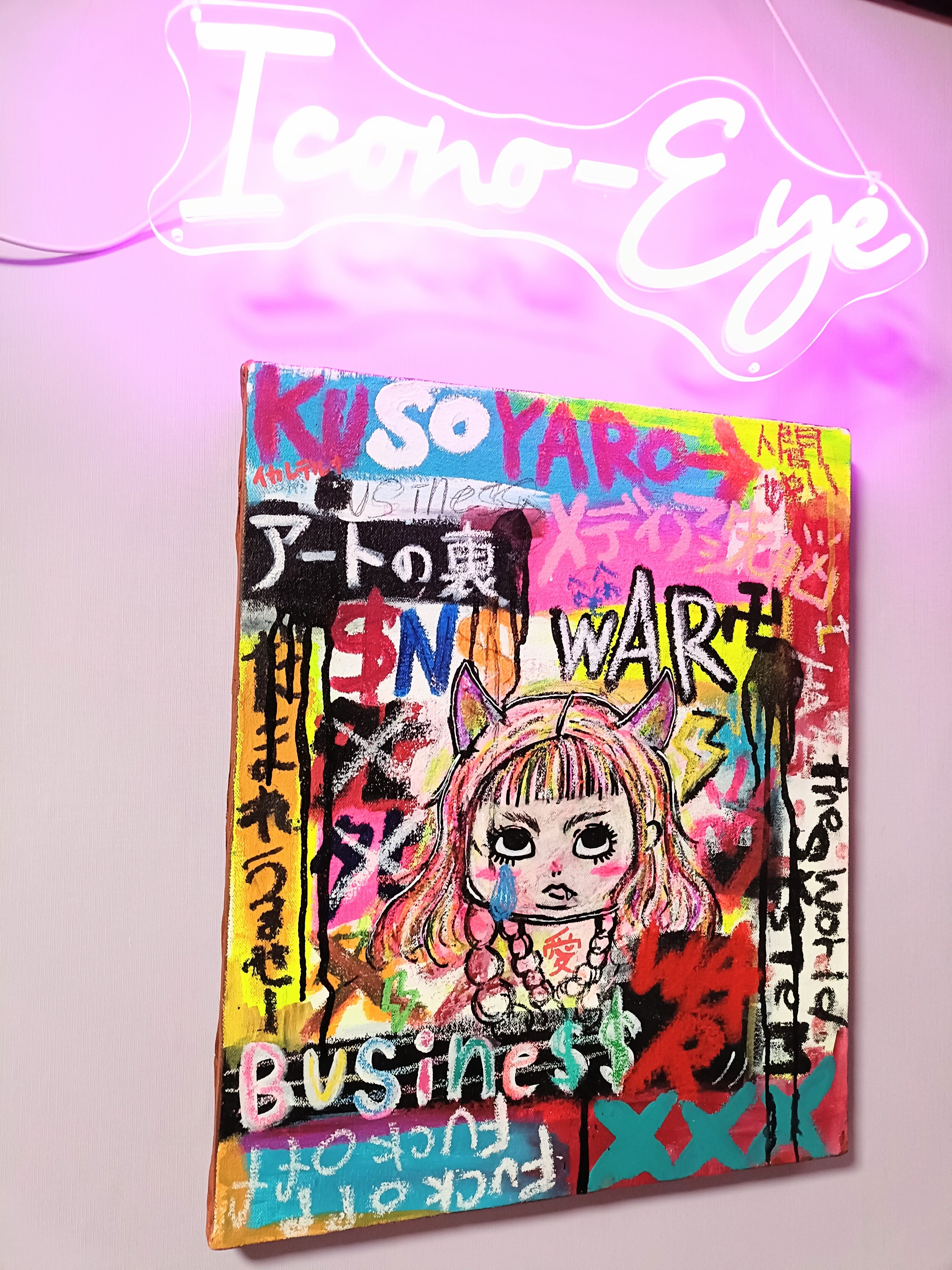 タイトル通り私自身の内側から湧き出る言葉をキャンバスに爆発させた汚い言葉混じりな皮肉アート(゚∀゚)アヒャ