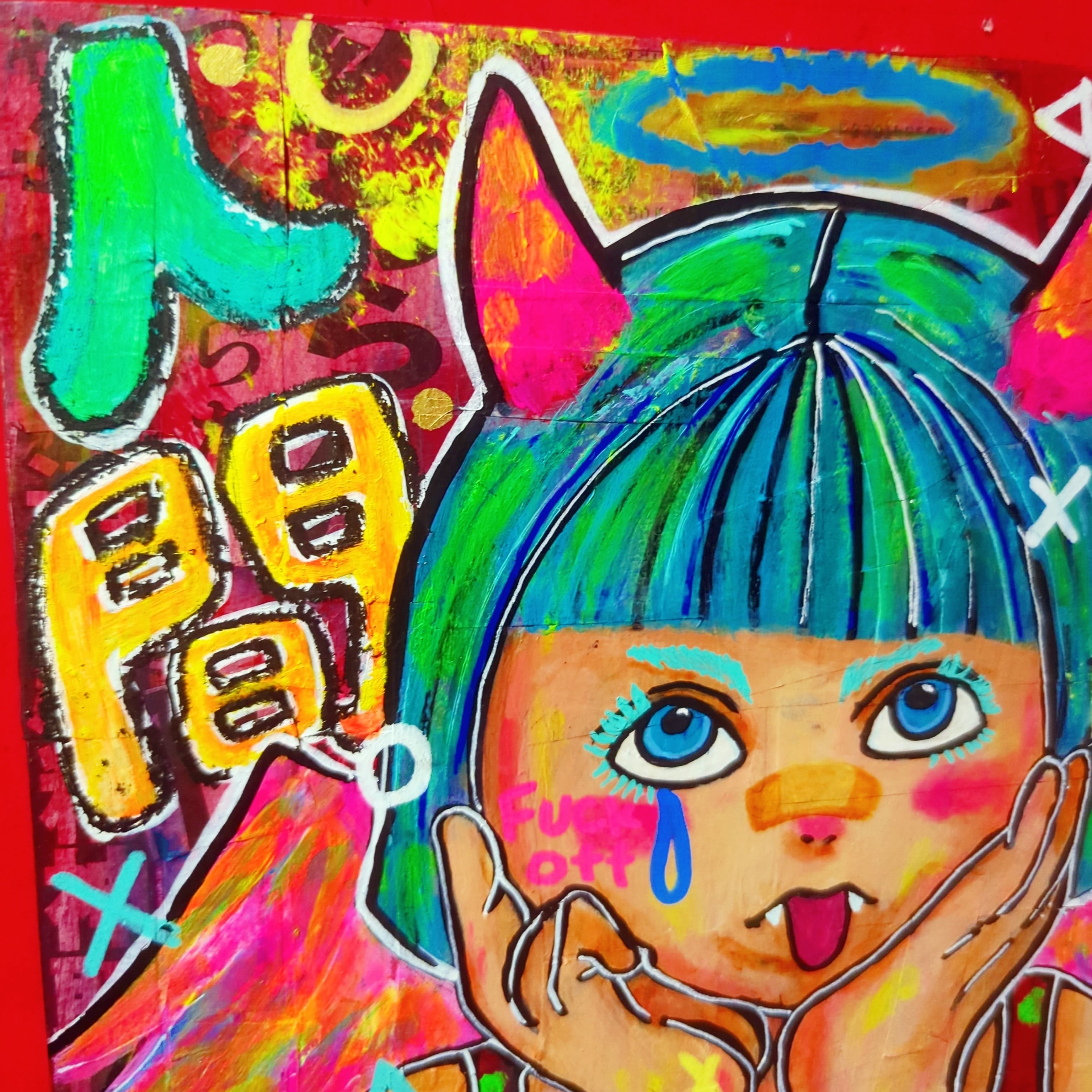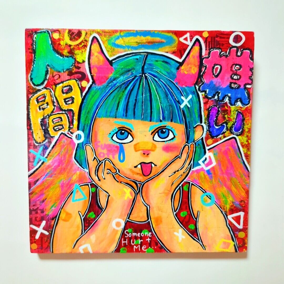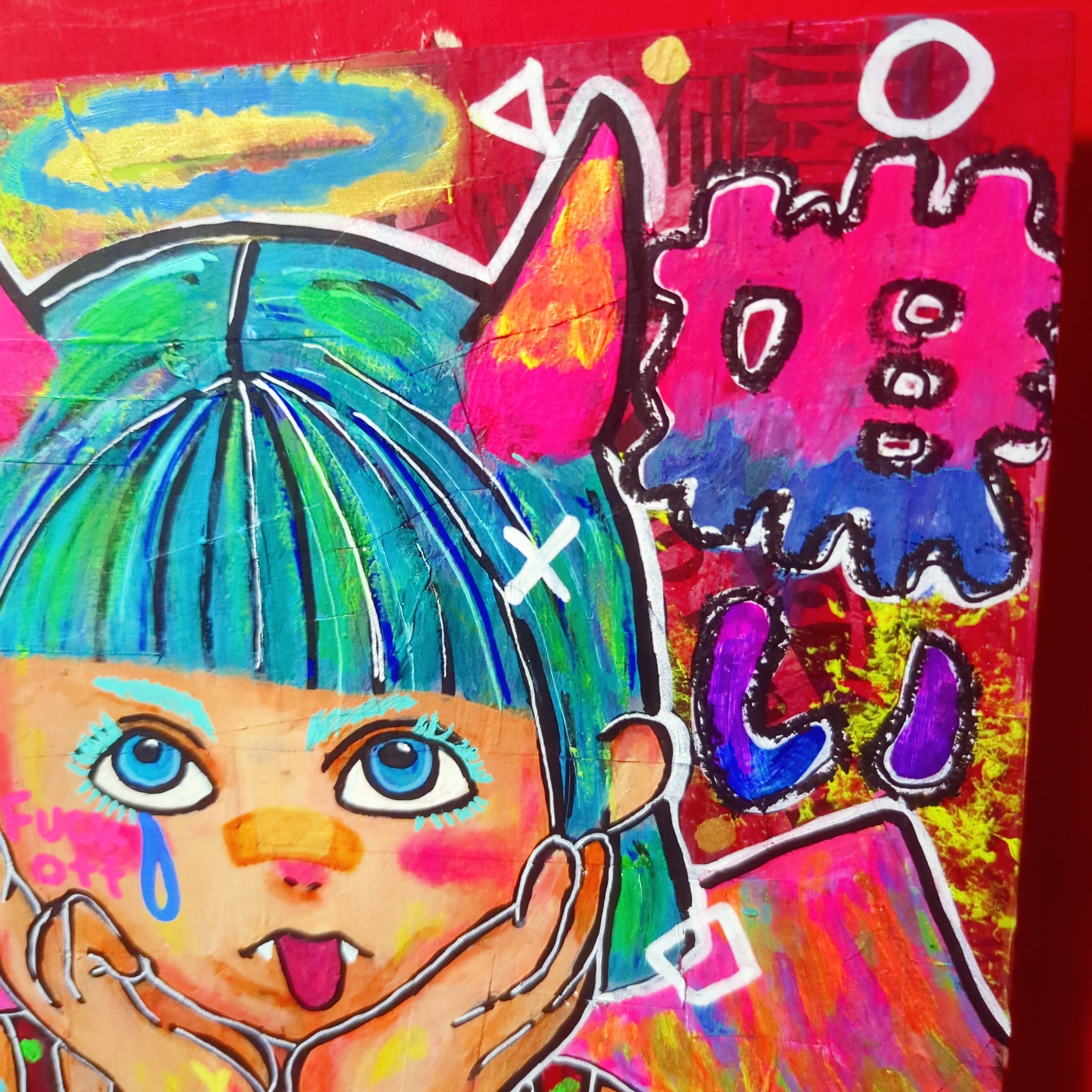 技法:アクリル絵の具、ポスカ、オイルパステル