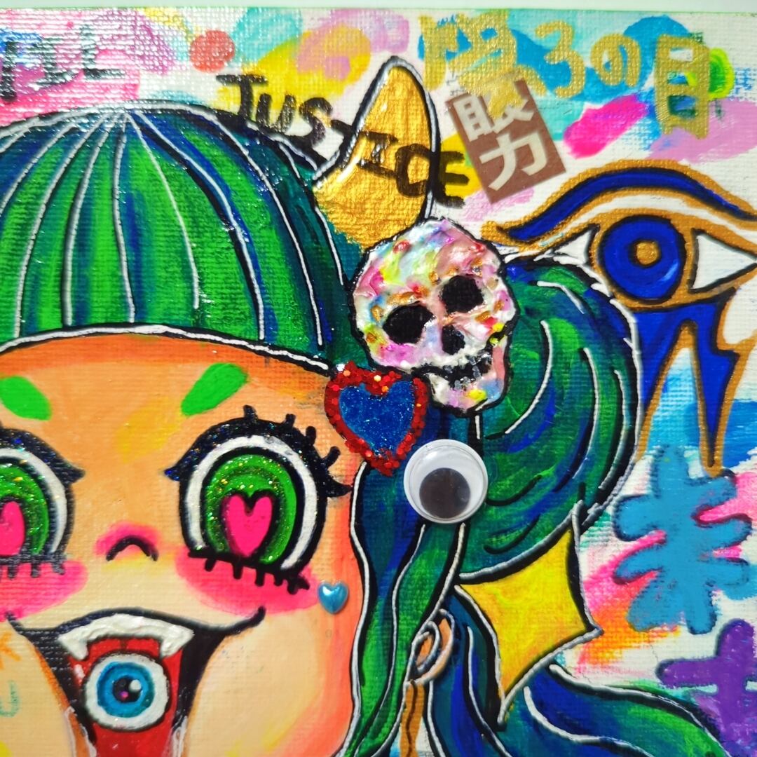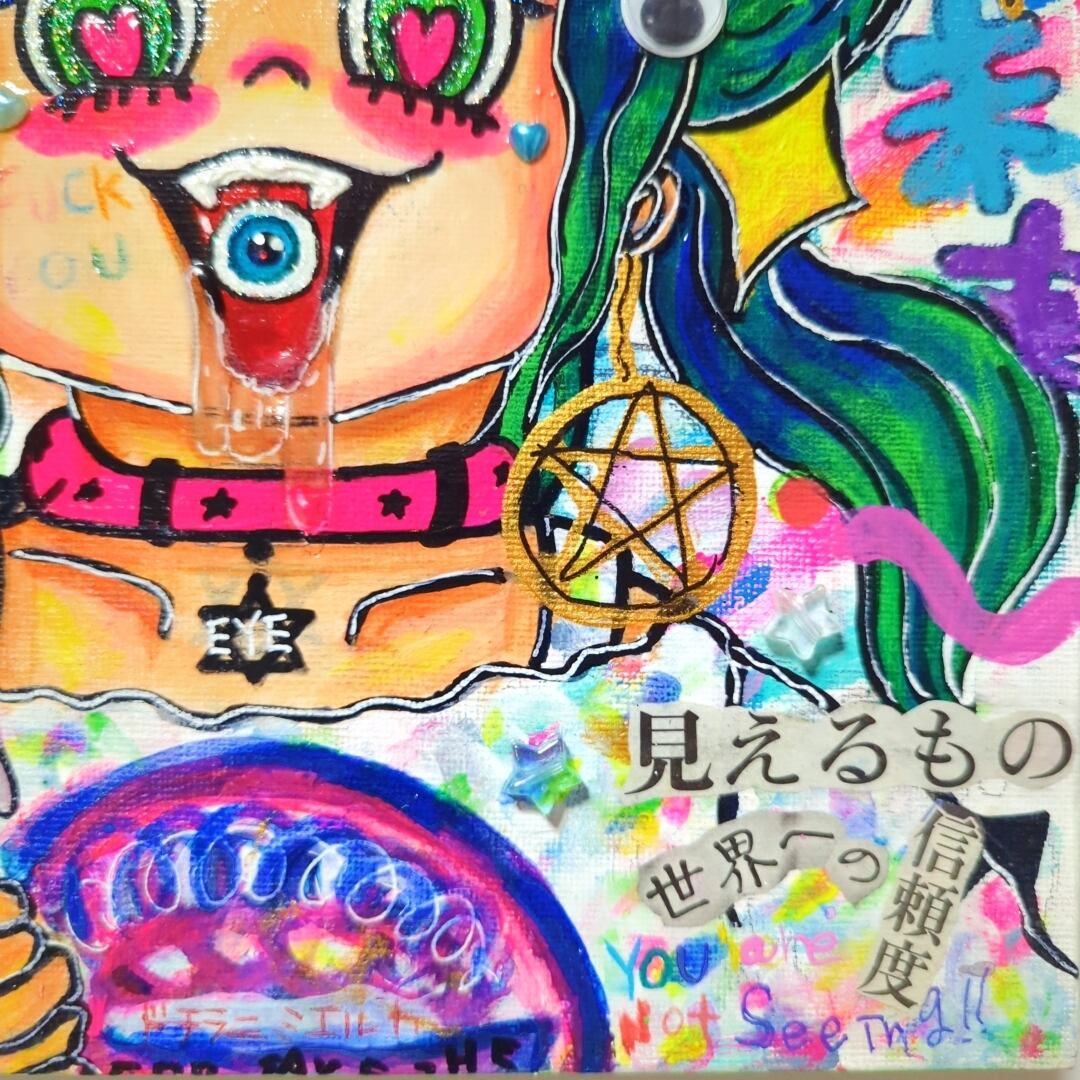 技法:アクリル絵の具,オイルパステル,ポスカ,ラメ,ジェル,アクリルパーツ