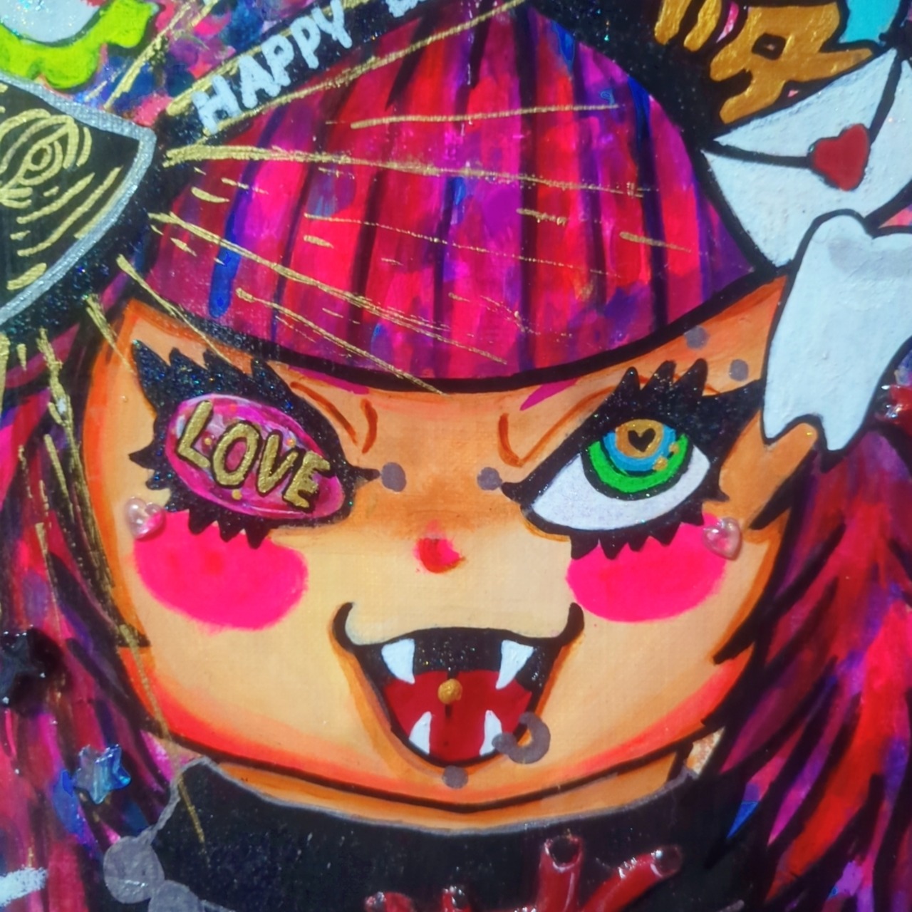 私らしく原色でド派手に着色、レジンやアクリルパーツ、ラメを使用してギラギラした作品です✡