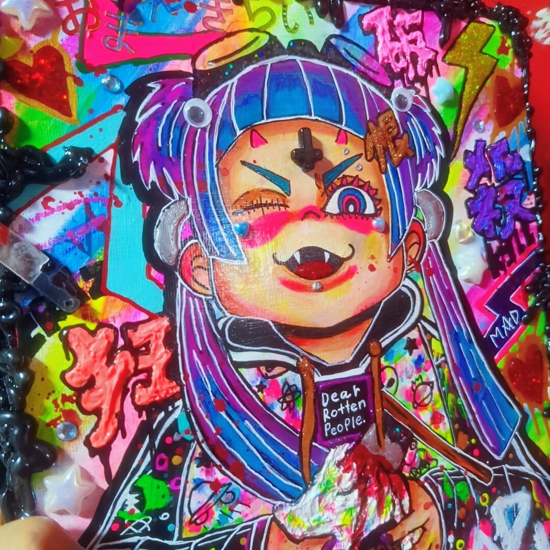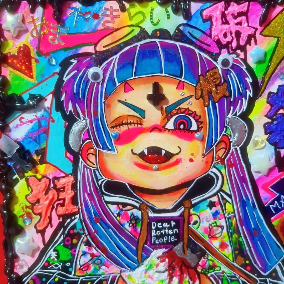 ただの《女の子の可愛い絵》ではなく、生きること、世の中の闇や病み怒りを表現したいのである✡