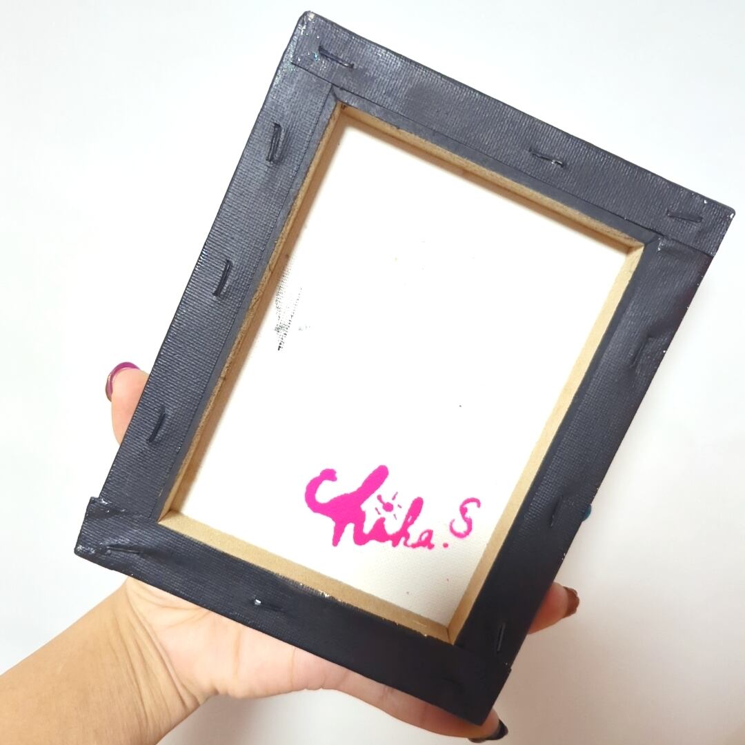 キャンバス全面をレジンとラメでコーティングしたキラペカ作品だ✡