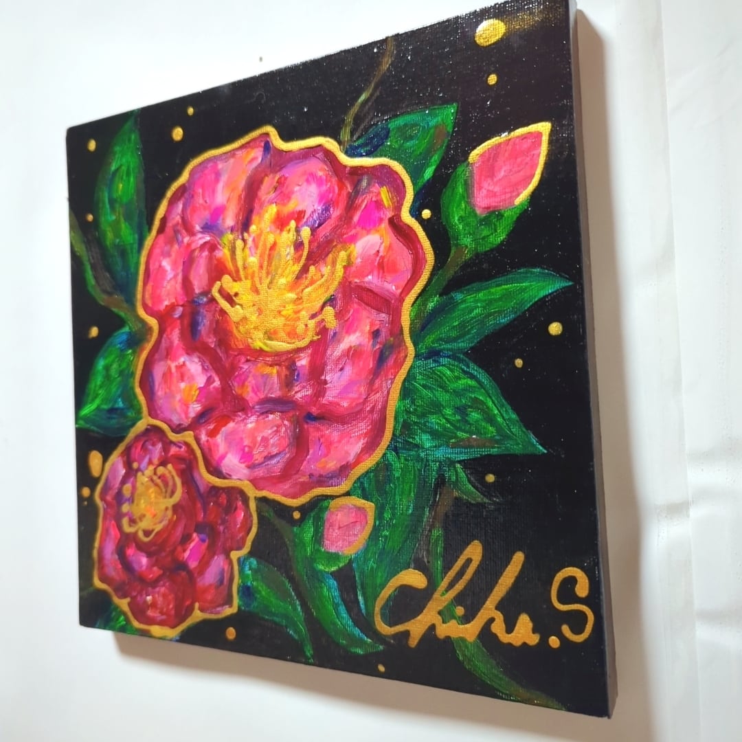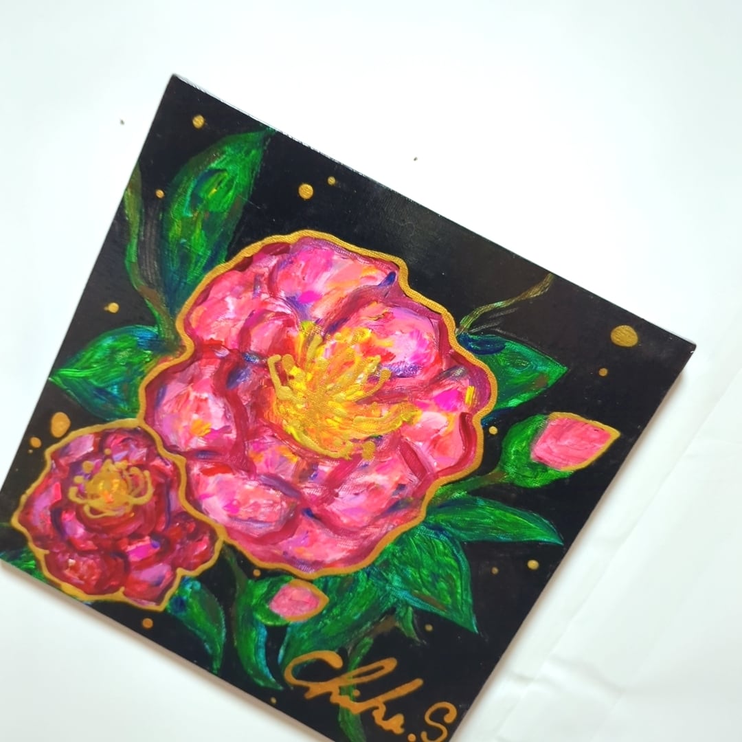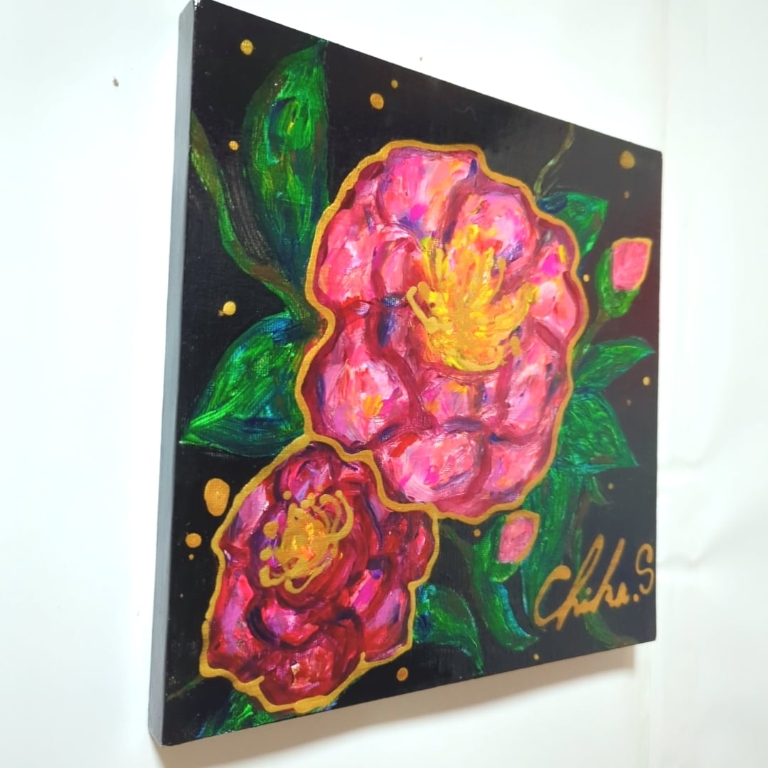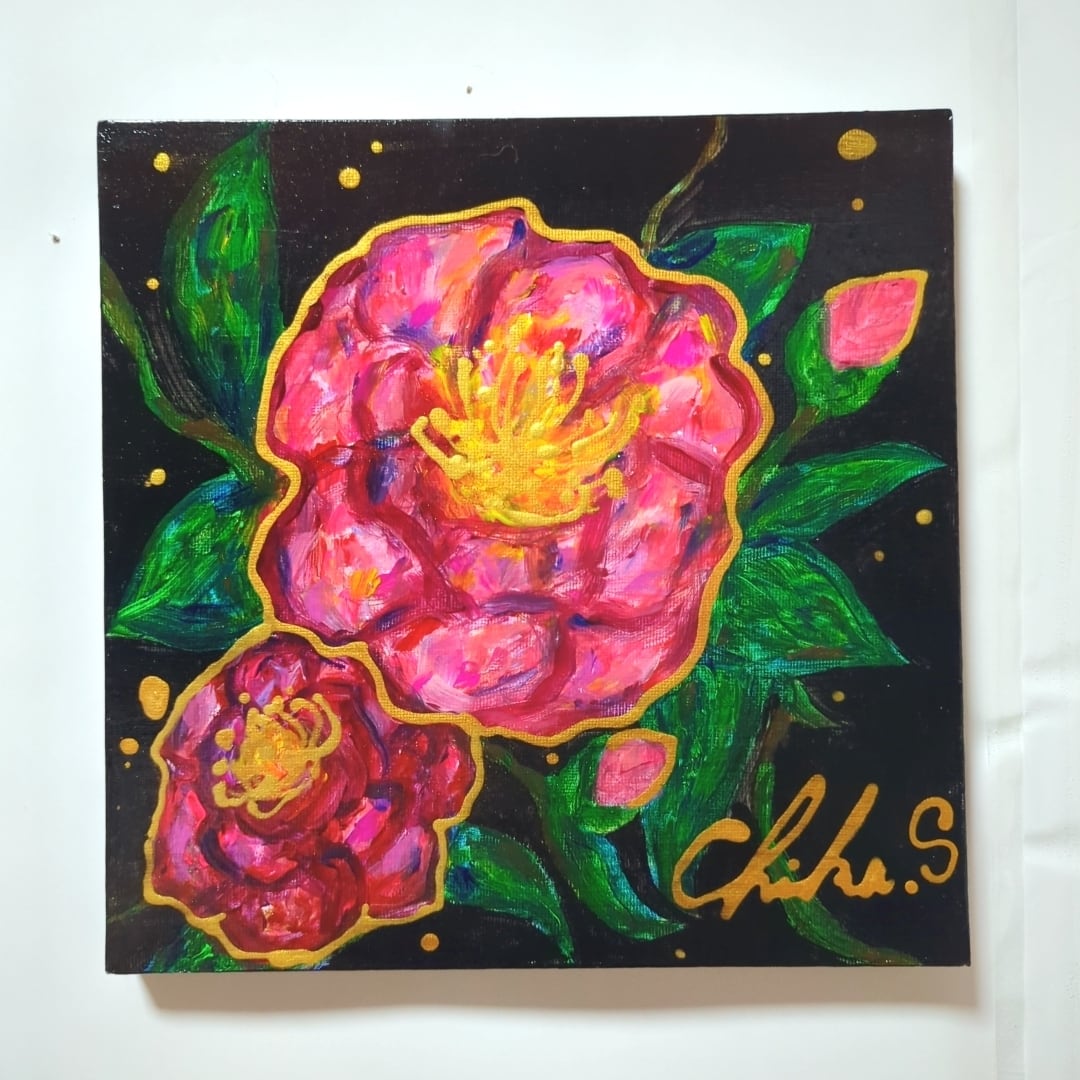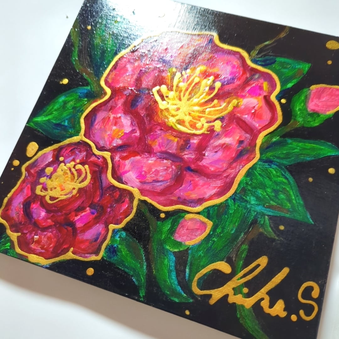 新作の下地処理の合間に描いたサザンカ❥