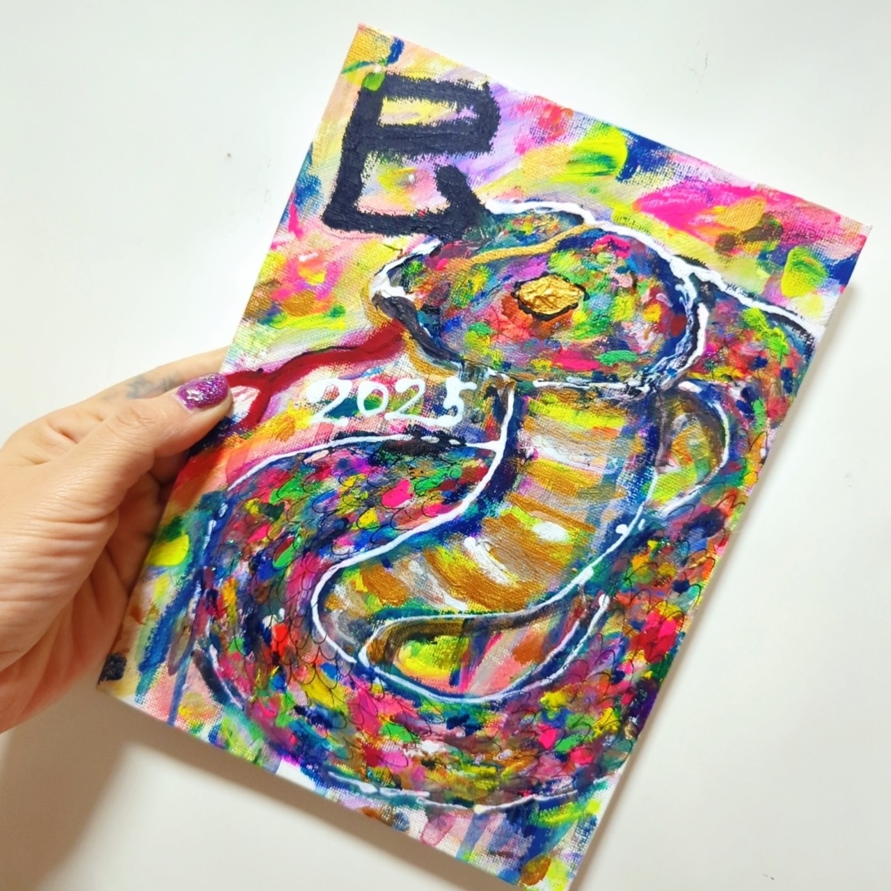 2025年最初の作品は、巳年ということでカラフル蛇さんです(*´﹃`*)